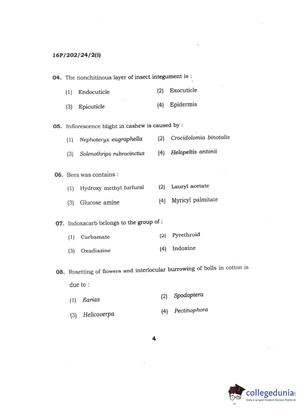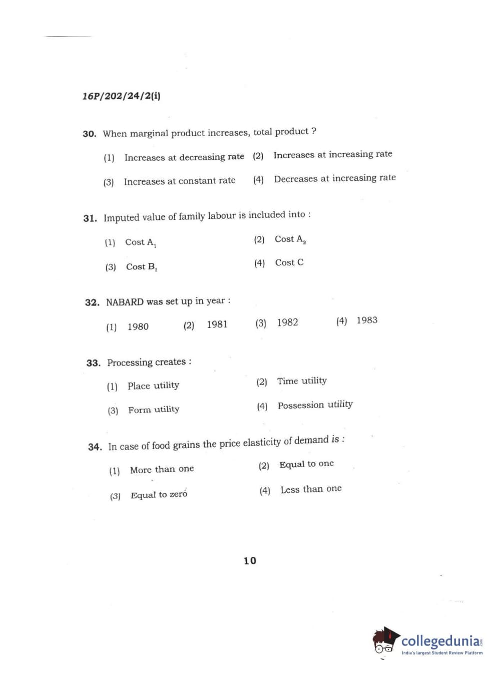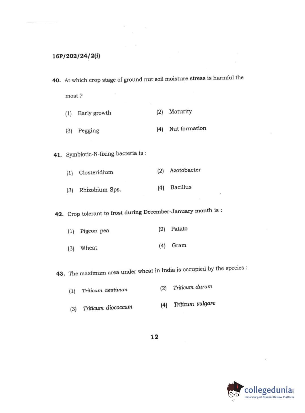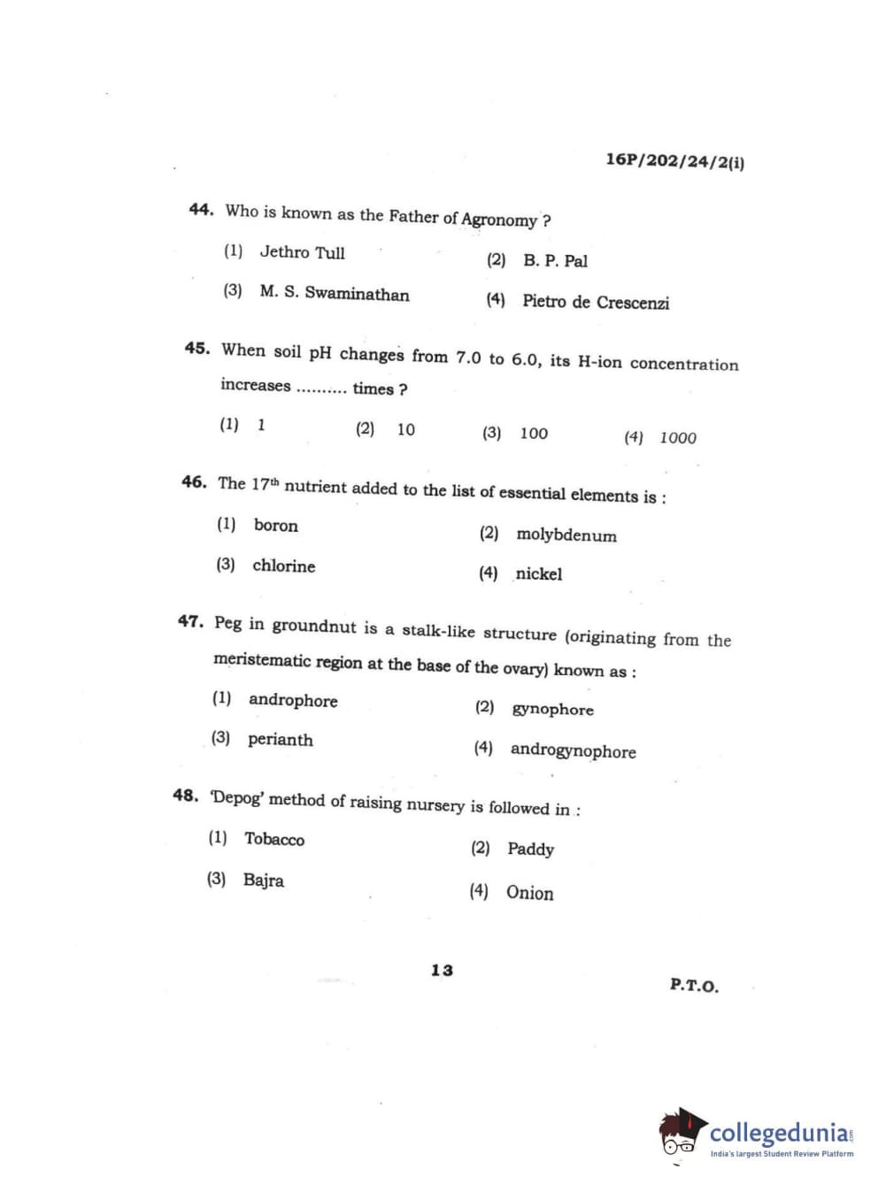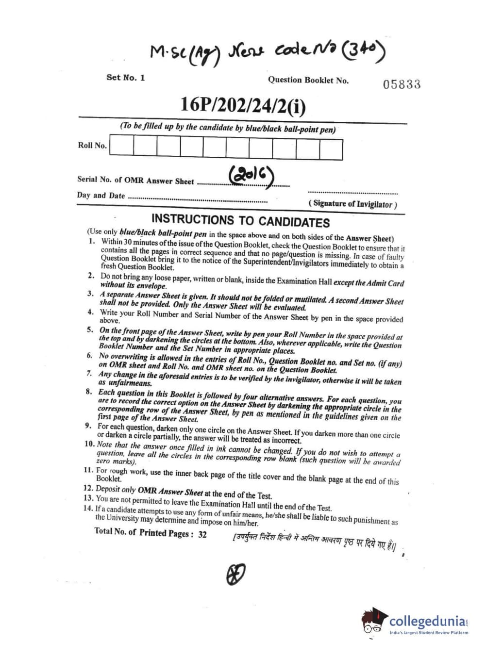 BHU PET 2016 M.SC. AG (Re-conduct) Question Paper with Answer Key PDFs