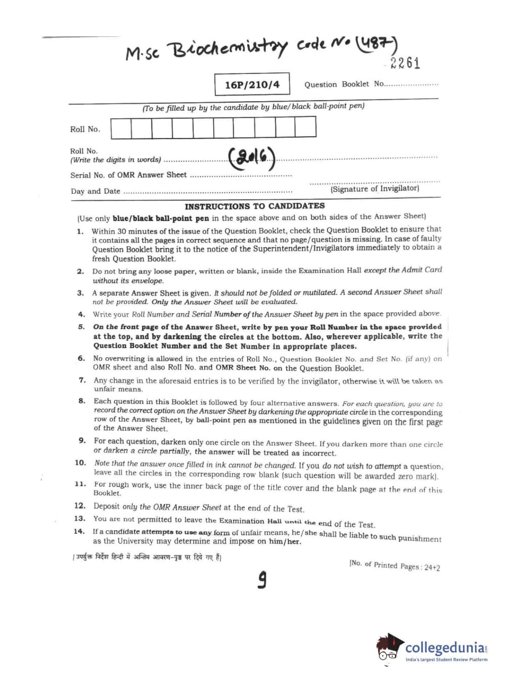 BHU PET 2016 M.SC. BIOCHEMIS Question paper with answer key pdf is available for download. The exam was successfully organized by Banaras Hindu University (BHU). The question paper comprised a total of 150 questions.