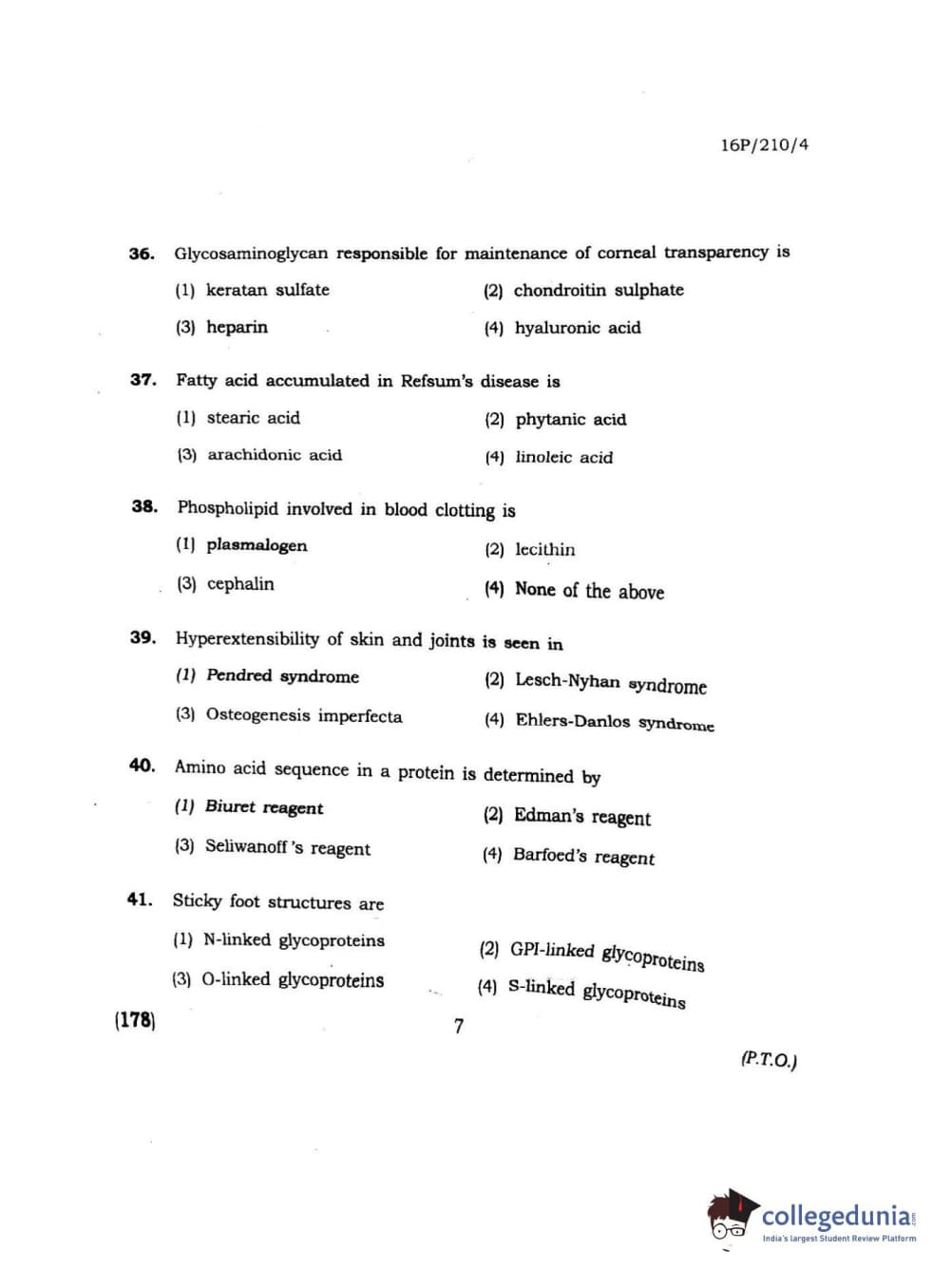 BHU PET 2016 M.SC. BIOCHEMIS Question Paper with Answer Key PDFs