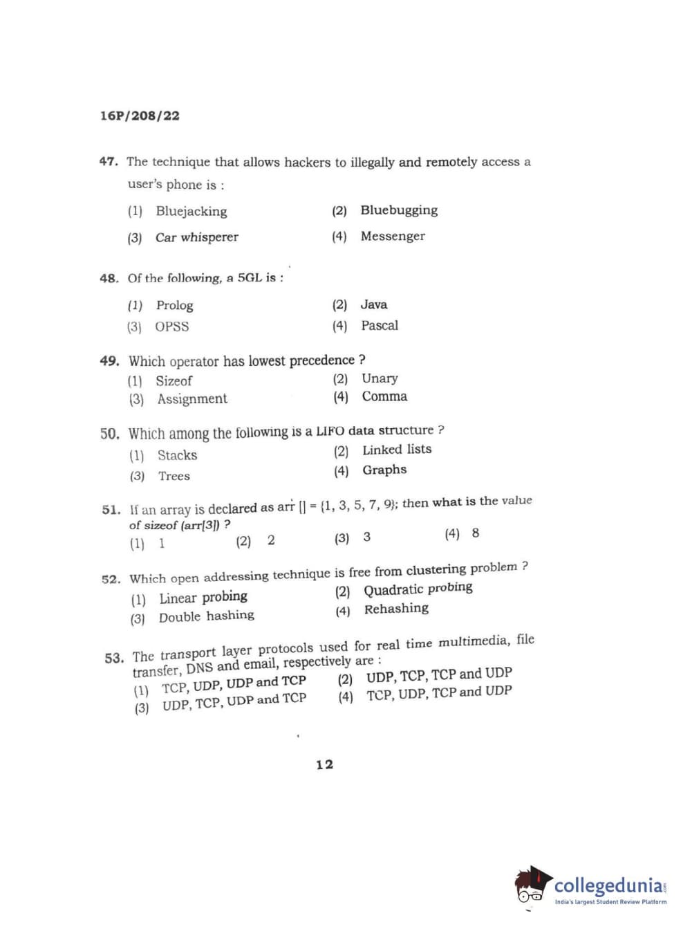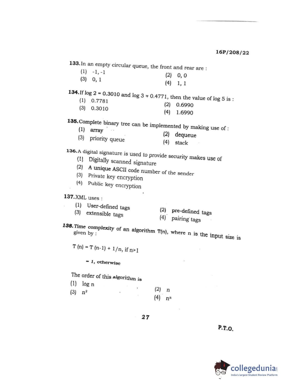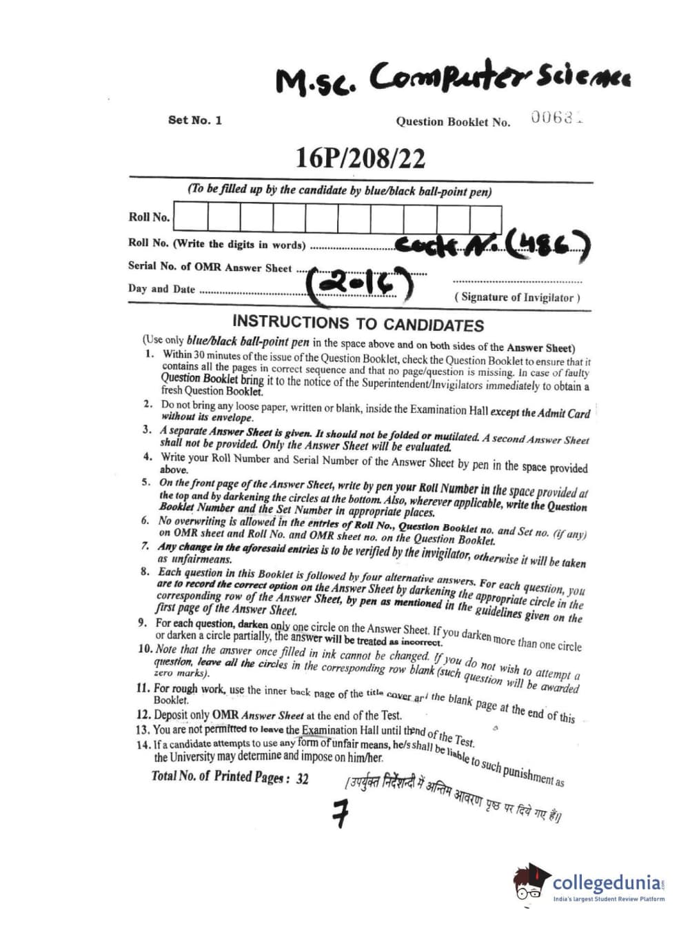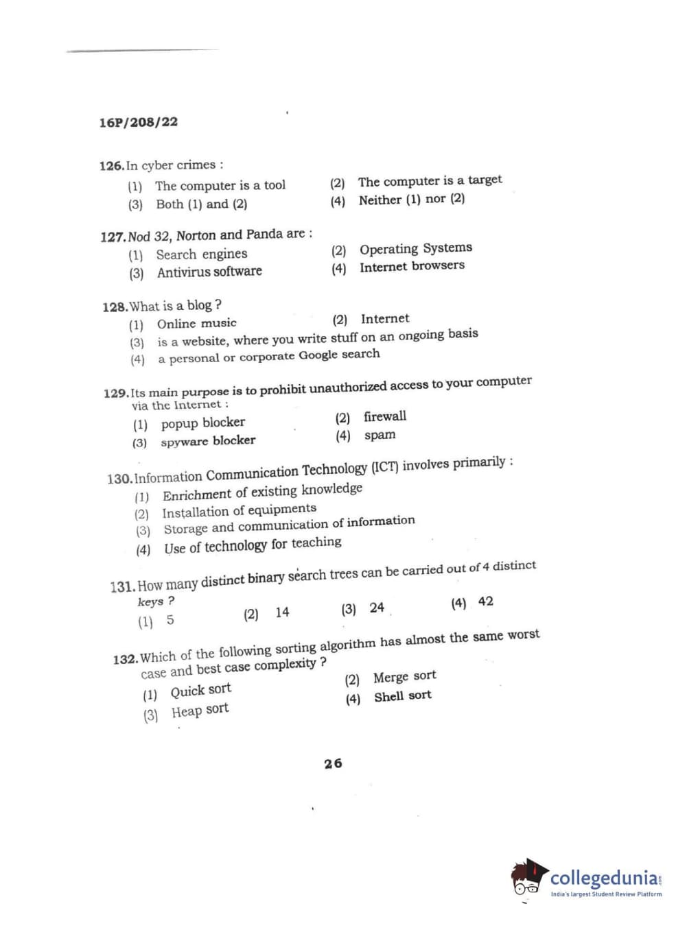 BHU PET 2016 M.SC. COMPUTER SCIENCE Question paper with answer key pdf is available for download. The exam was successfully organized by Banaras Hindu University (BHU). The question paper comprised a total of 150 questions.