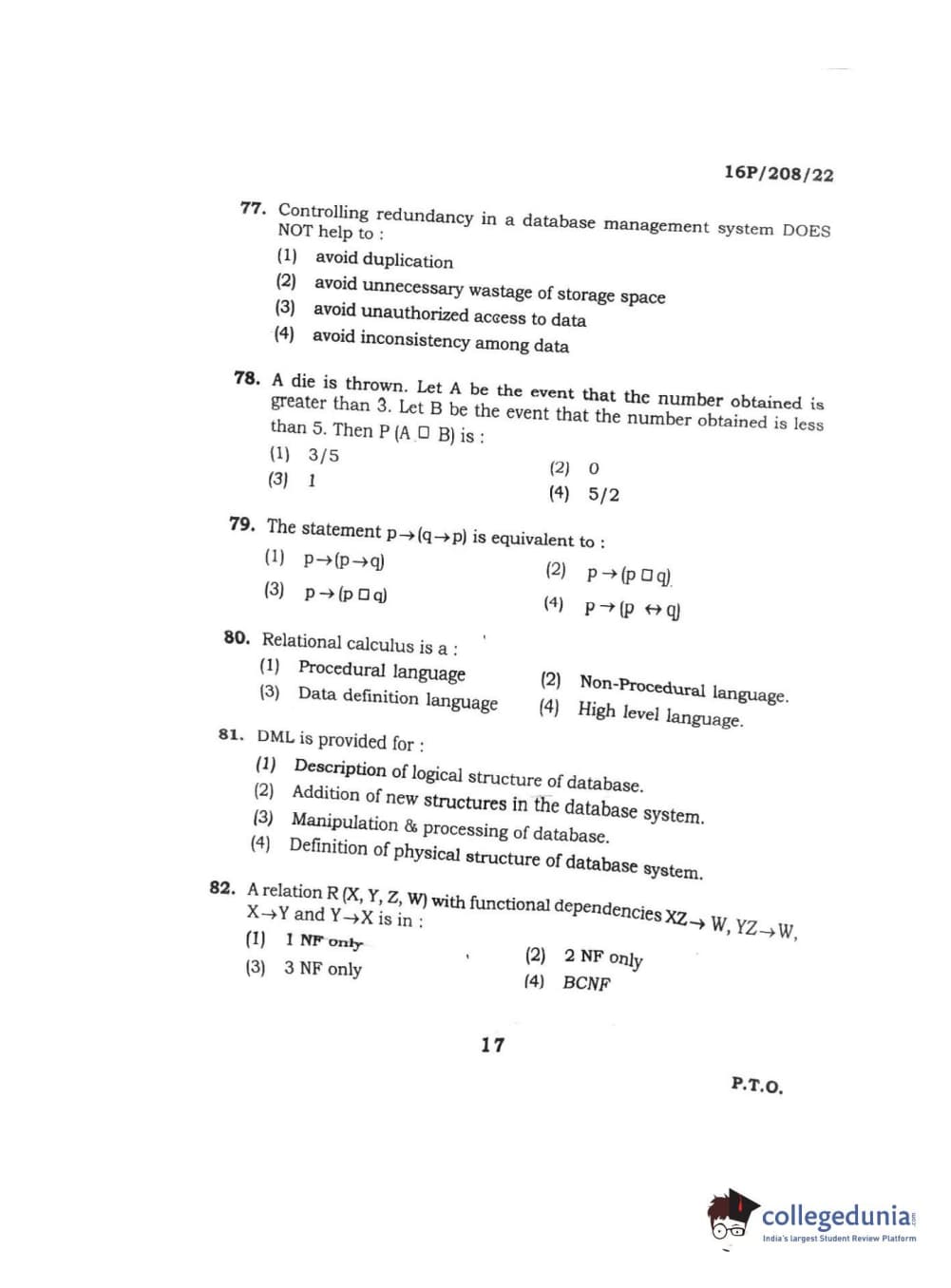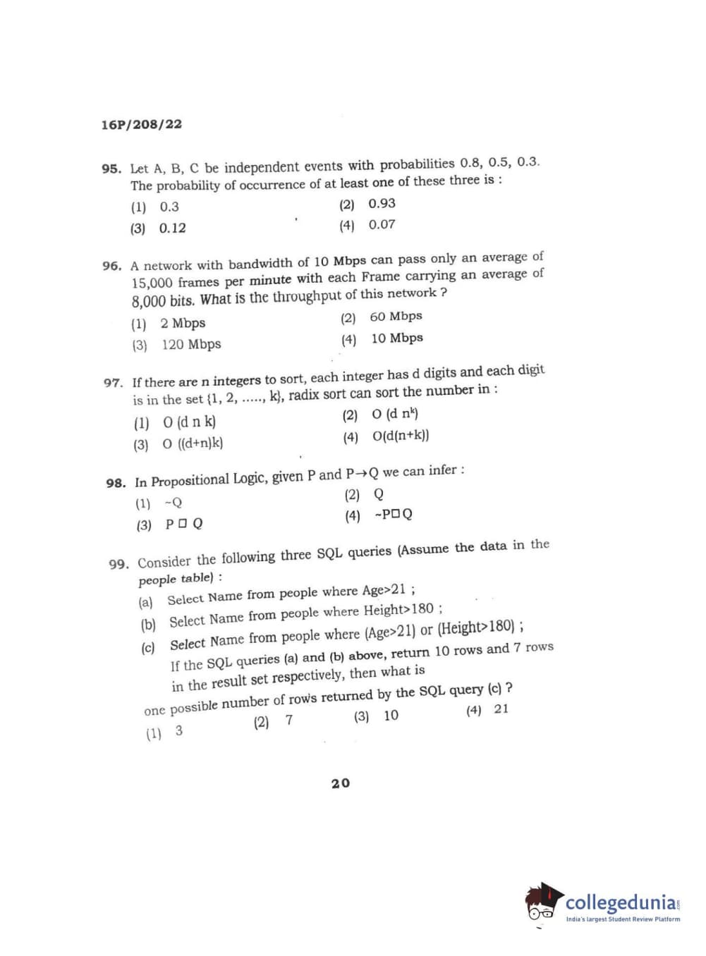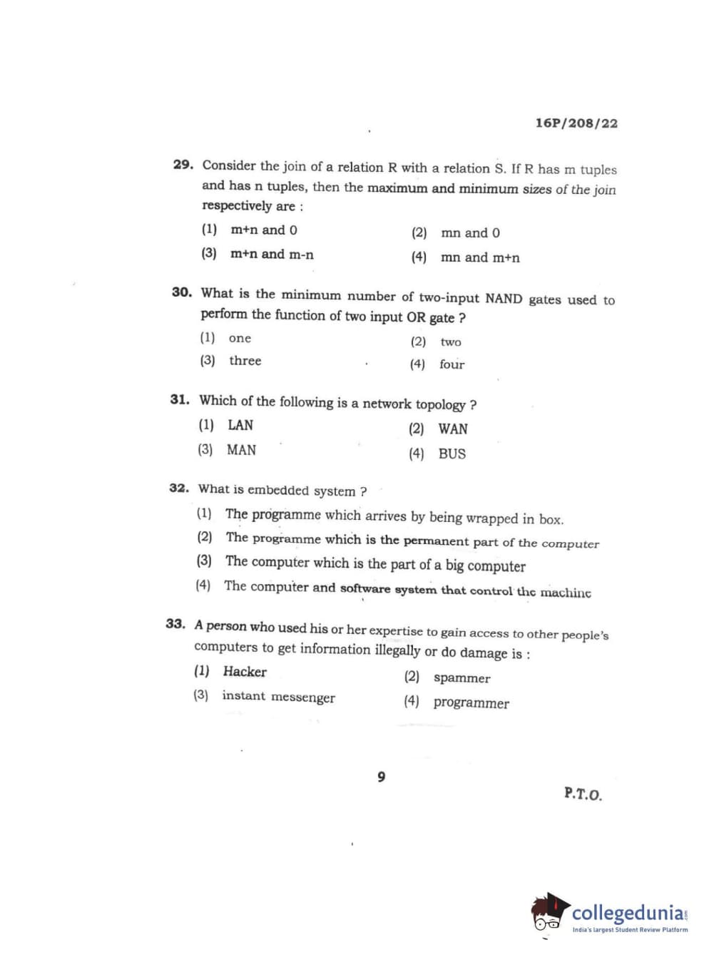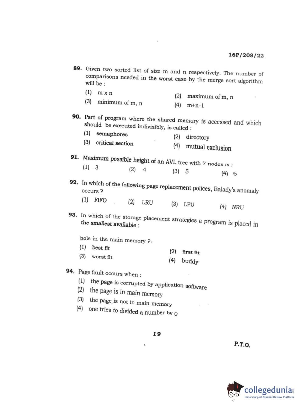 BHU PET 2016 M.SC. COMPUTER SCIENCE Question paper with answer key pdf is available for download. The exam was successfully organized by Banaras Hindu University (BHU). The question paper comprised a total of 150 questions.