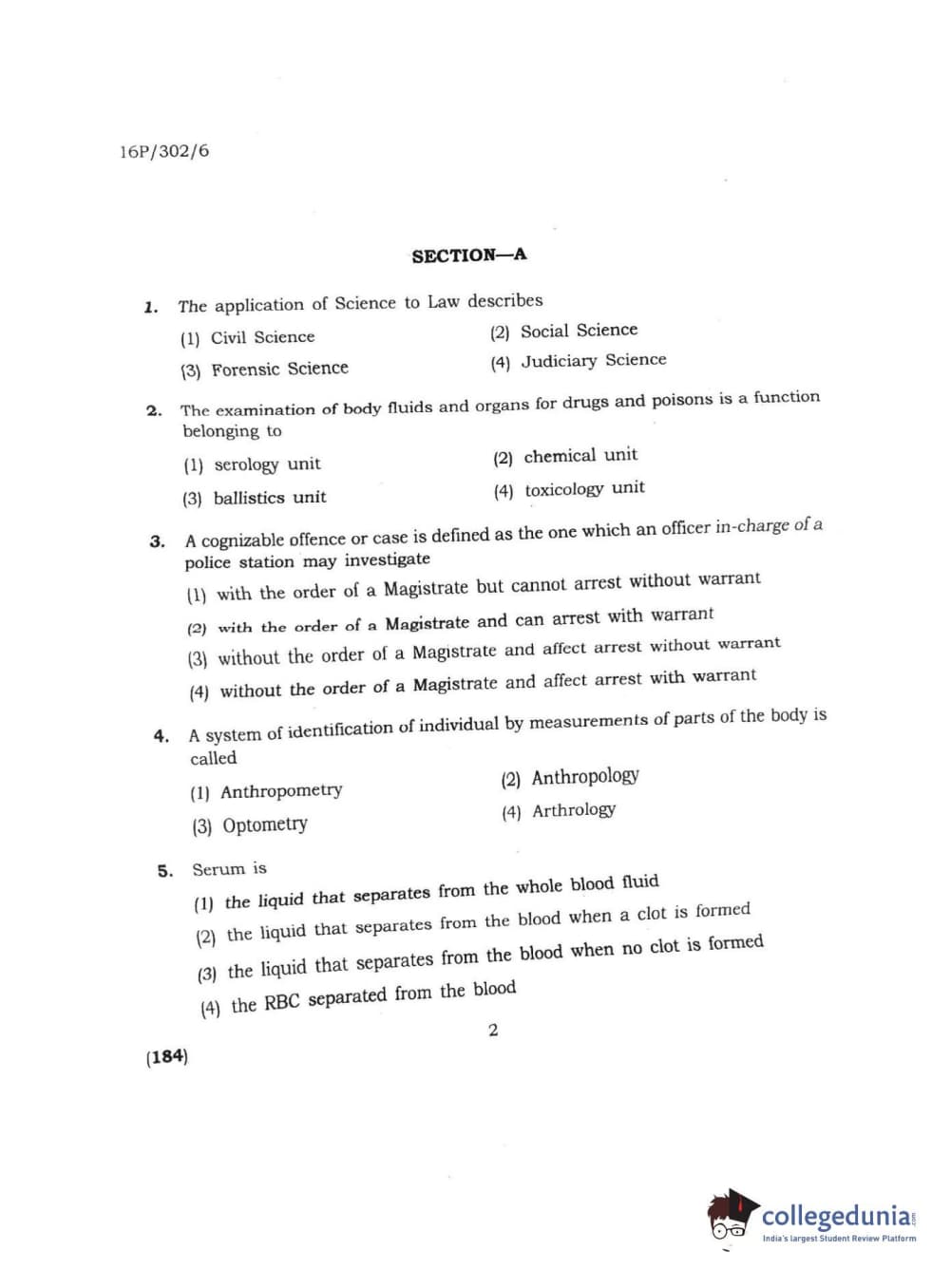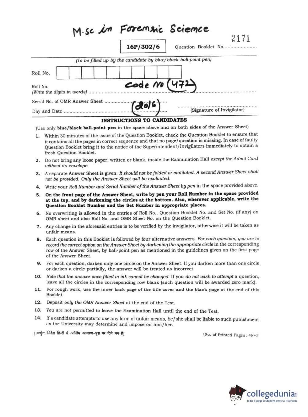 | BHU PET 2016 M.SC. FORENSIC SCIENCE Question Paper PDF | BHU PET 2016 M.SC. FORENSIC SCIENCE Answer Key PDF |
