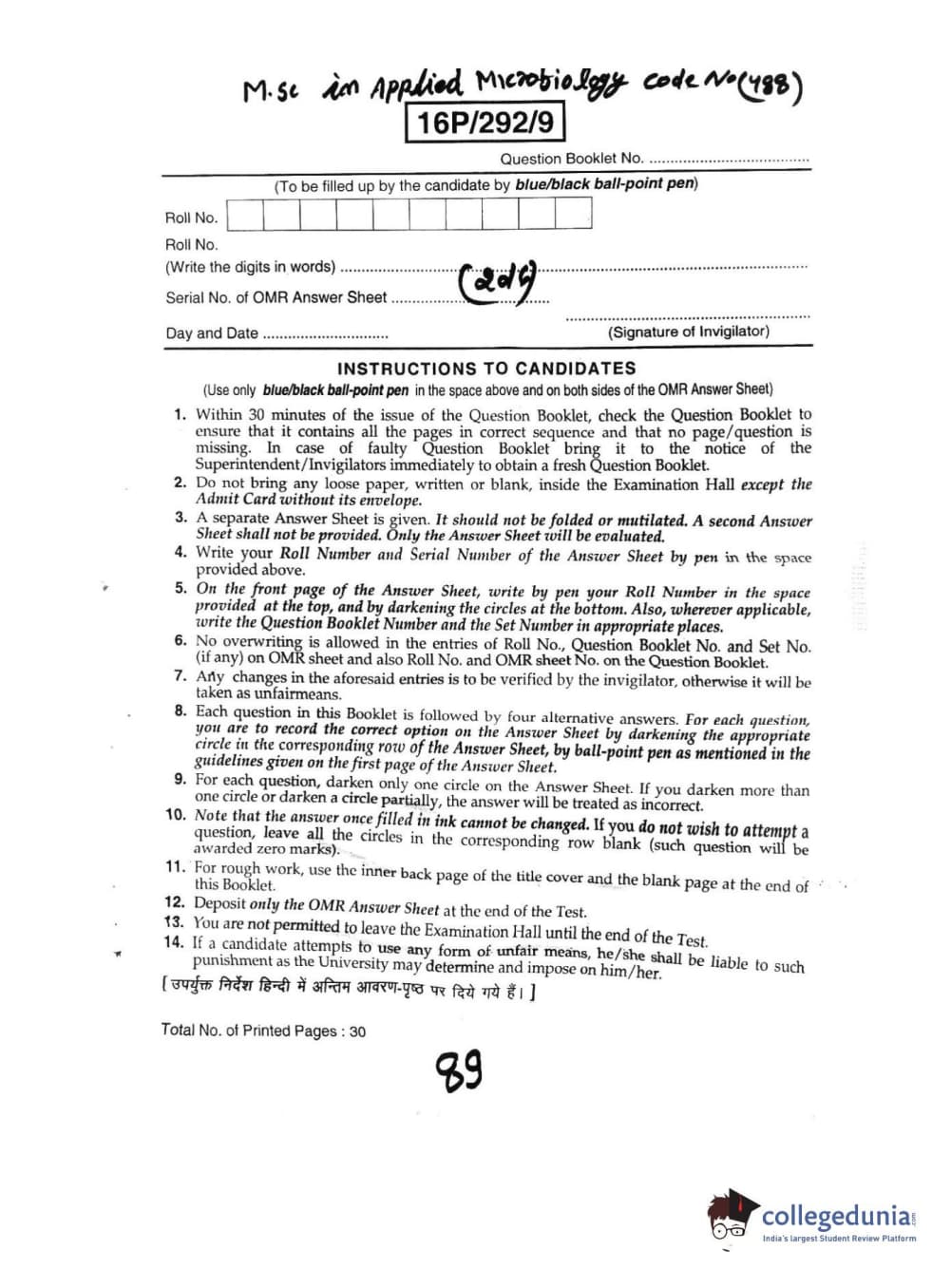 BHU PET 2016 M.SC. IN APPLIED MICROBIO Question paper with answer key pdf is available for download. The exam was successfully organized by Banaras Hindu University (BHU). The question paper comprised a total of 150 questions.