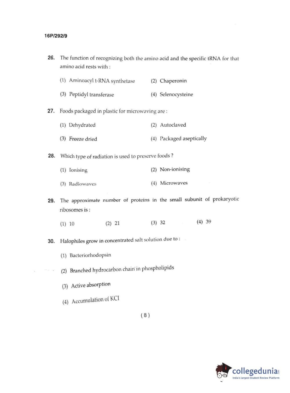 BHU PET 2016 M.SC. IN APPLIED MICROBIO Question Paper with Answer Key PDFs