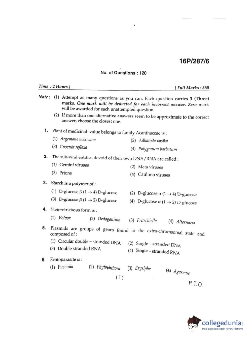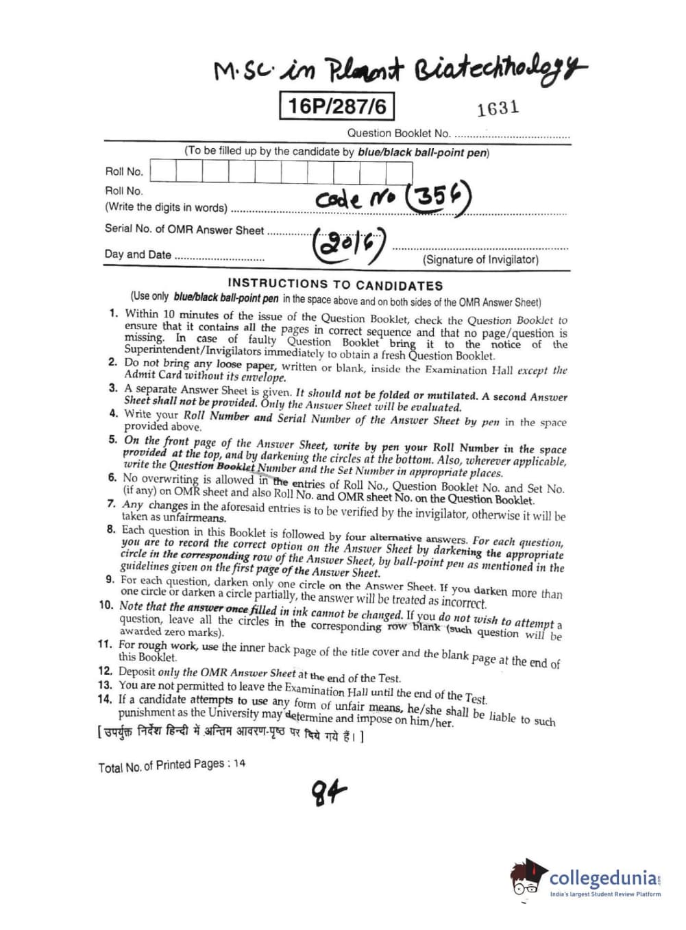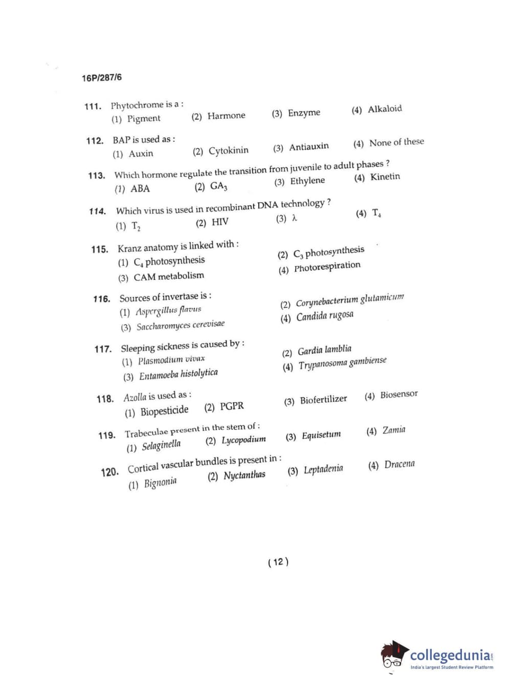 BHU PET 2016 M.SC. IN PLANT BIOTECH Question paper with answer key pdf is available for download. The exam was successfully organized by Banaras Hindu University (BHU). The question paper comprised a total of 120 questions.