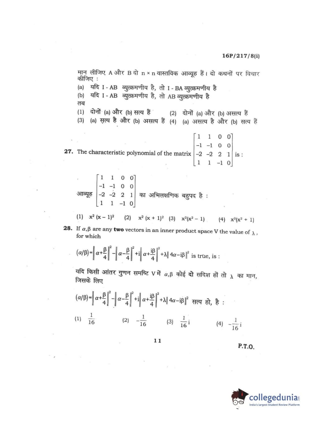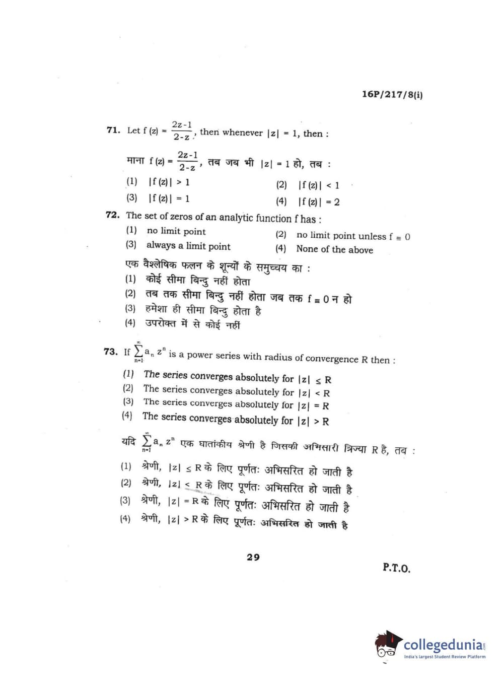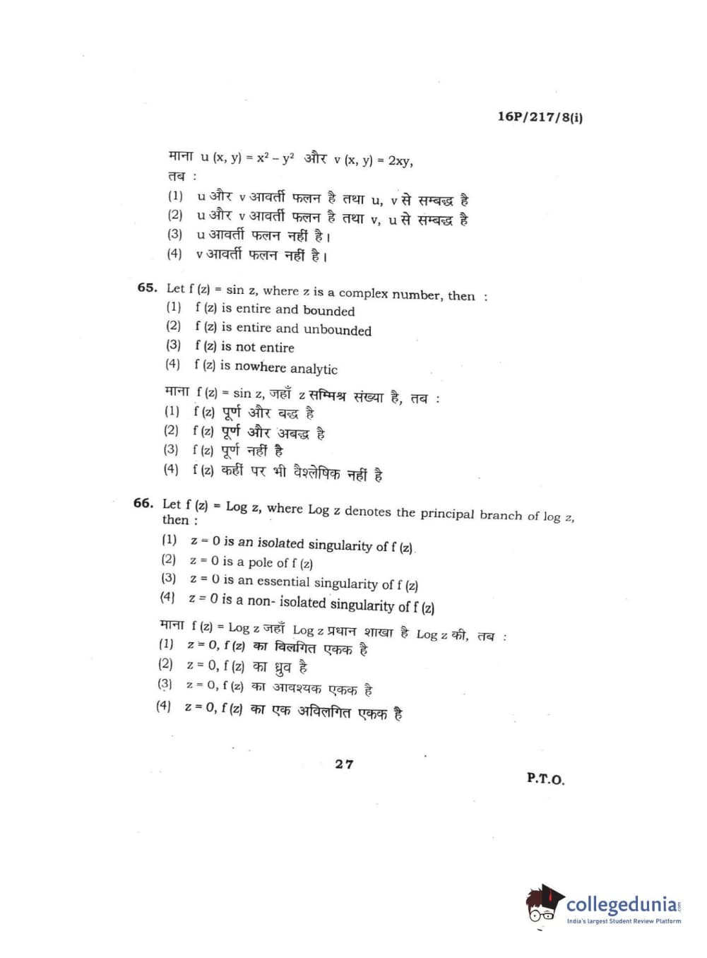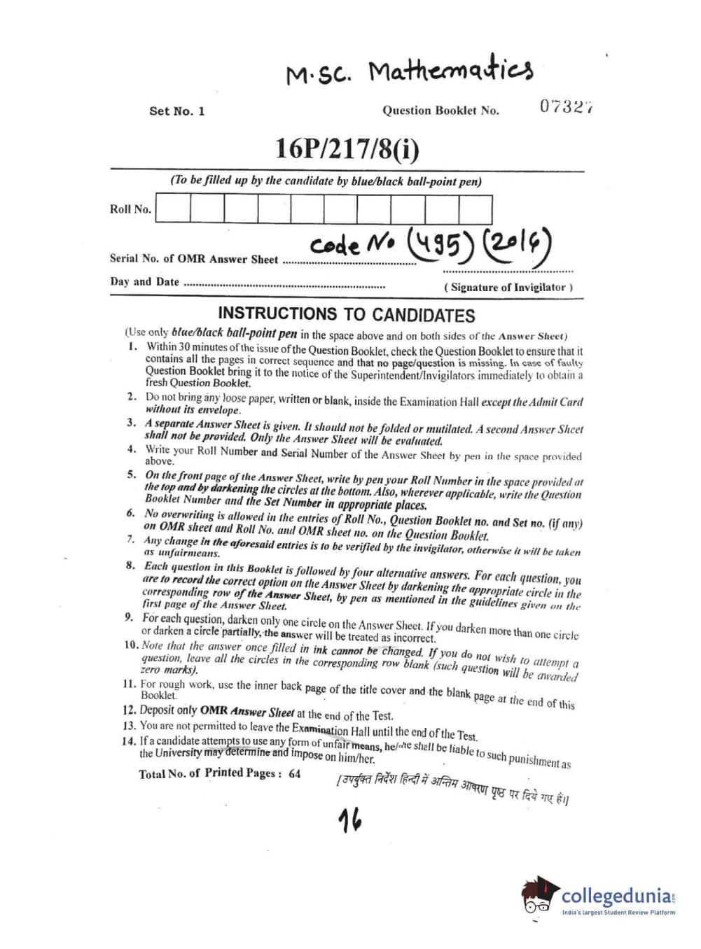 BHU PET 2016 M.SC.MATHEMATICS Question paper with answer key pdf is available for download. The exam was successfully organized by Banaras Hindu University (BHU). The question paper comprised a total of 150 questions.