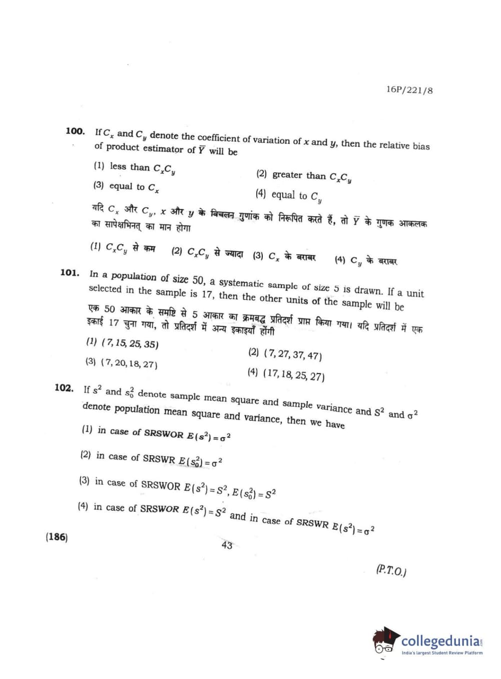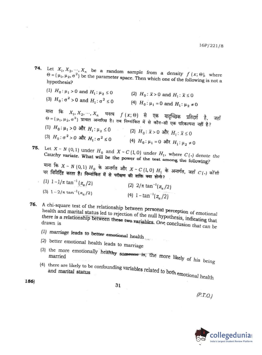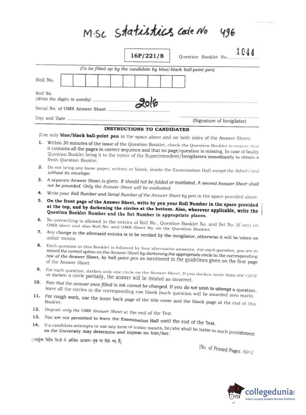 BHU PET 2016 M.SC. STATISTICS Question paper with answer key pdf is available for download. The exam was successfully organized by Banaras Hindu University (BHU). The question paper comprised a total of 150 questions.