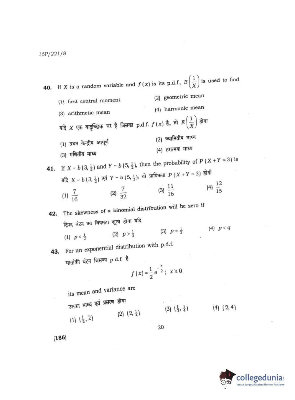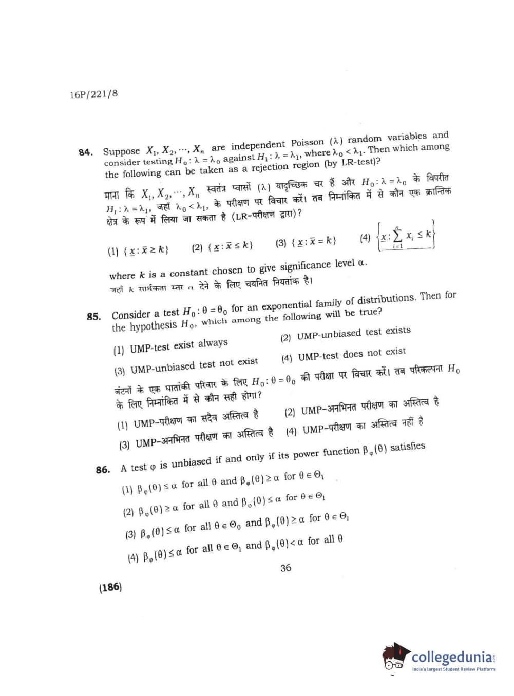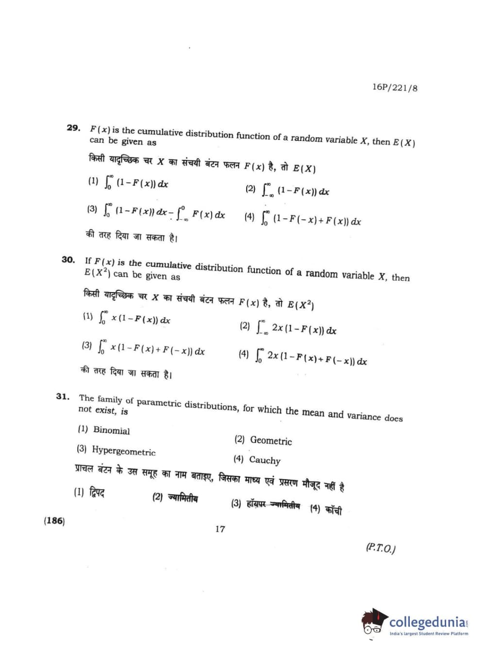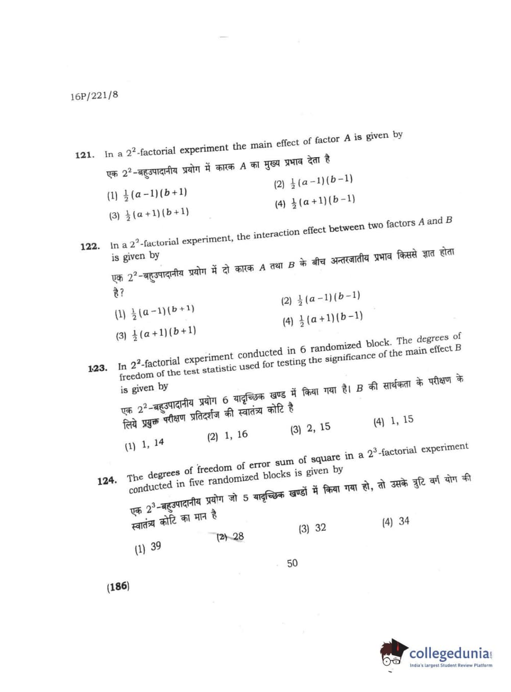BHU PET 2016 M.SC. STATISTICS Question Paper with Answer Key PDFs