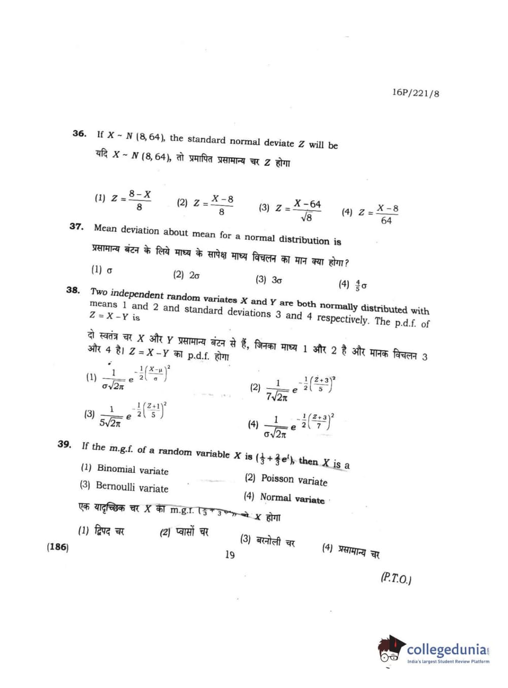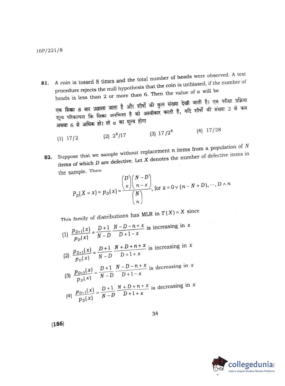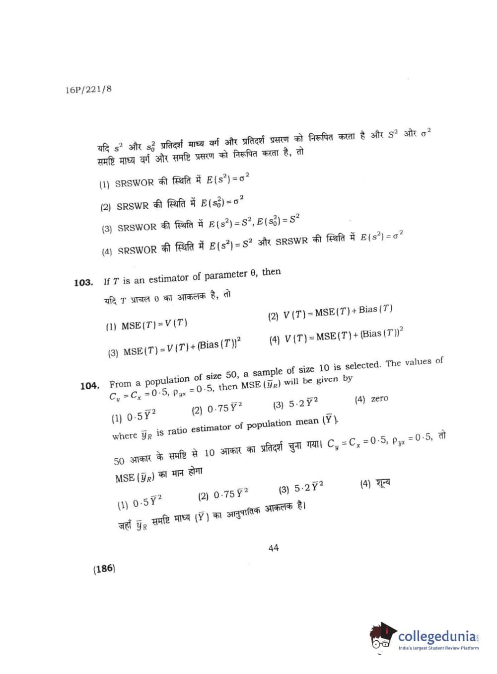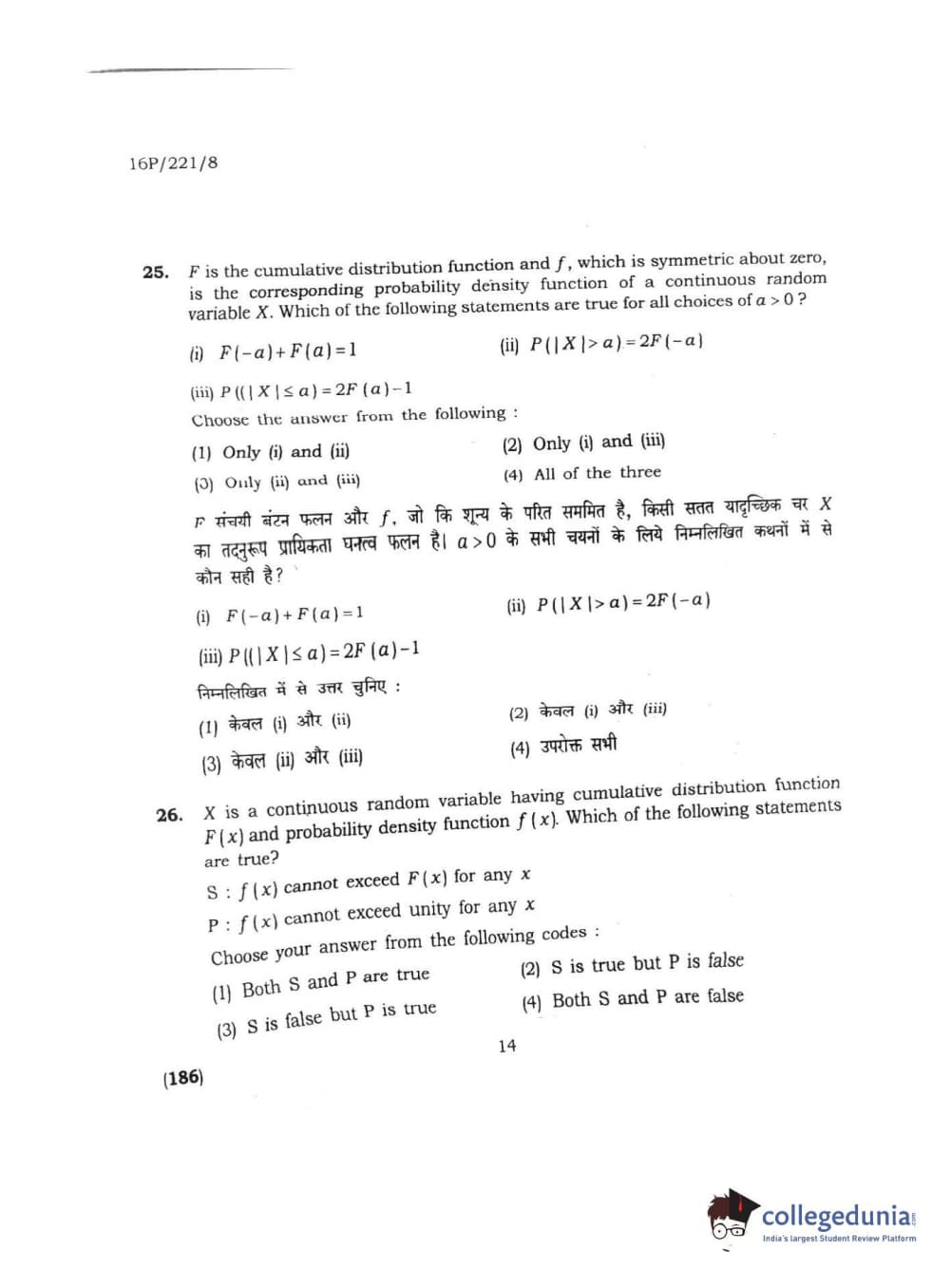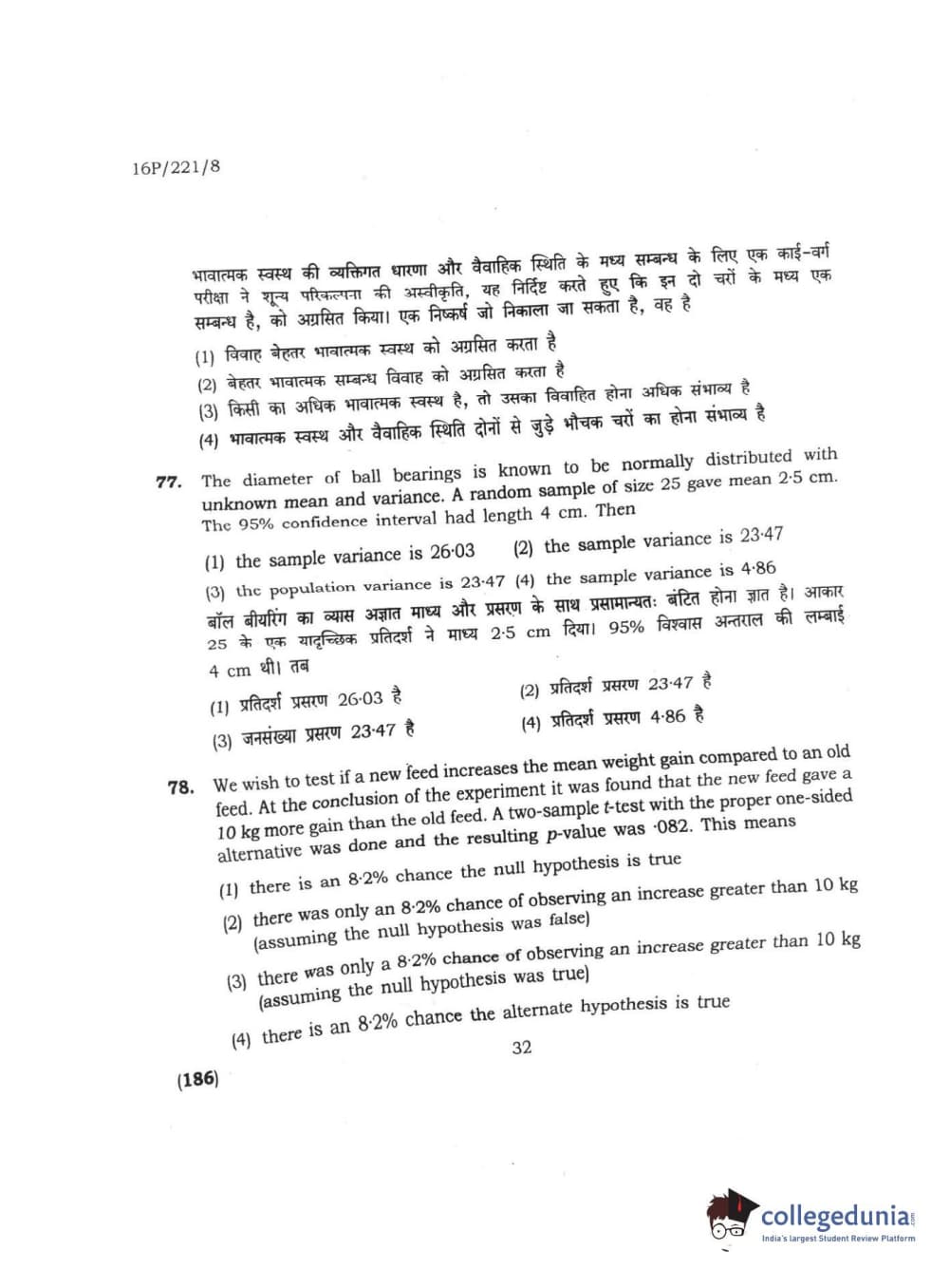 BHU PET 2016 M.SC. STATISTICS Question Paper with Answer Key PDFs