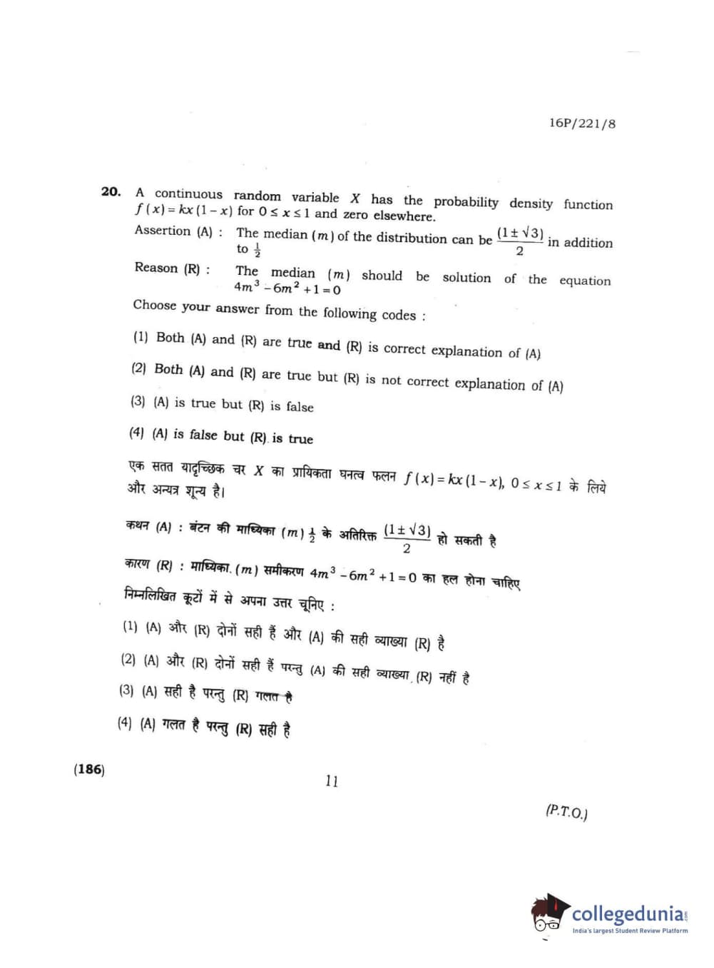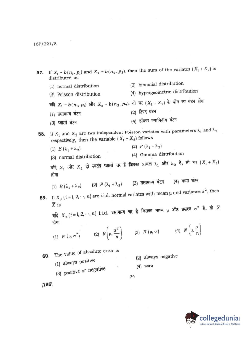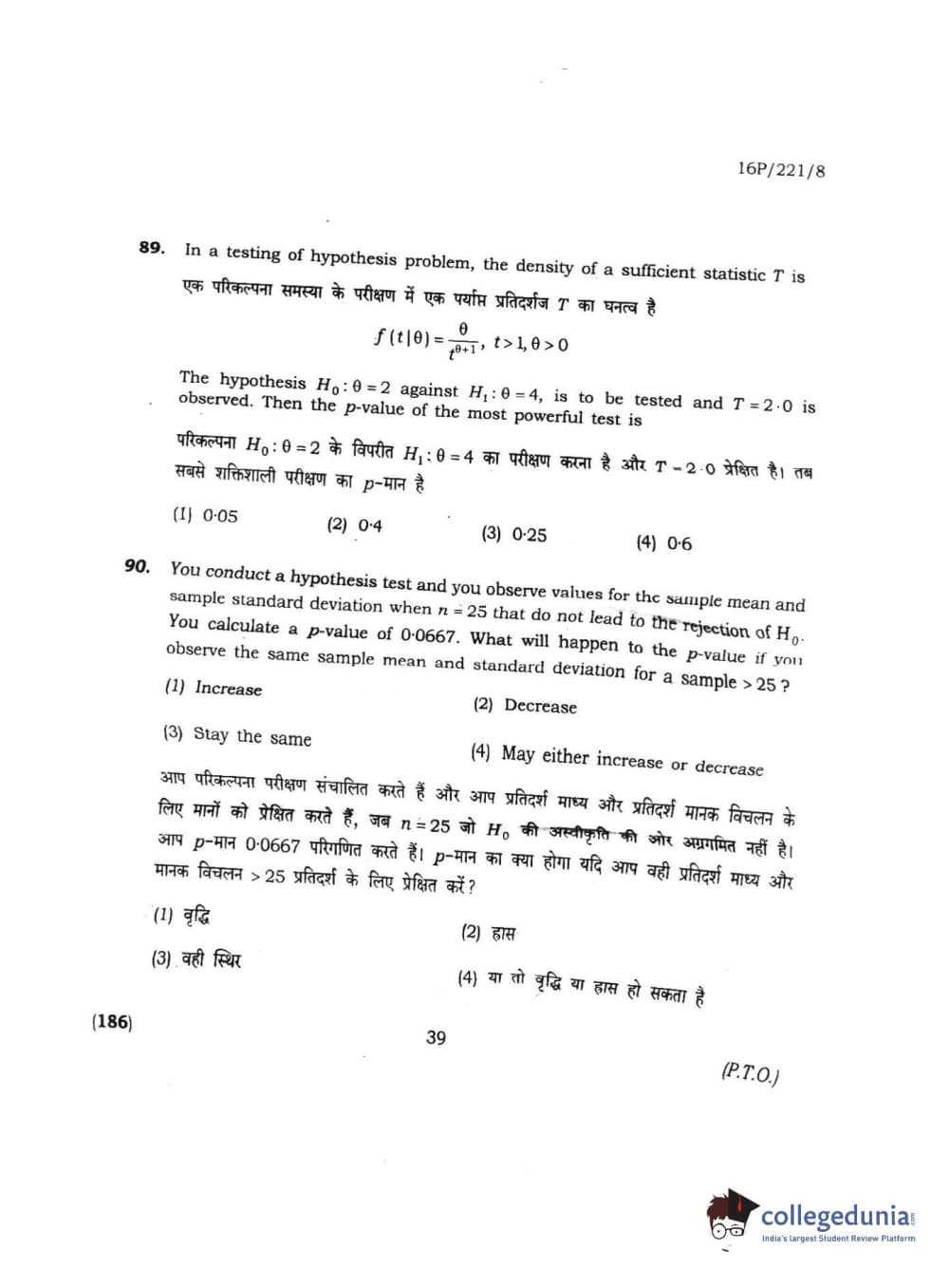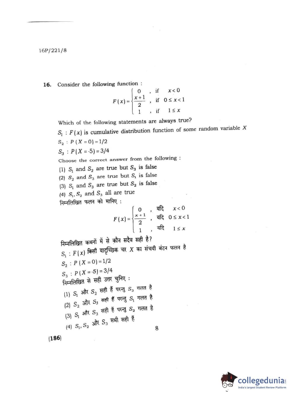 BHU PET 2016 M.SC. STATISTICS Question Paper with Answer Key PDFs