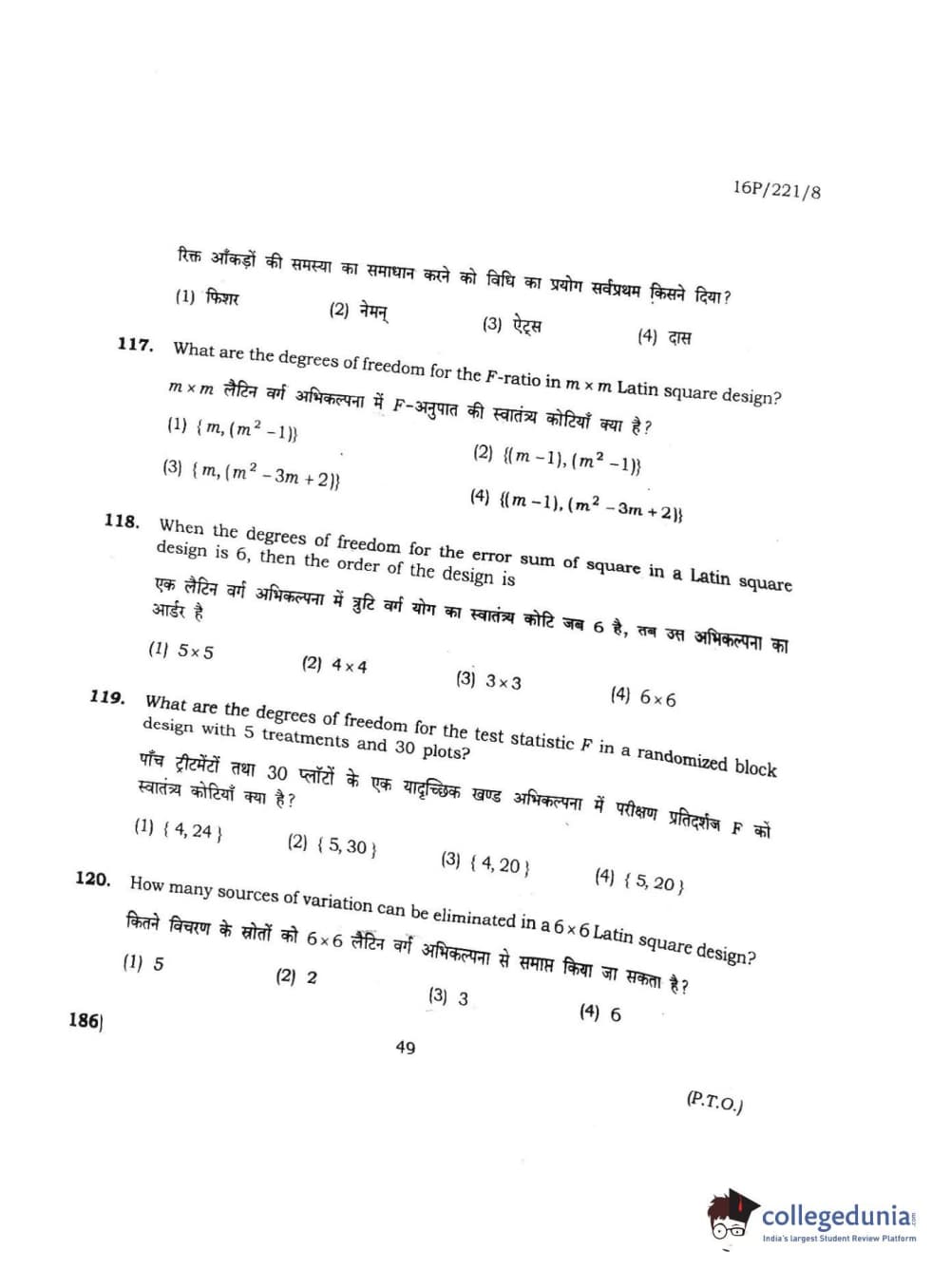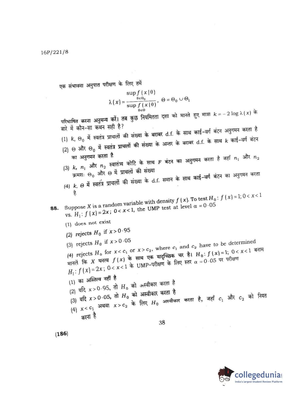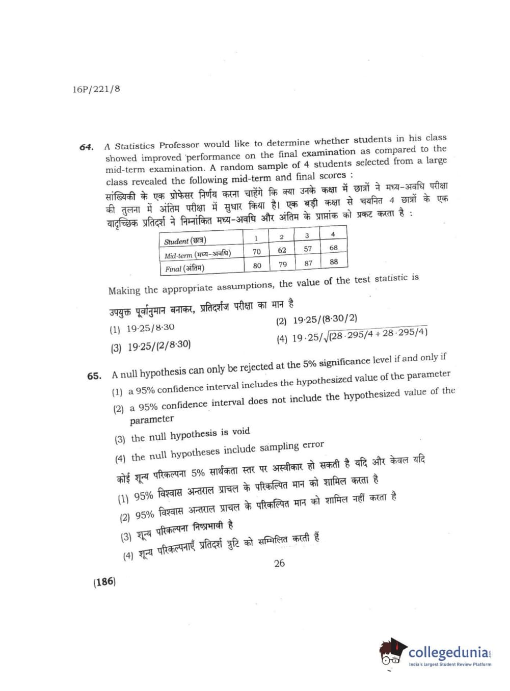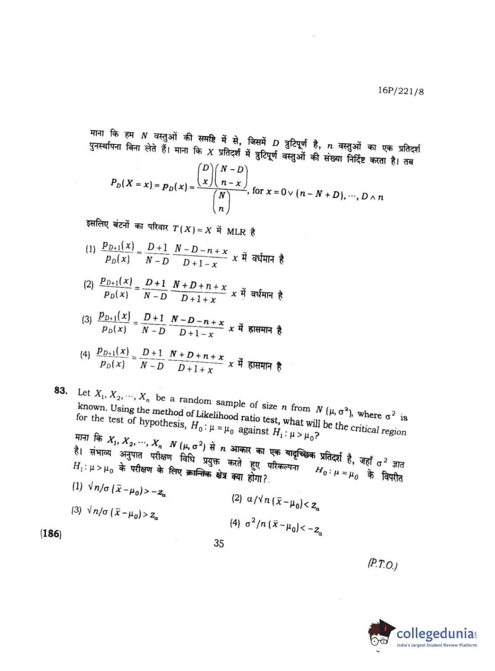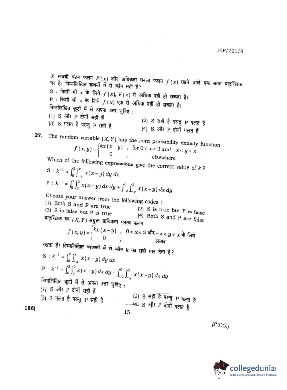 BHU PET 2016 M.SC. STATISTICS Question Paper with Answer Key PDFs