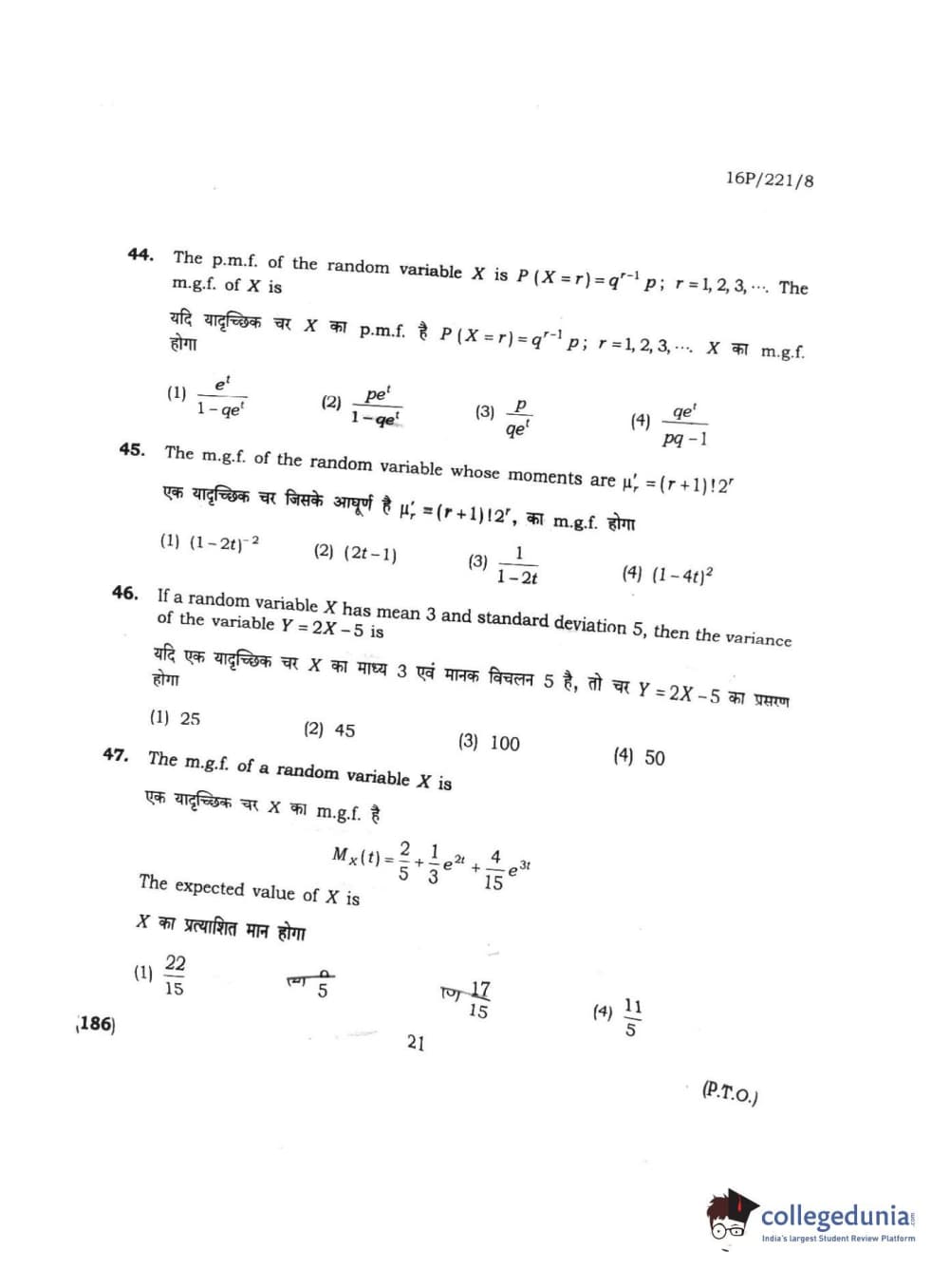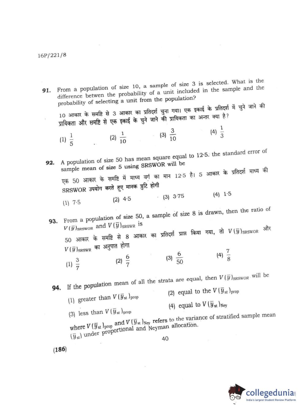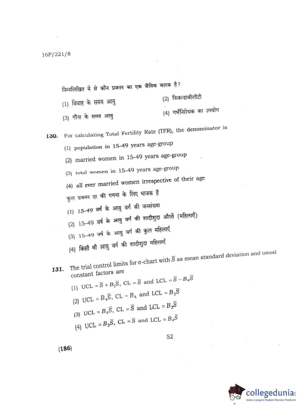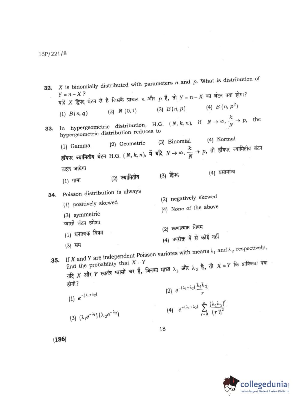 BHU PET 2016 M.SC. STATISTICS Question Paper with Answer Key PDFs