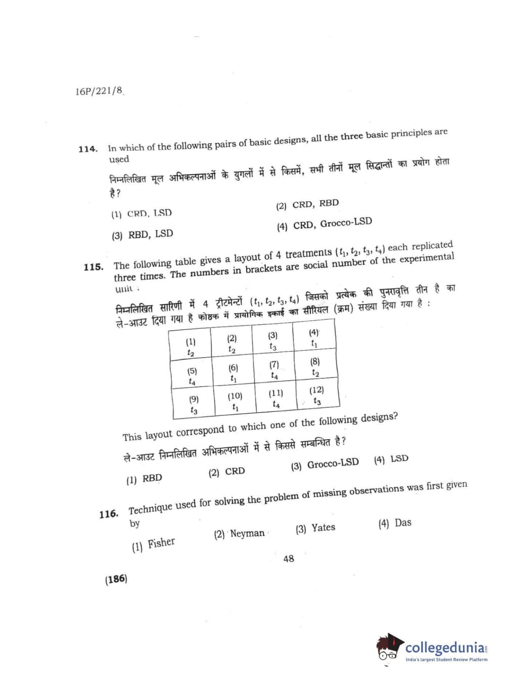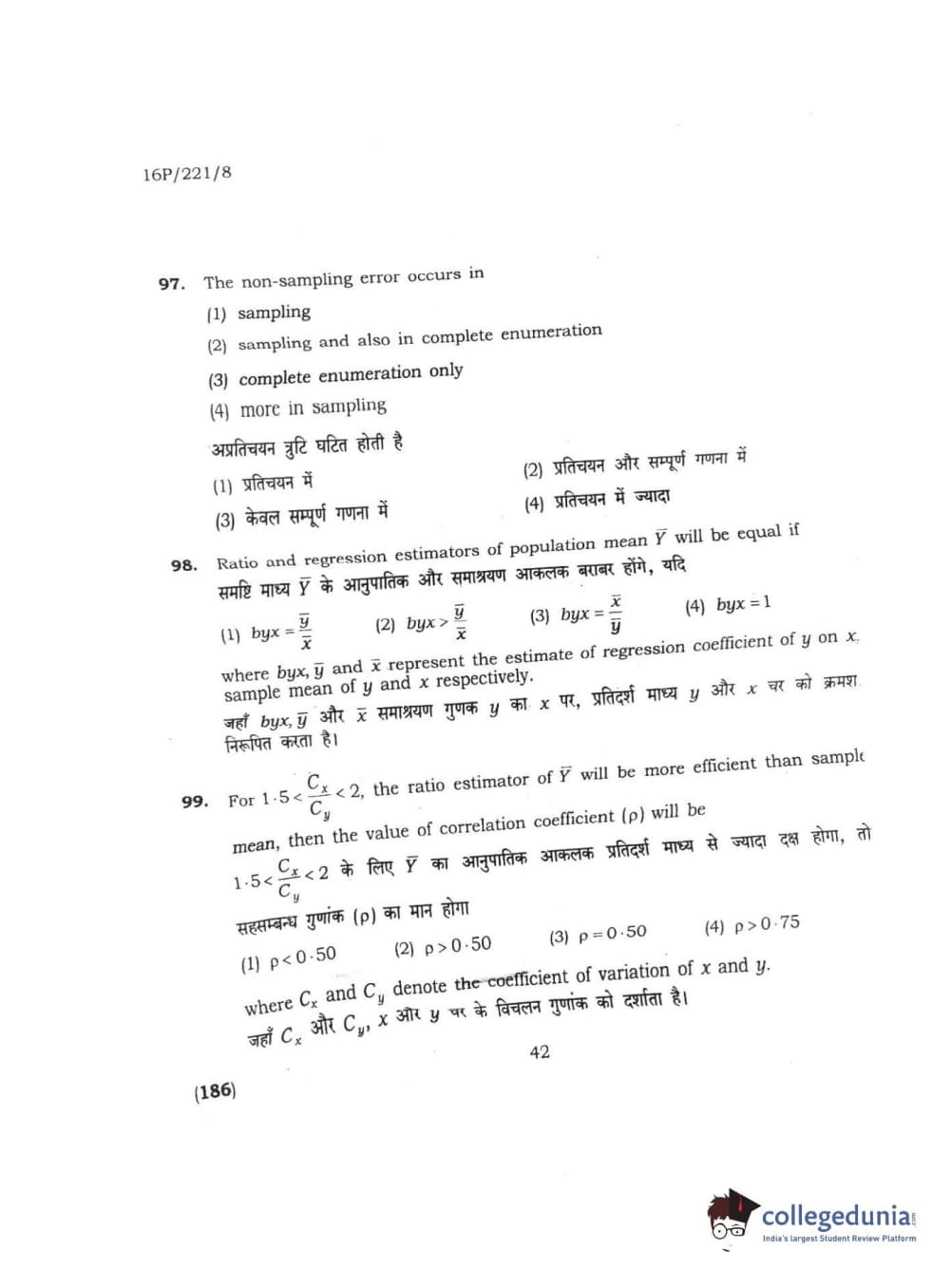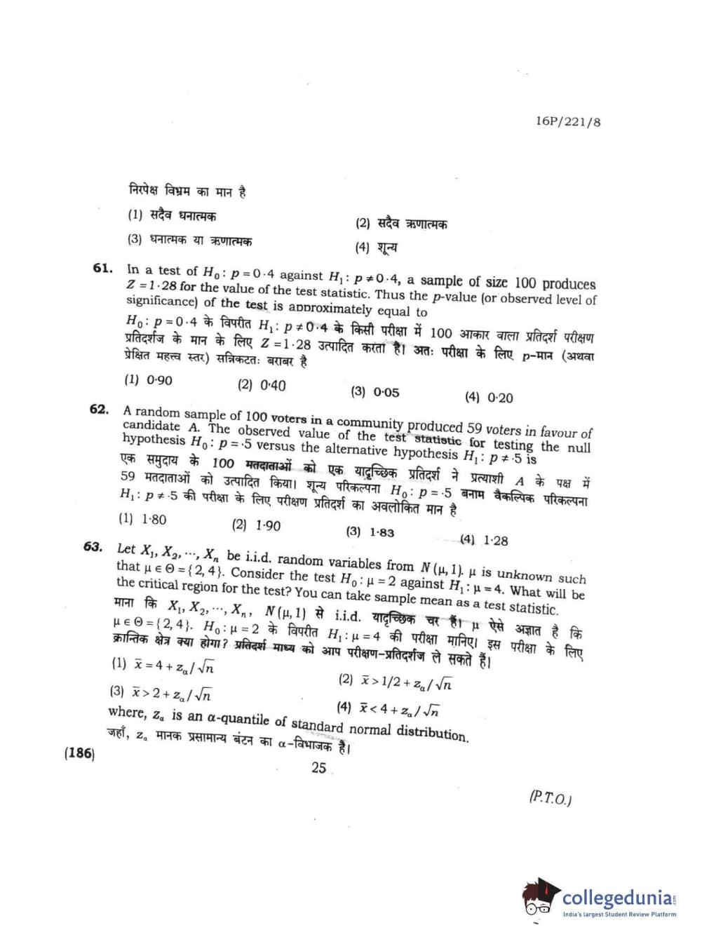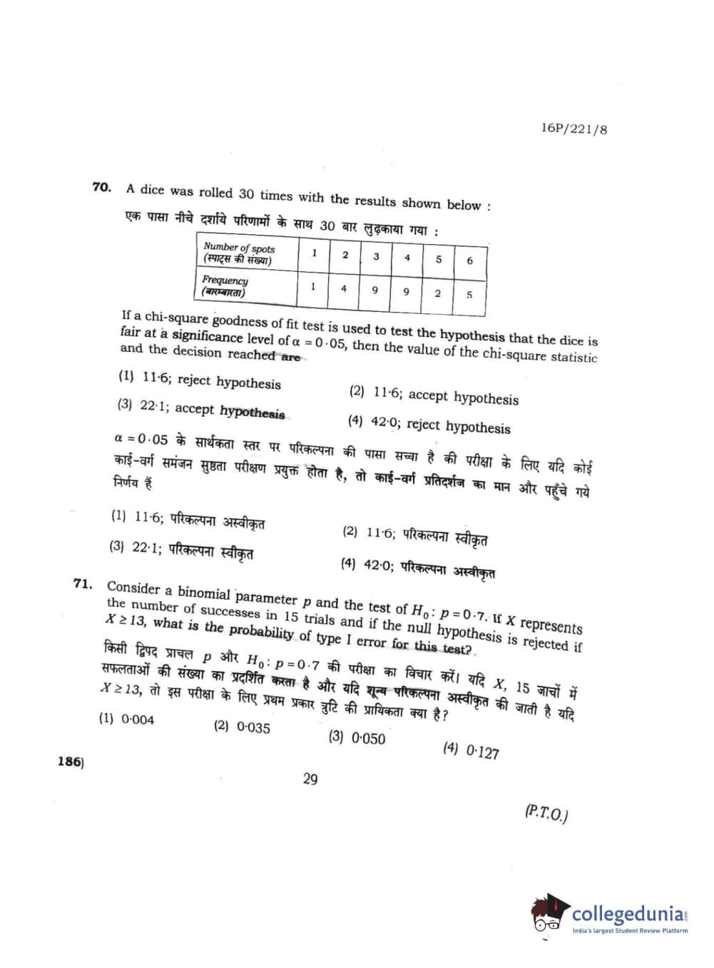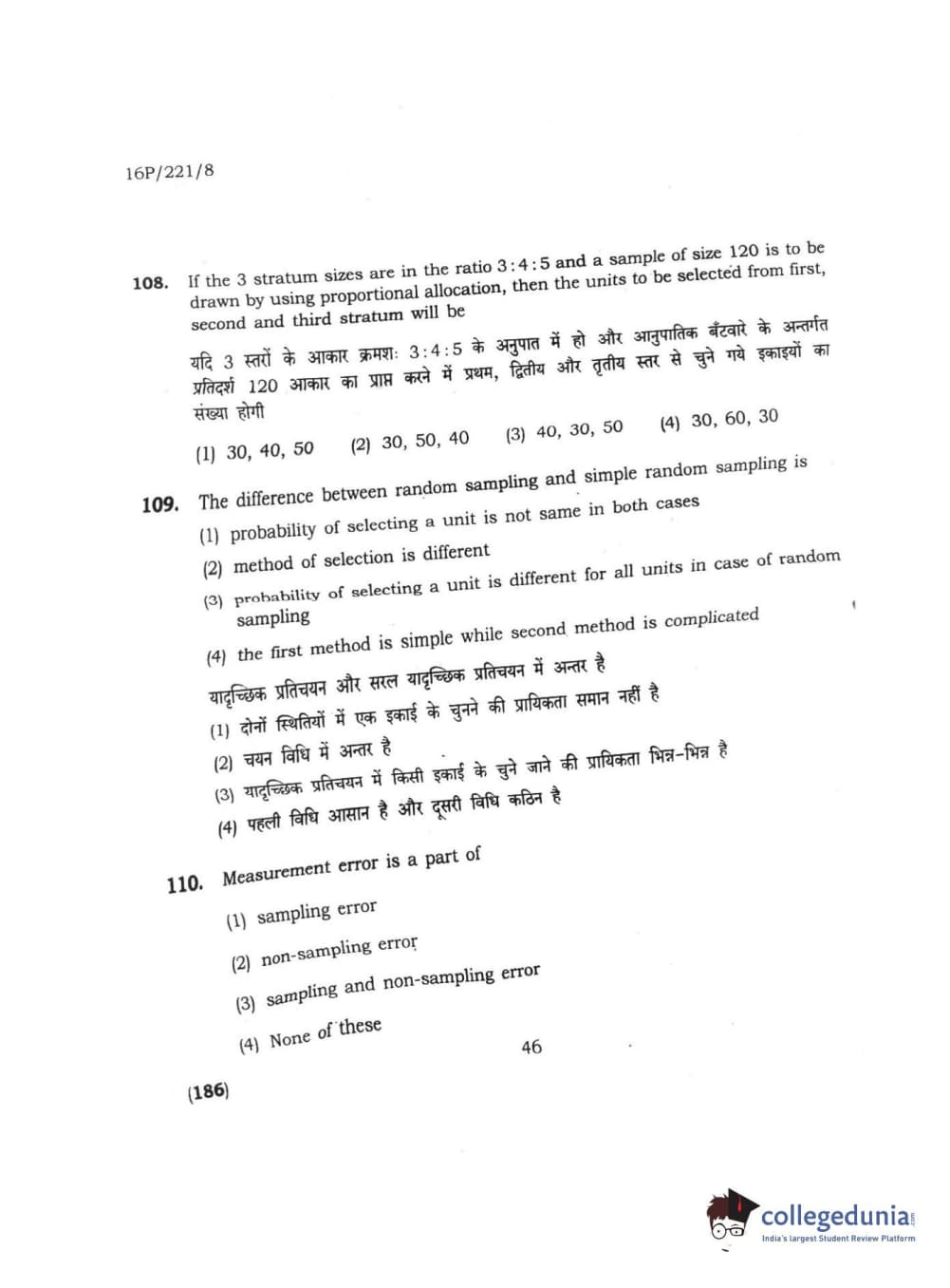 BHU PET 2016 M.SC. STATISTICS Question Paper with Answer Key PDFs
