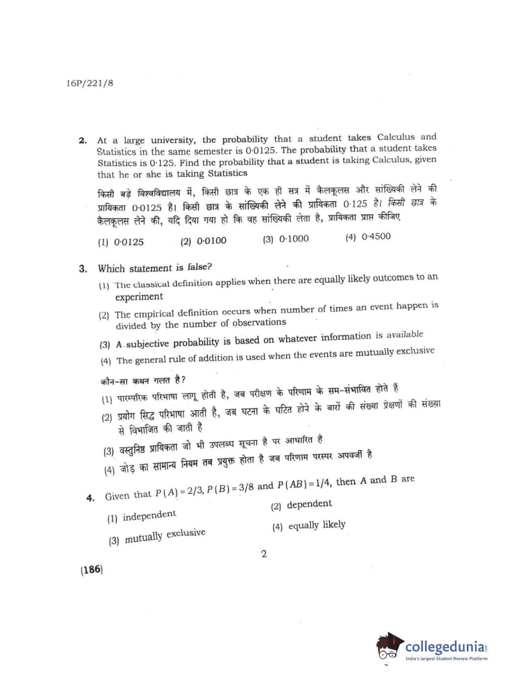 | BHU PET 2016 M.SC. STATISTICS Question Paper PDF | BHU PET 2016 M.SC. STATISTICS Answer Key PDF |