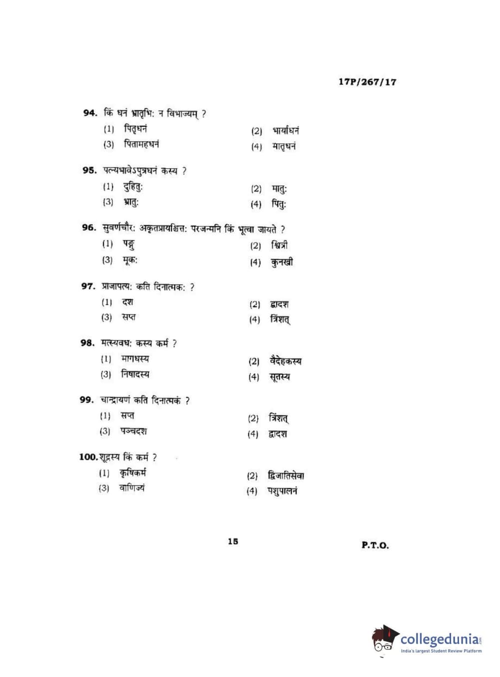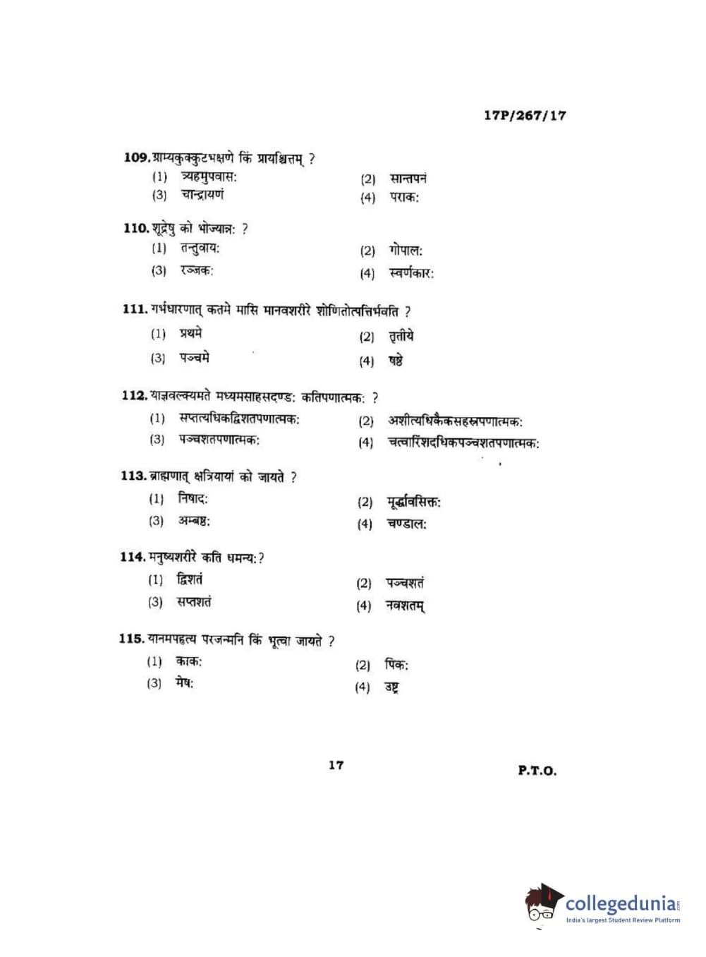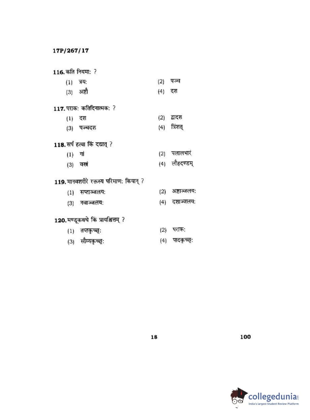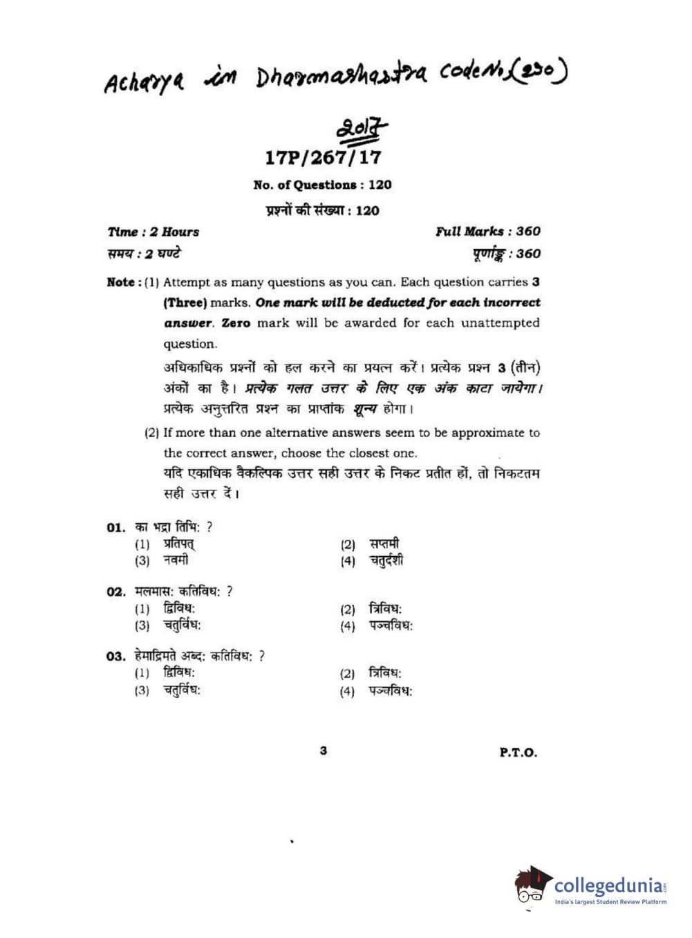 BHU PET 2017 Acharya in Dharmashastra Question paper with answer key pdf is available for download. The exam was successfully organized by Banaras Hindu University (BHU). The question paper comprised a total of 120 questions.