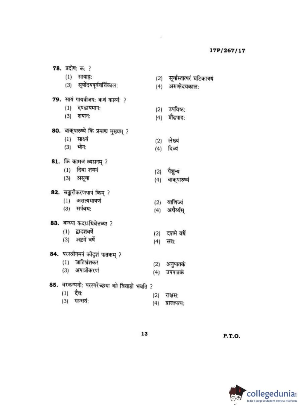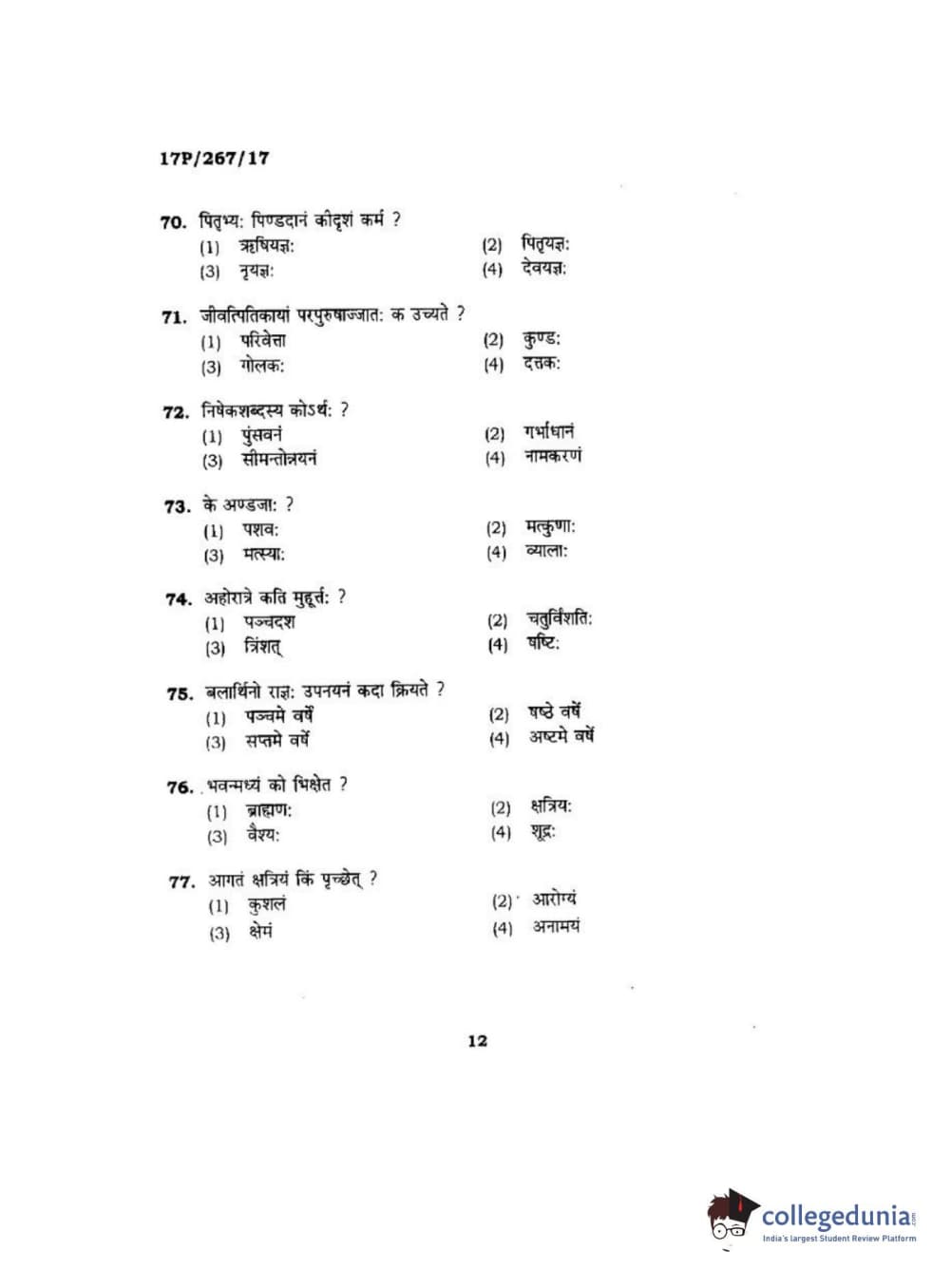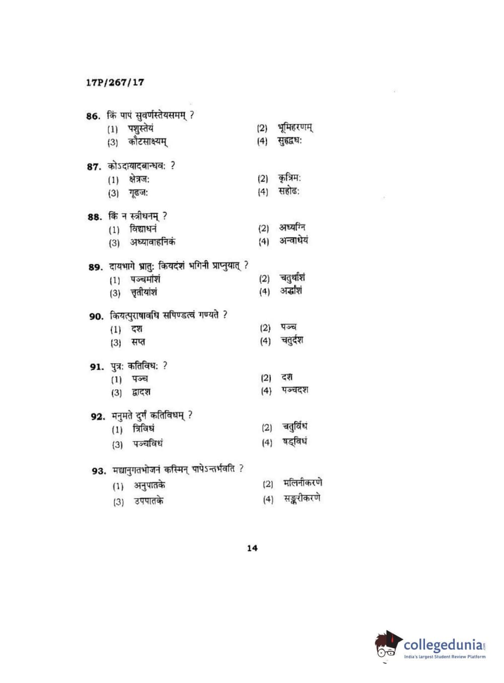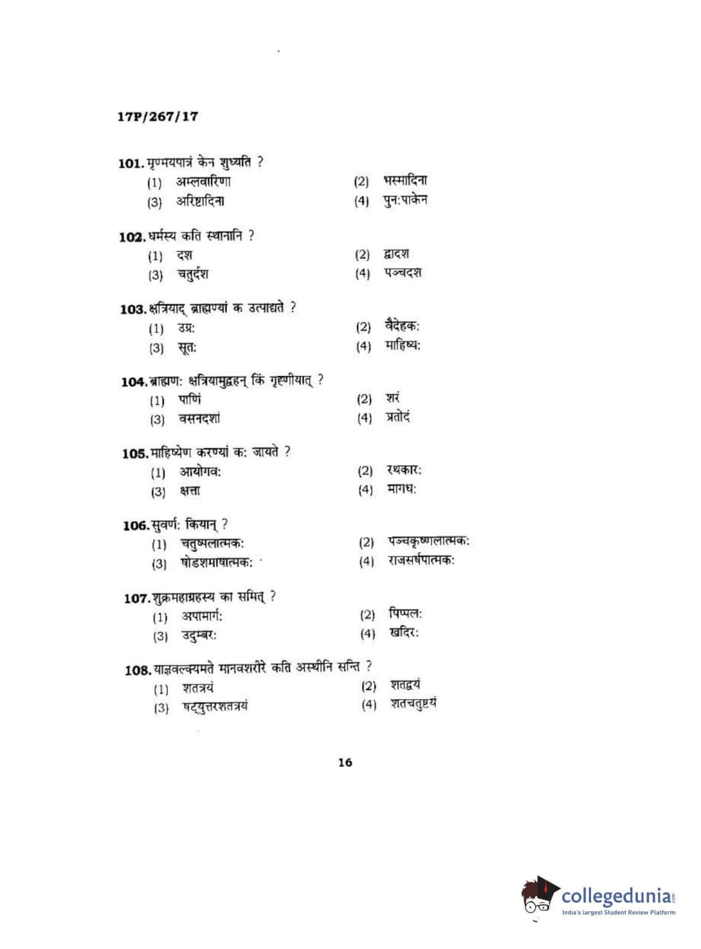 BHU PET 2017 Acharya in Dharmashastra Question paper with answer key pdf is available for download. The exam was successfully organized by Banaras Hindu University (BHU). The question paper comprised a total of 120 questions.