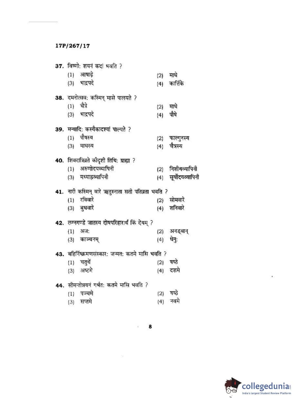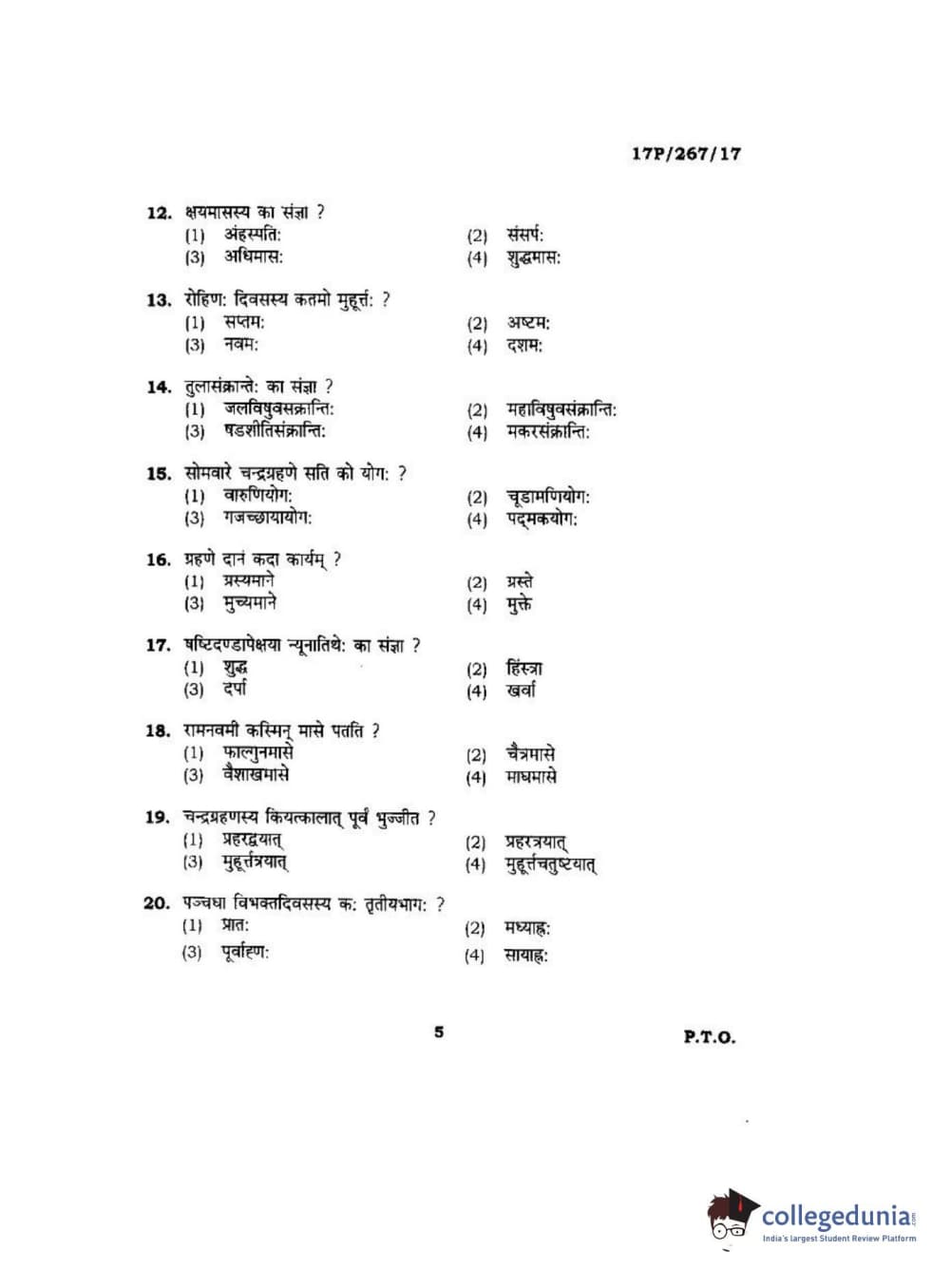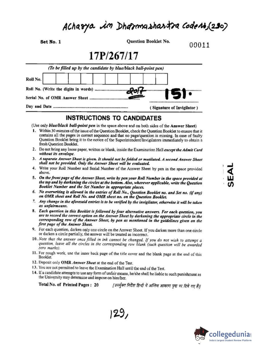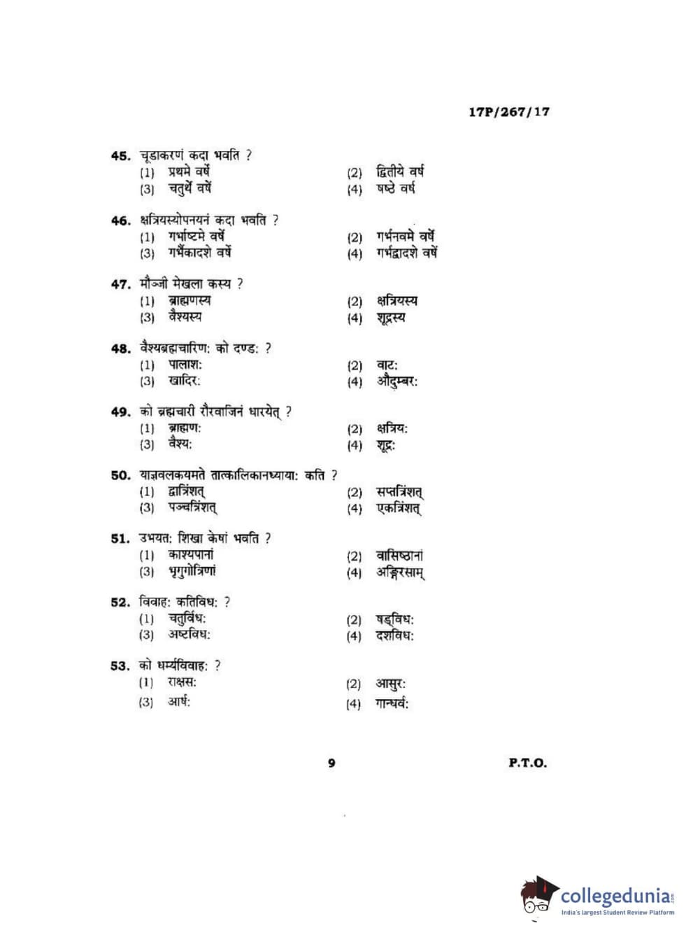 BHU PET 2017 Acharya in Dharmashastra Question paper with answer key pdf is available for download. The exam was successfully organized by Banaras Hindu University (BHU). The question paper comprised a total of 120 questions.