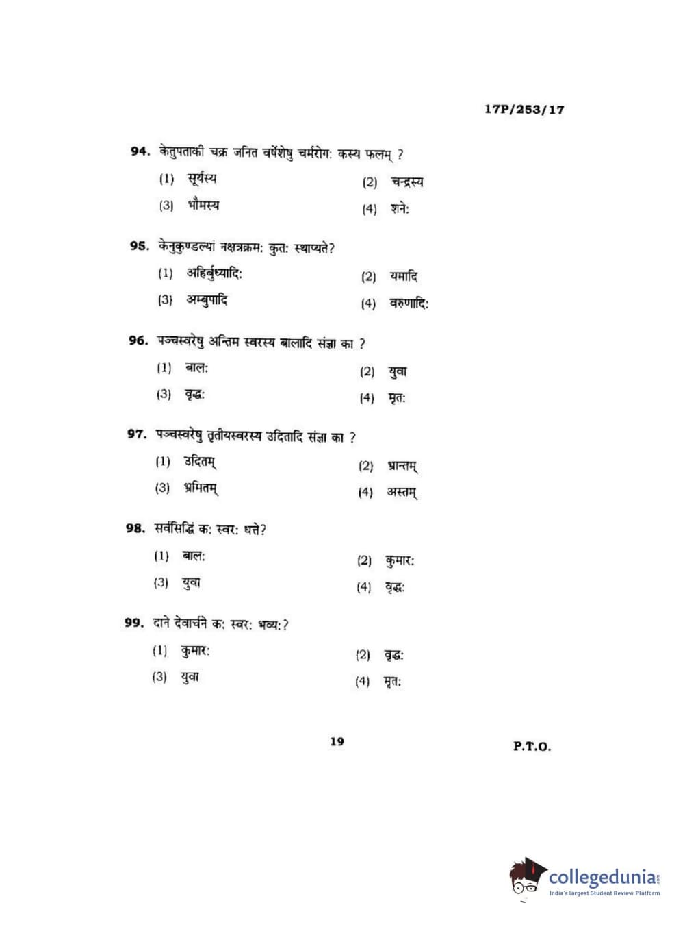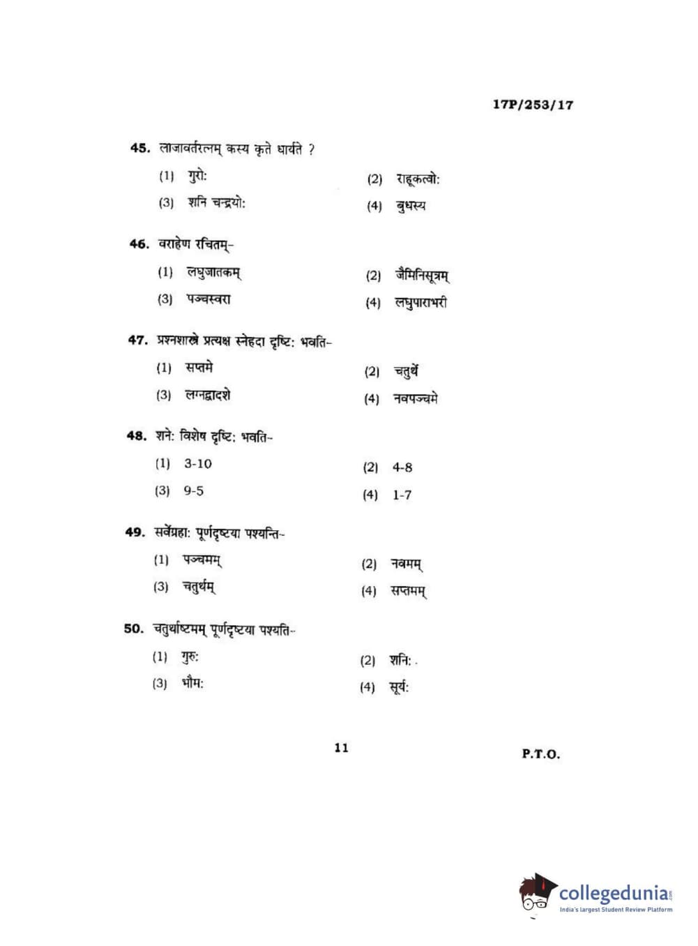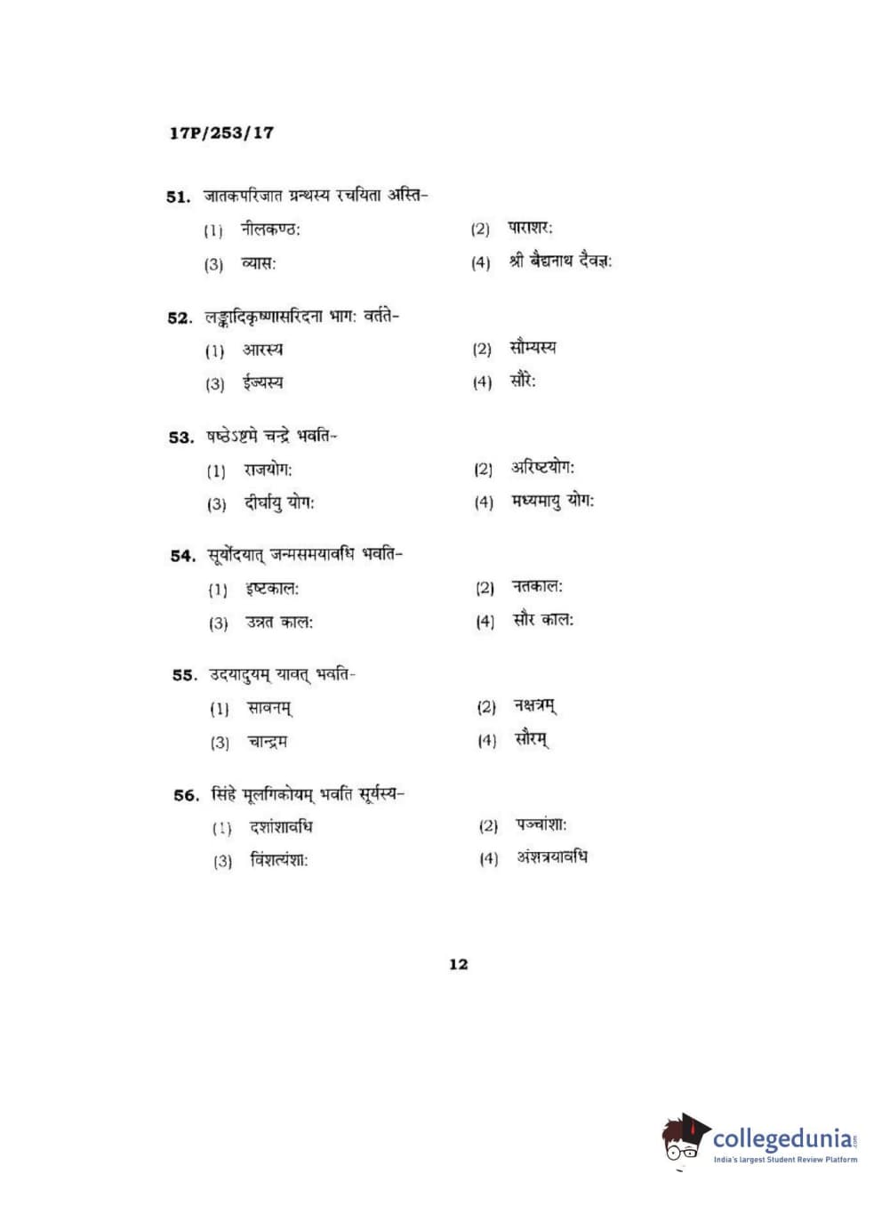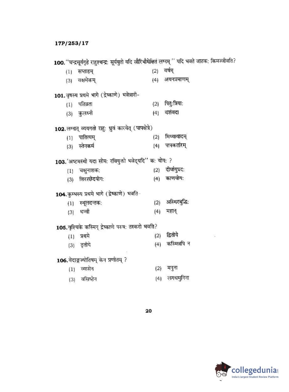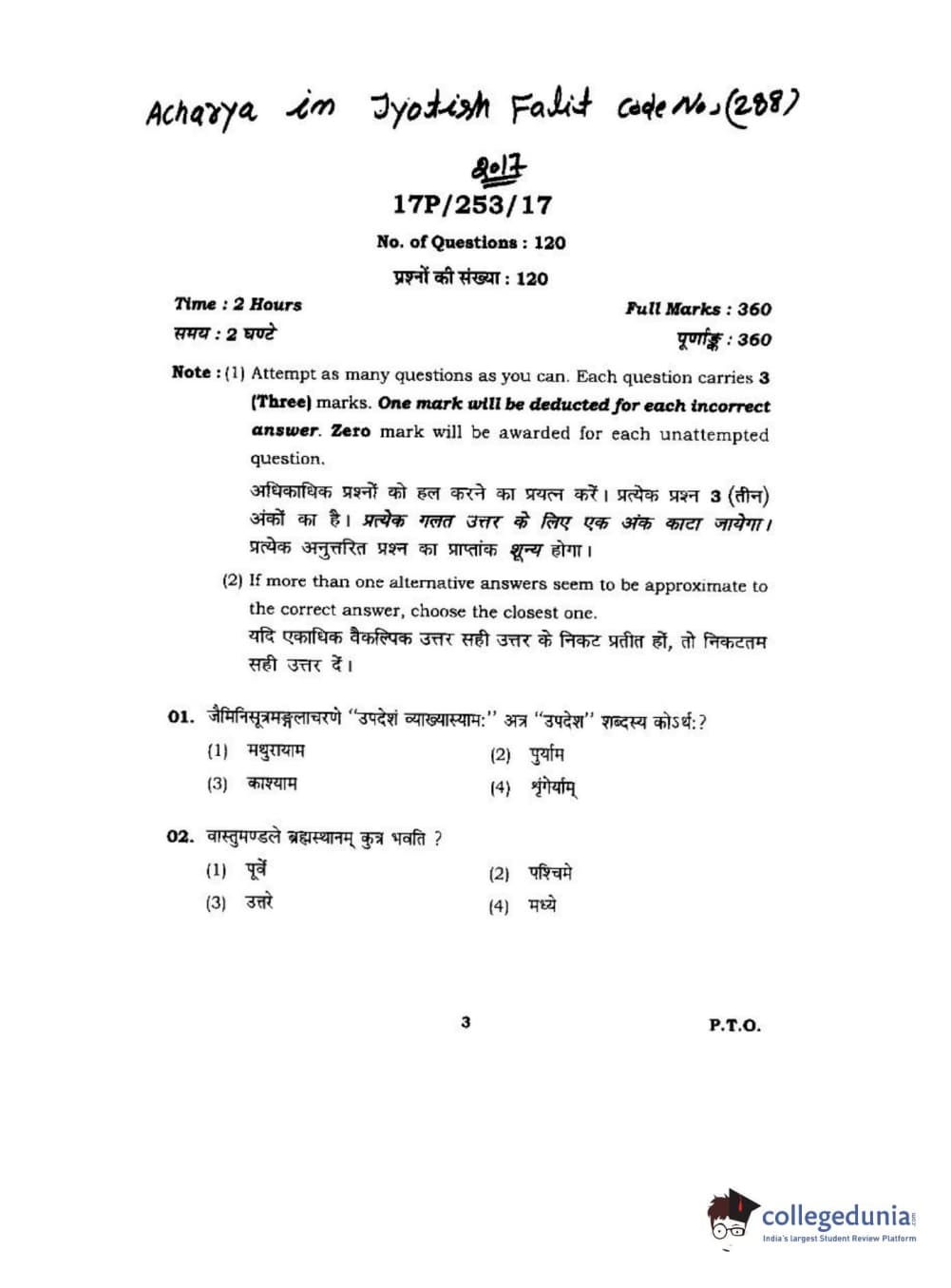 BHU PET 2017 Acharya in Jyotish Falit Question paper with answer key pdf is available for download. The exam was successfully organized by Banaras Hindu University (BHU). The question paper comprised a total of 120 questions.