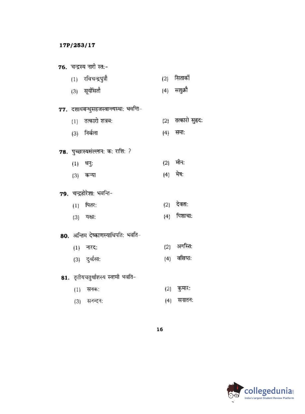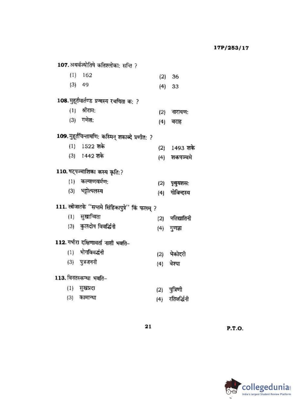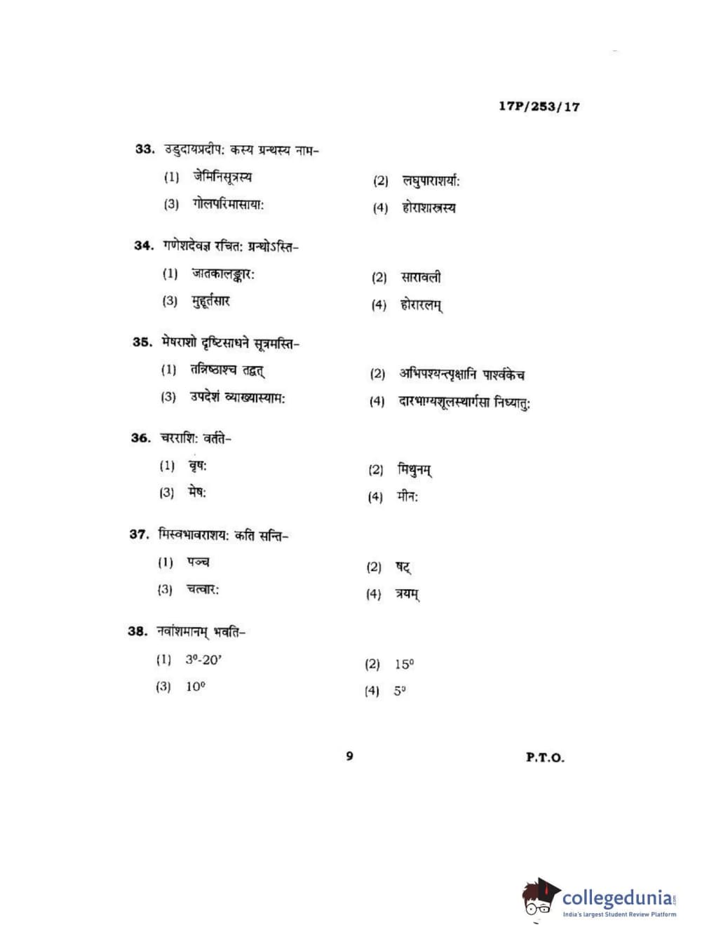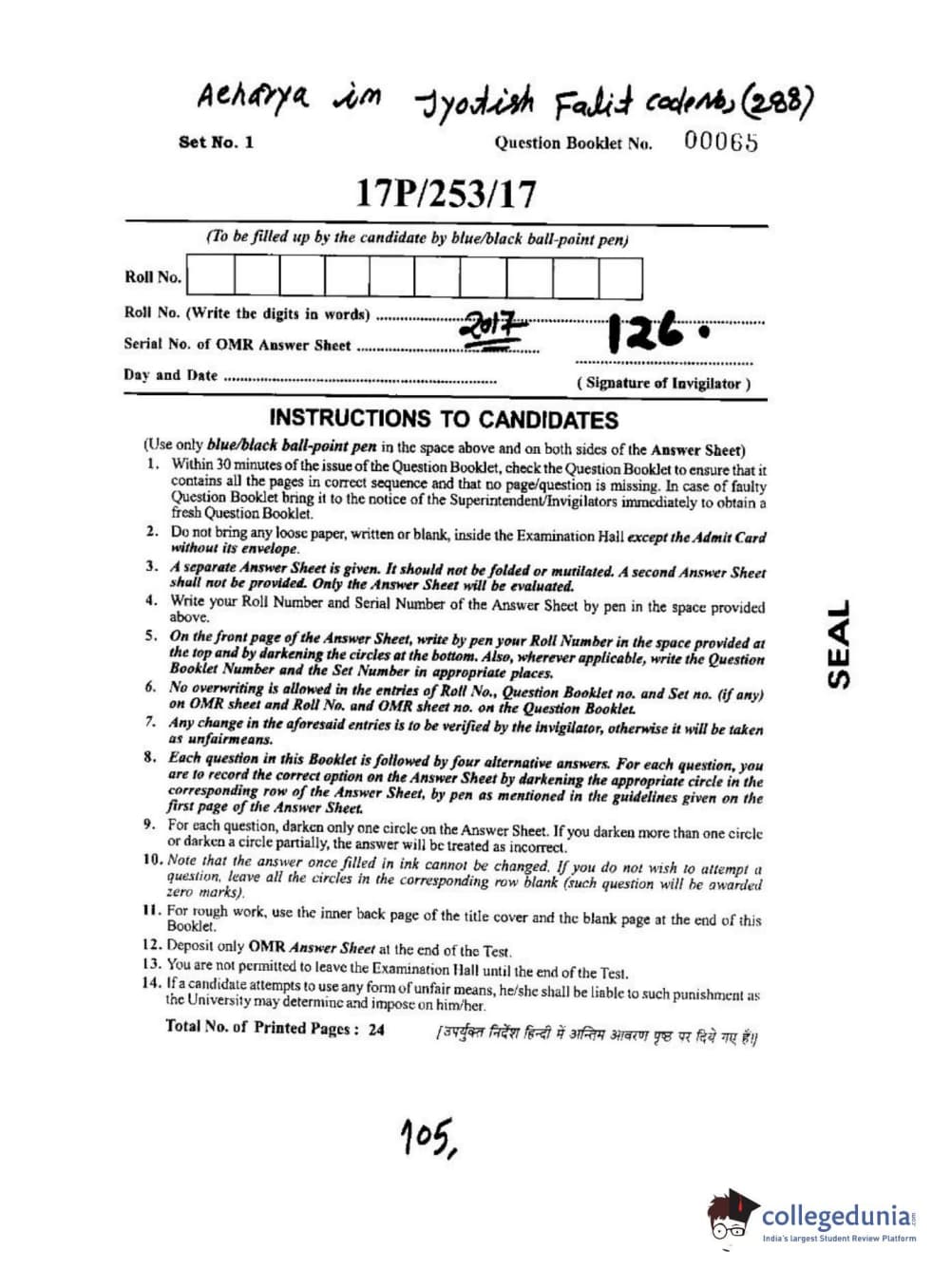 BHU PET 2017 Acharya in Jyotish Falit Question paper with answer key pdf is available for download. The exam was successfully organized by Banaras Hindu University (BHU). The question paper comprised a total of 120 questions.