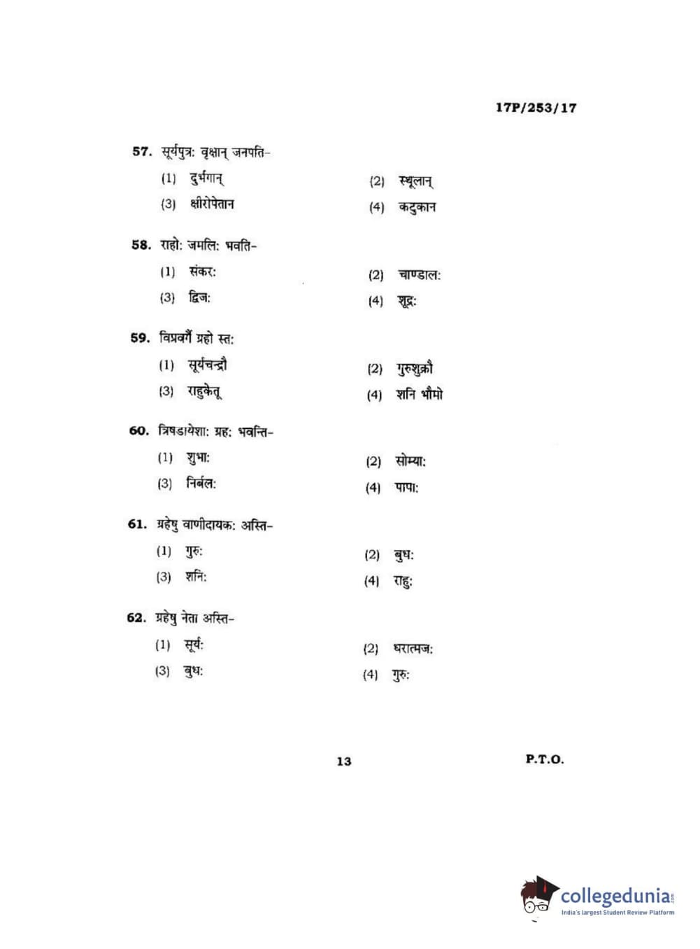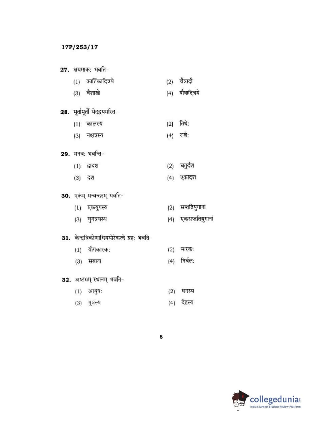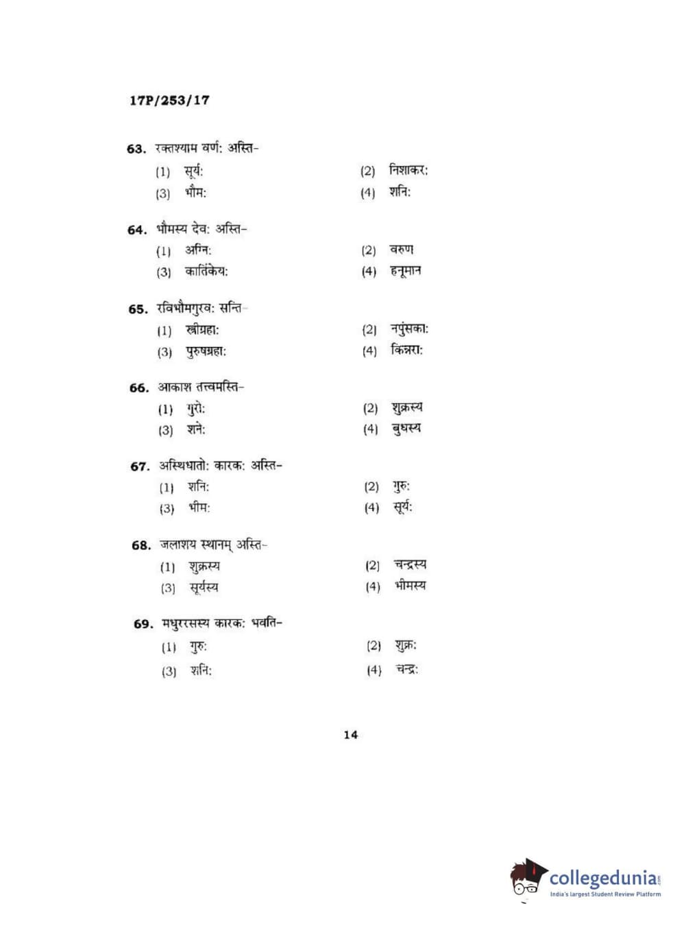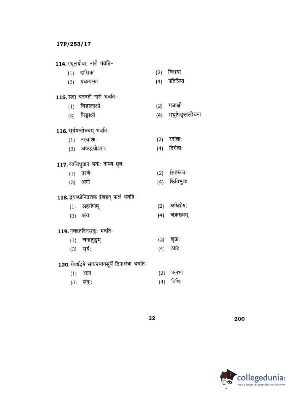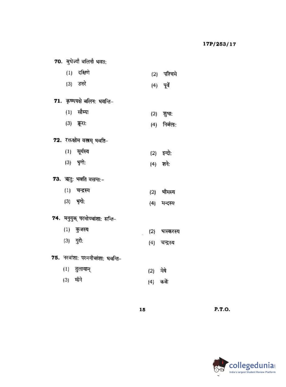 BHU PET 2017 Acharya in Jyotish Falit Question paper with answer key pdf is available for download. The exam was successfully organized by Banaras Hindu University (BHU). The question paper comprised a total of 120 questions.