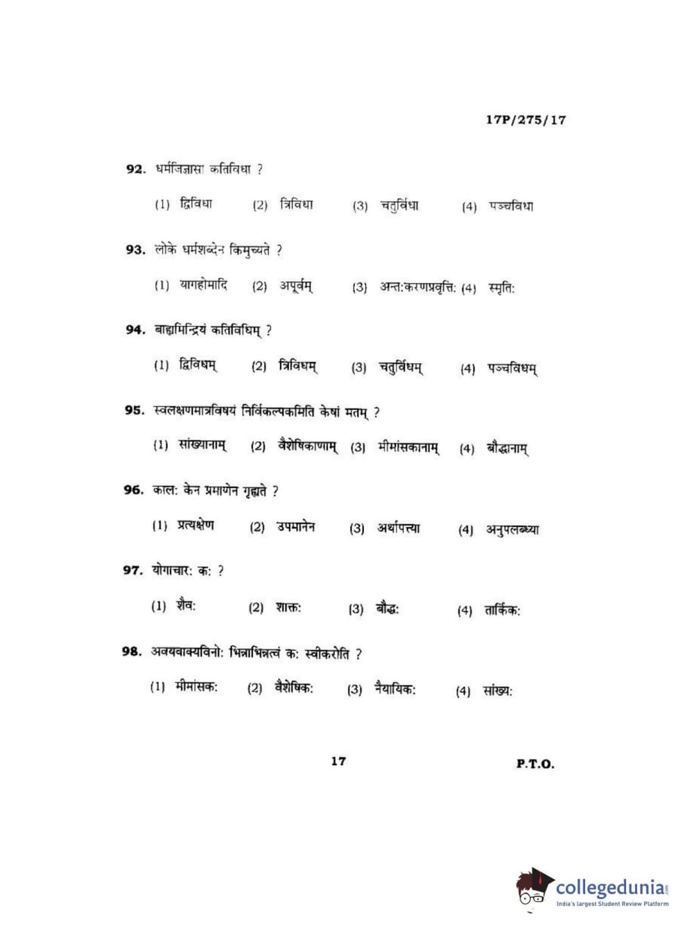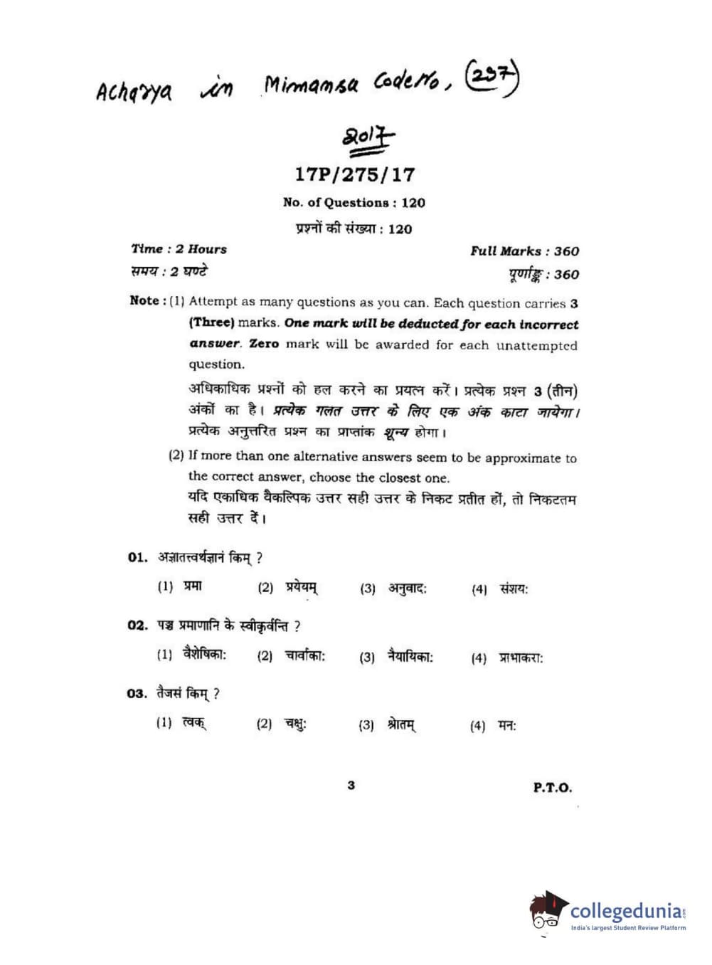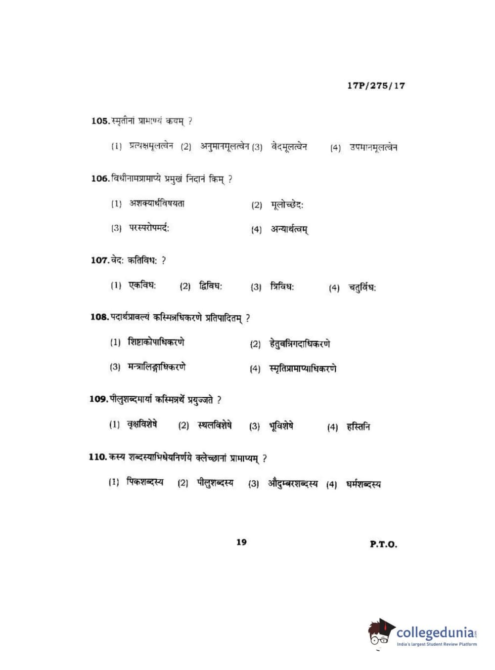 BHU PET 2017 Acharya in Mimansa Question paper with answer key pdf is available for download. The exam was successfully organized by Banaras Hindu University (BHU). The question paper comprised a total of 120 questions.