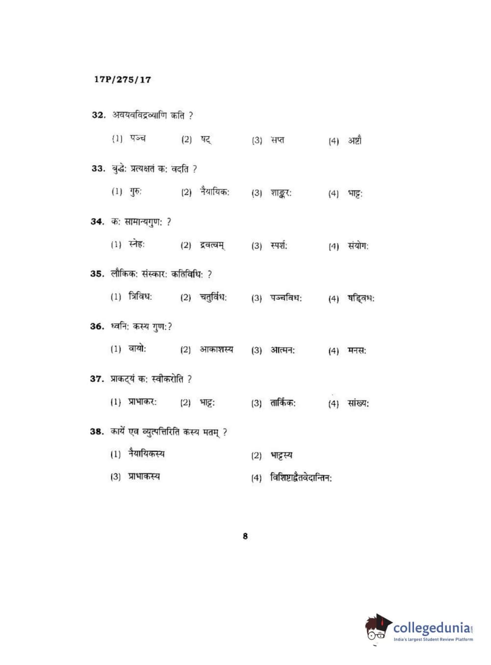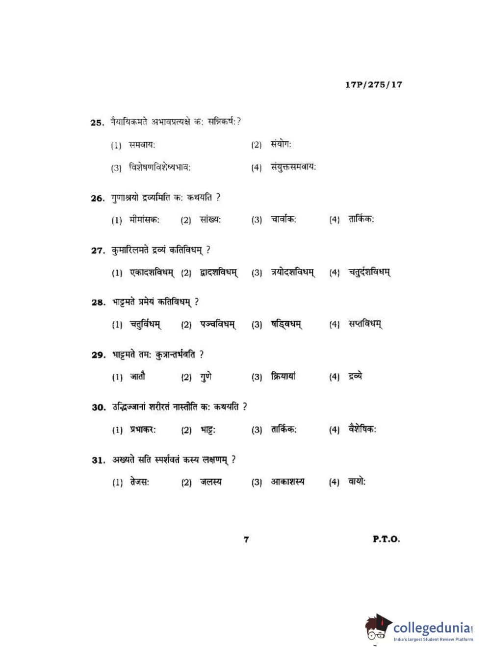 BHU PET 2017 Acharya in Mimansa Question Paper with Answer Key PDFs