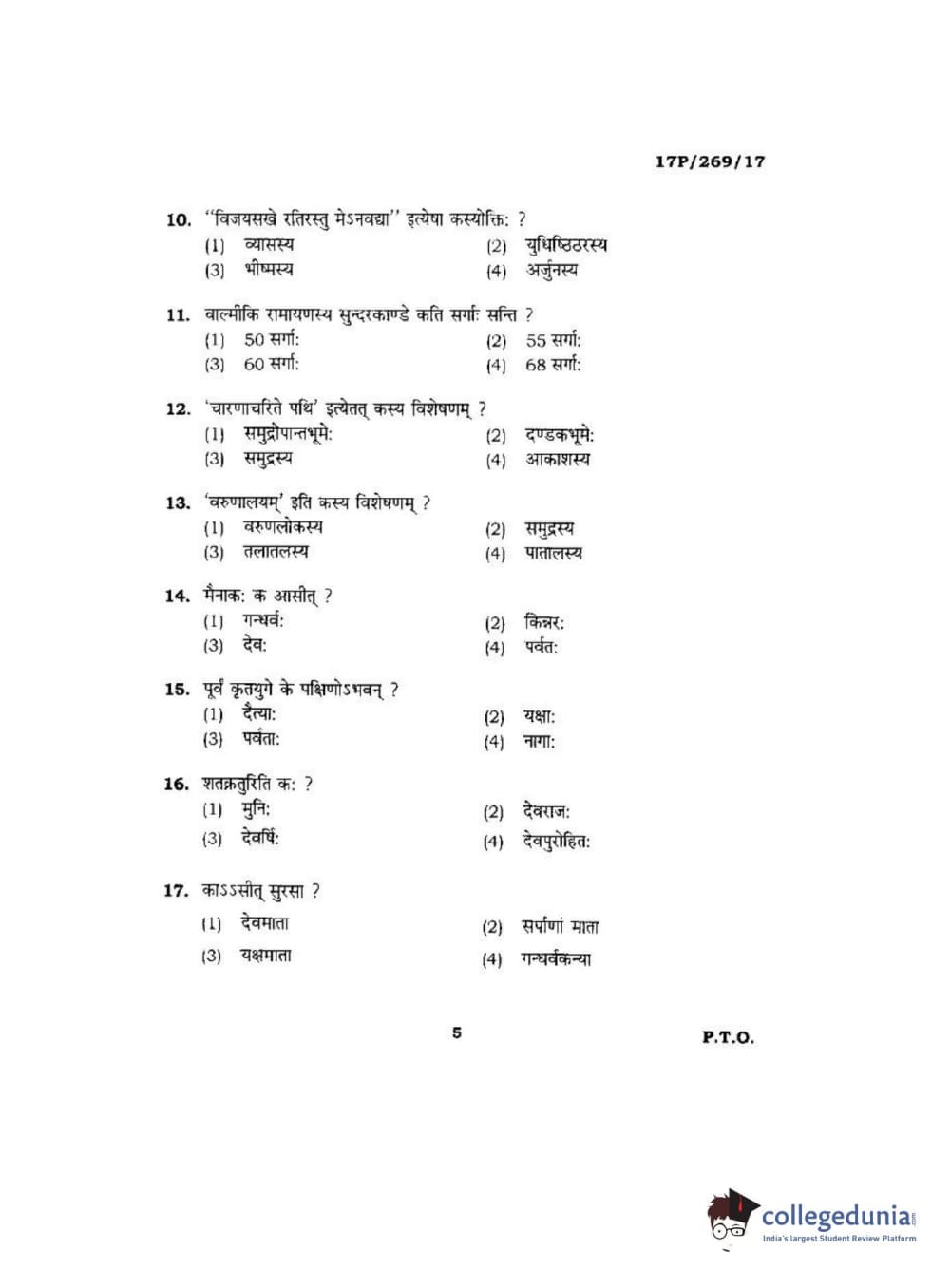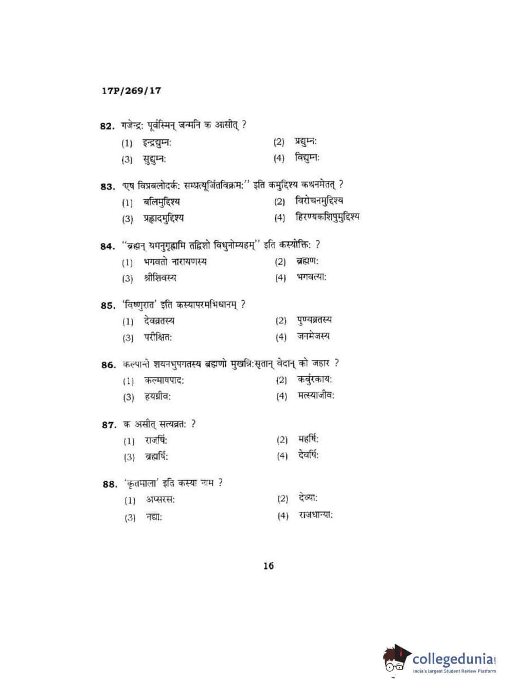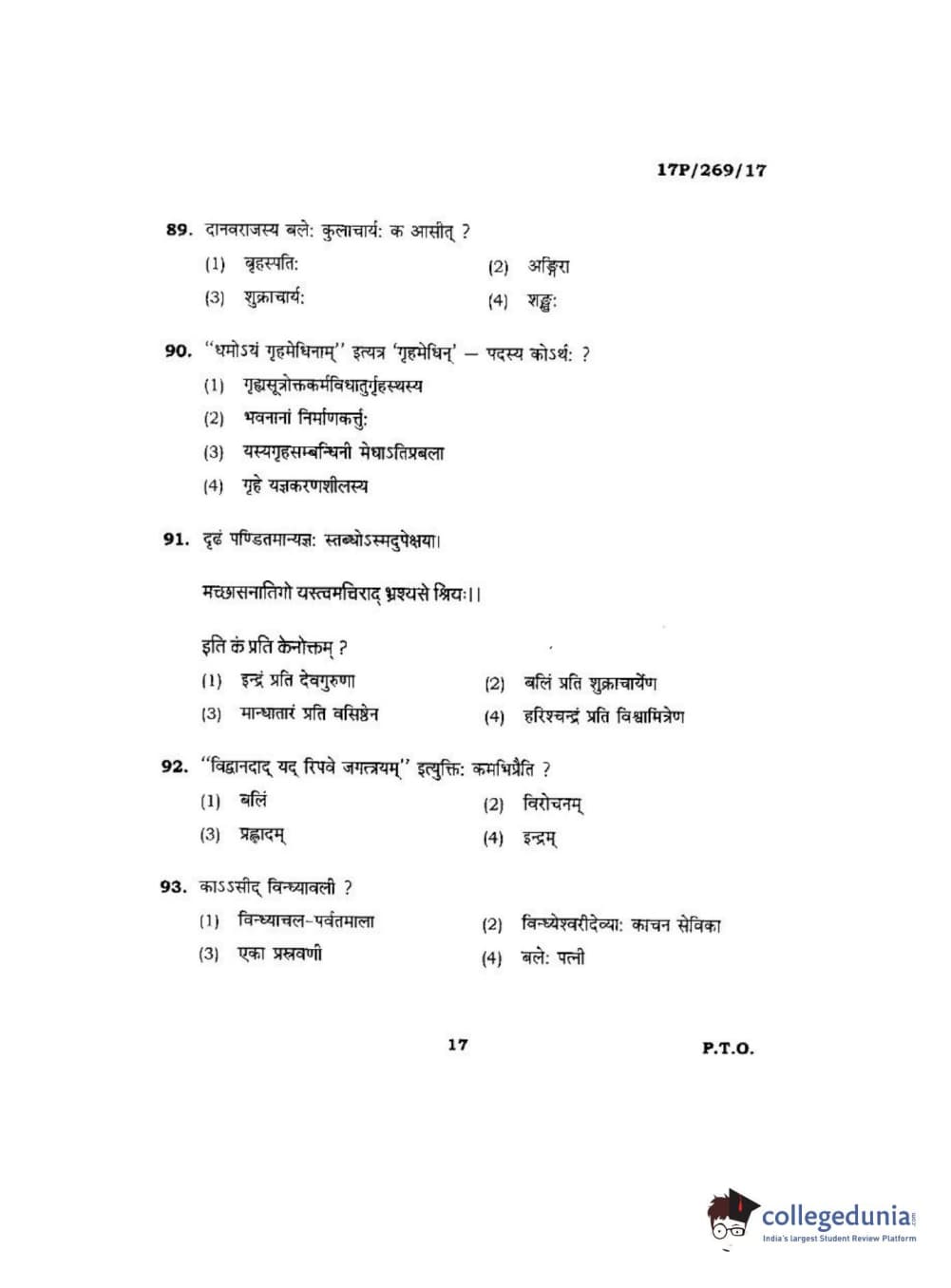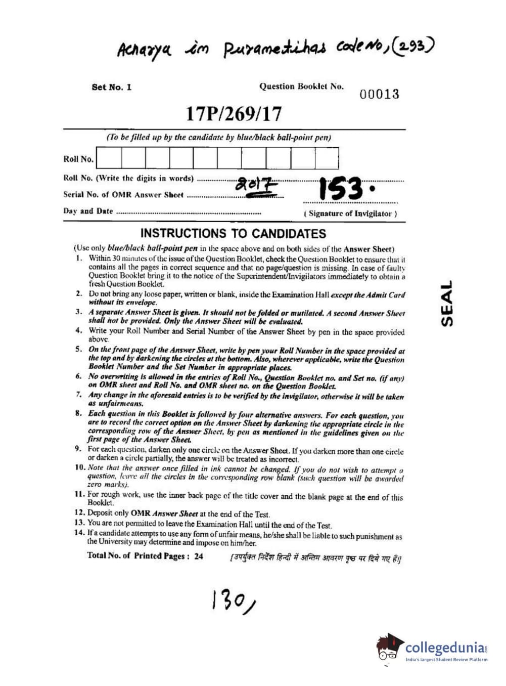 BHU PET 2017 Acharya in Puranetihas Question Paper with Answer Key PDFs