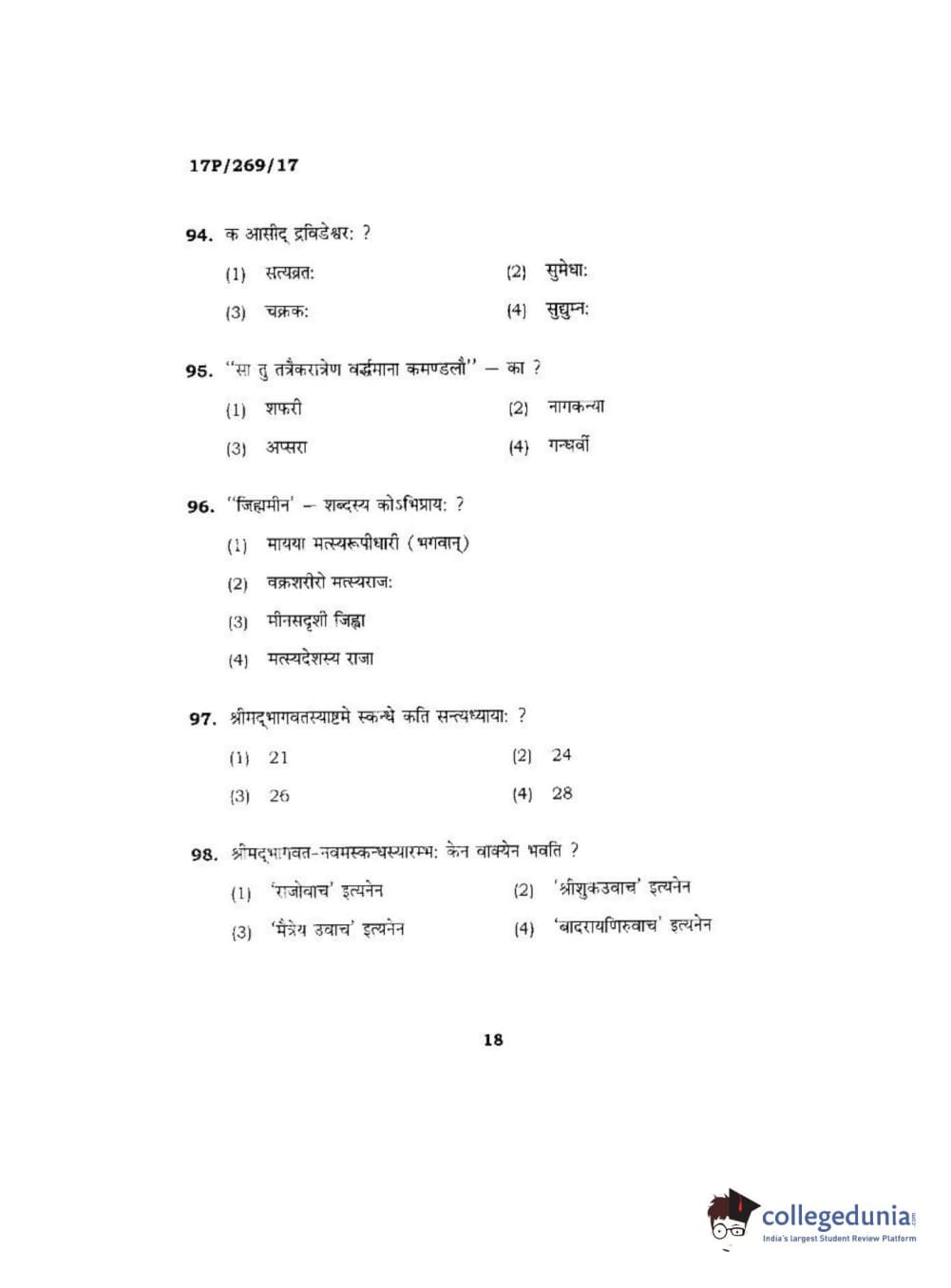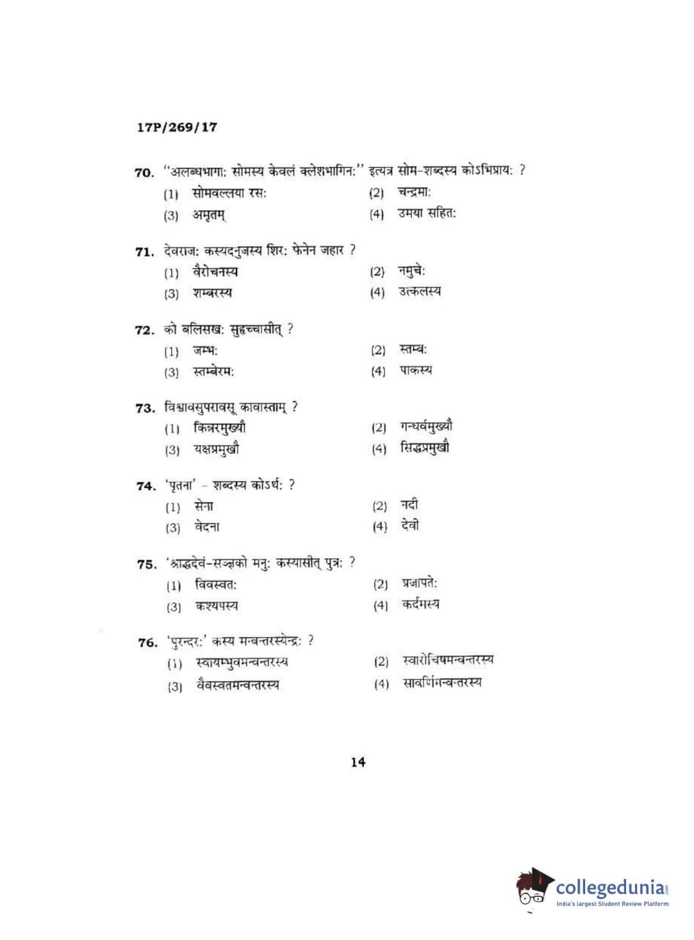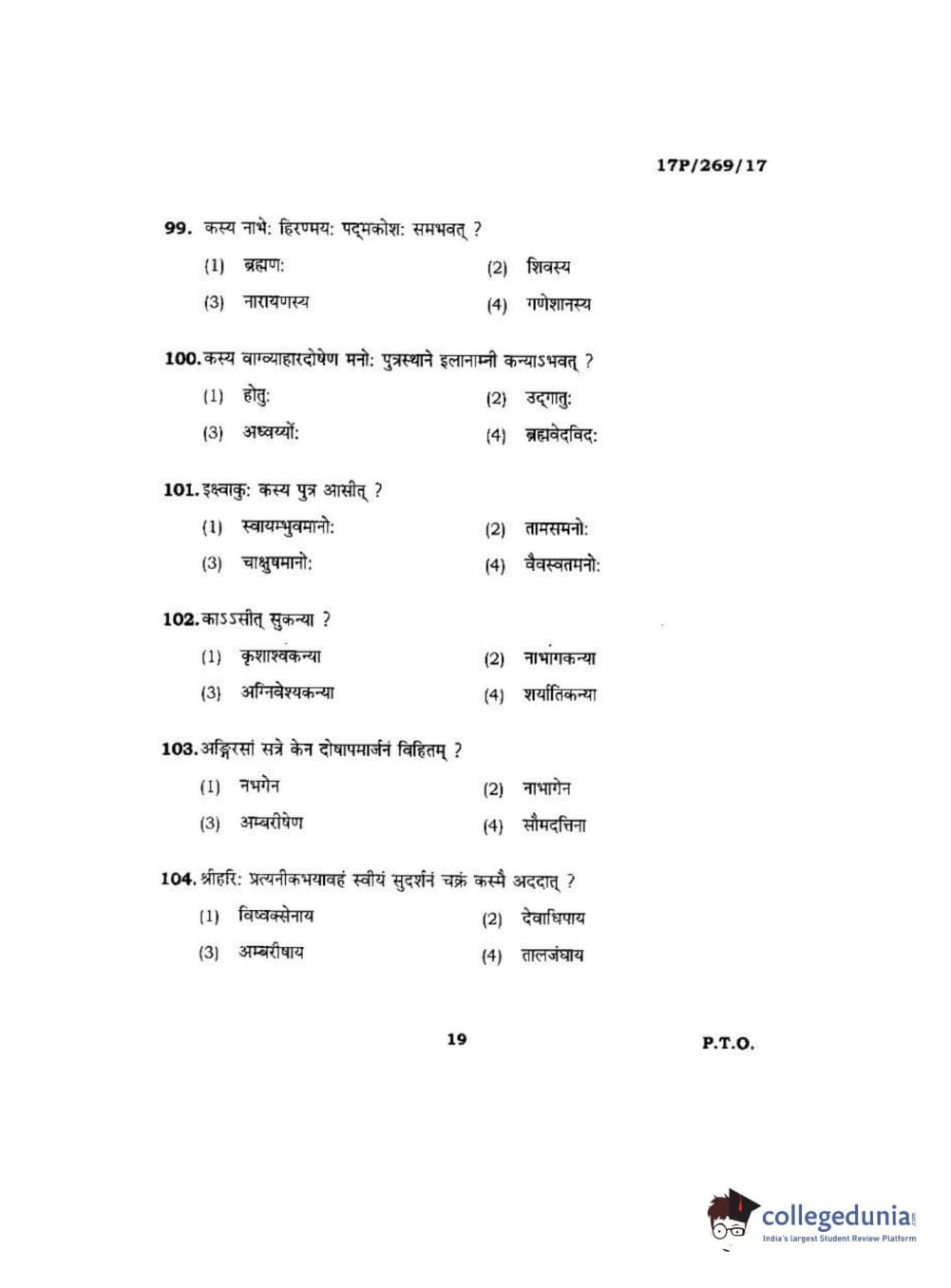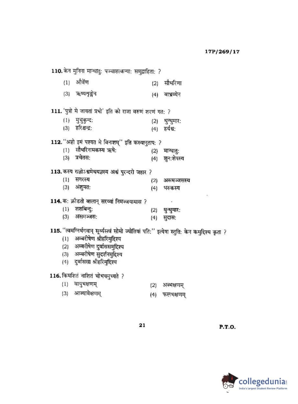BHU PET 2017 Acharya in Puranetihas Question Paper with Answer Key PDFs