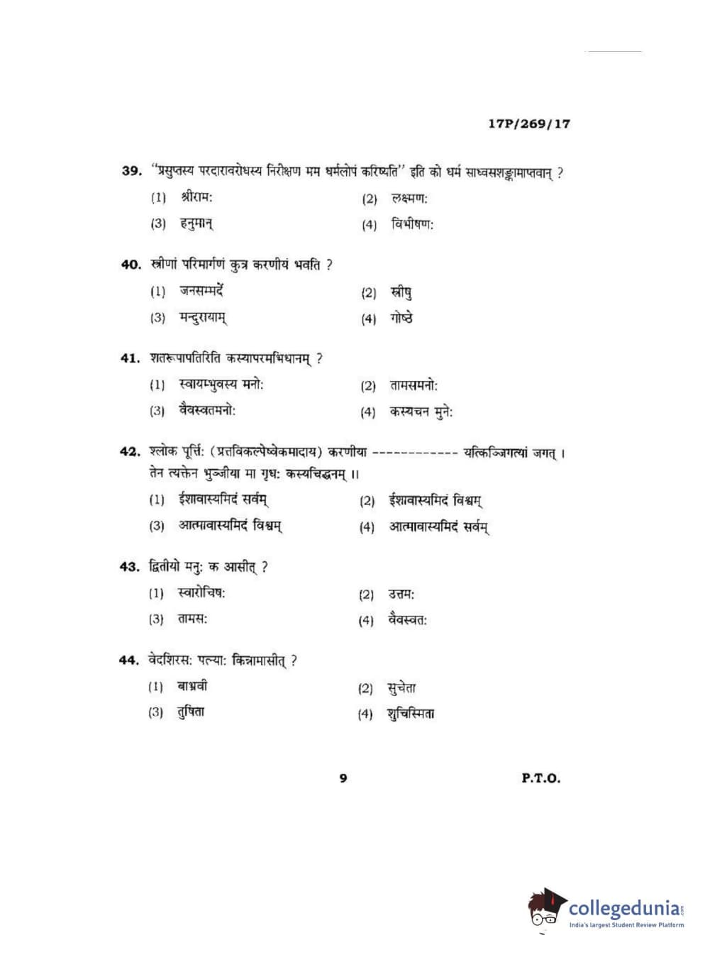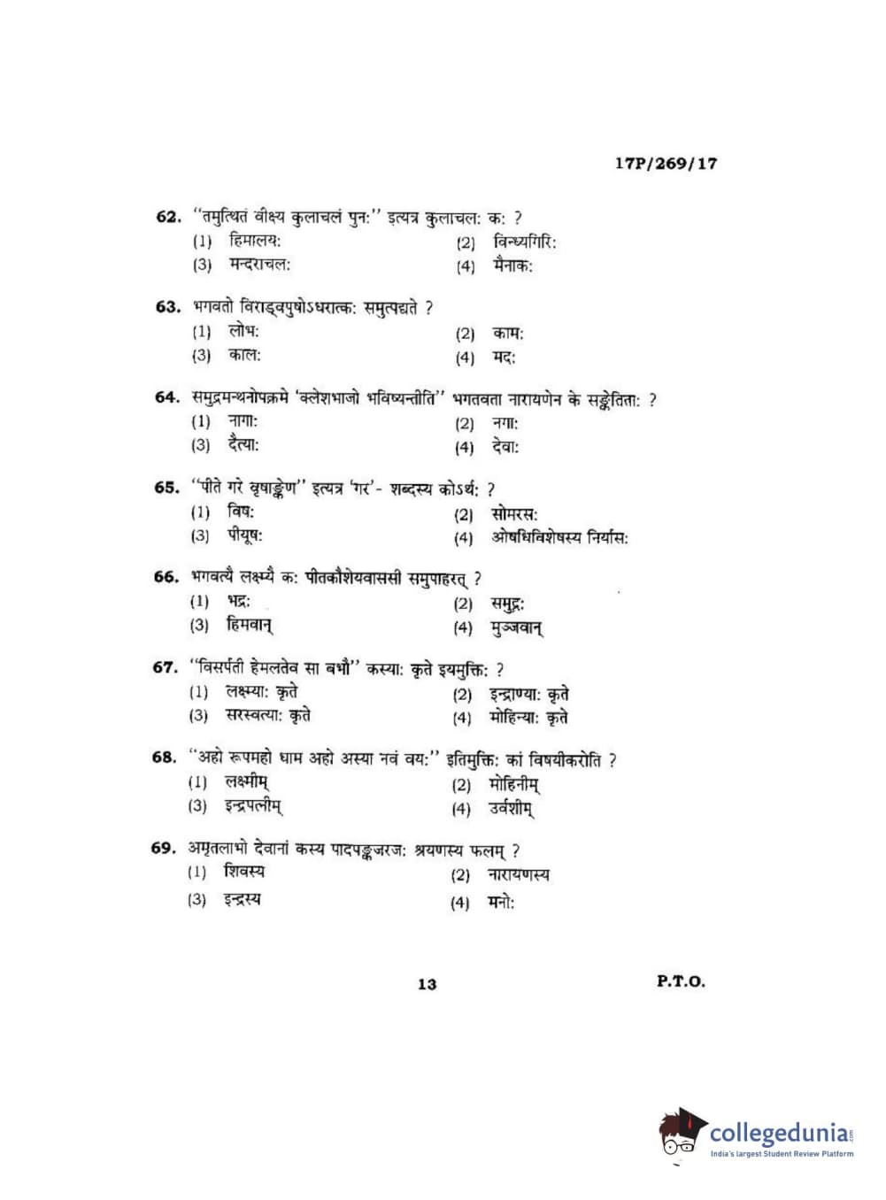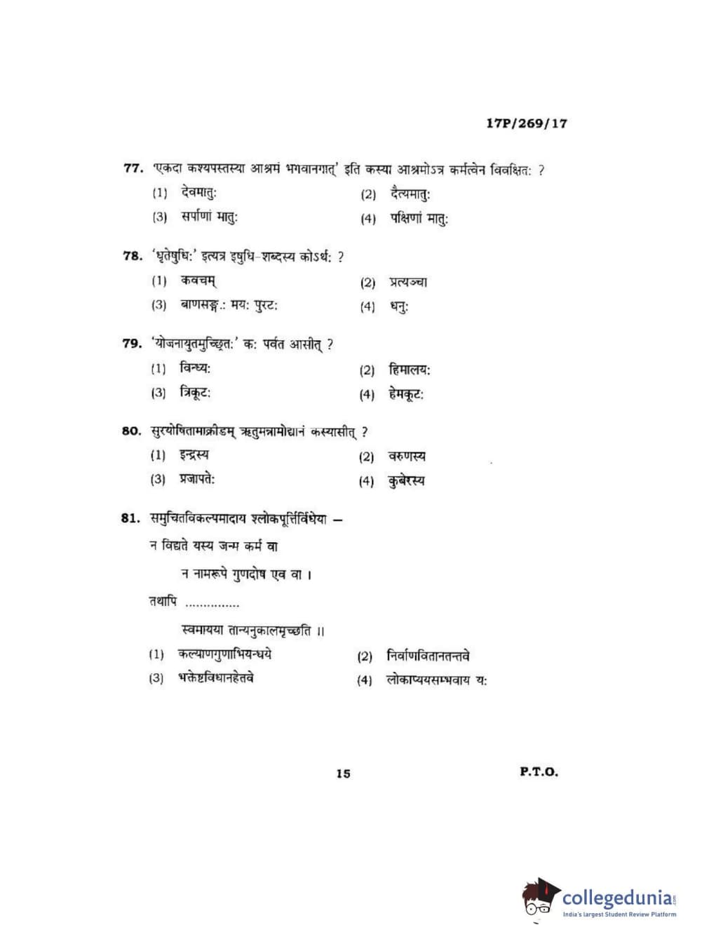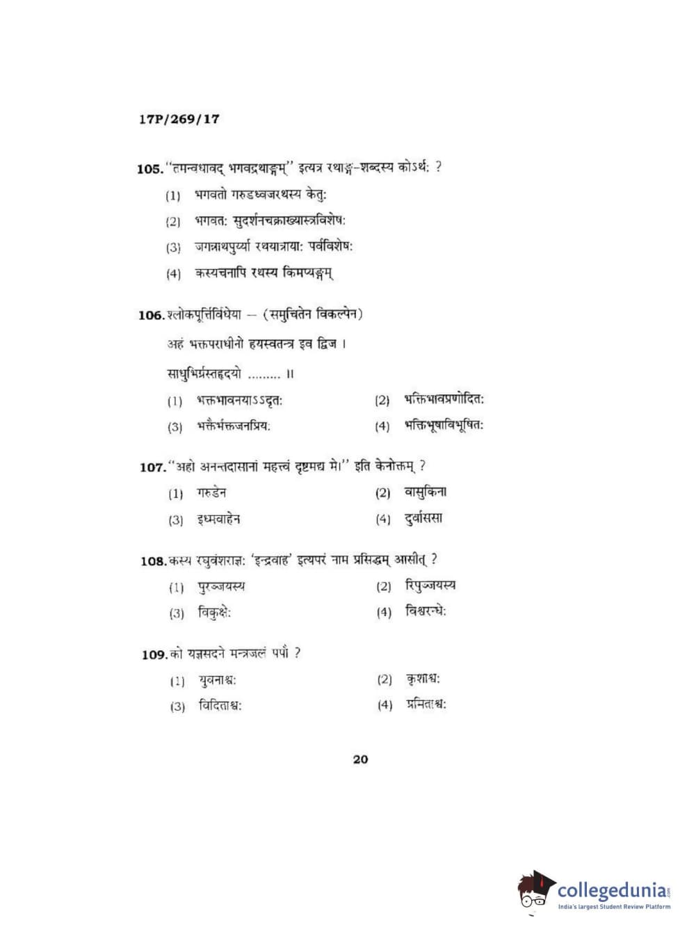 BHU PET 2017 Acharya in Puranetihas Question Paper with Answer Key PDFs