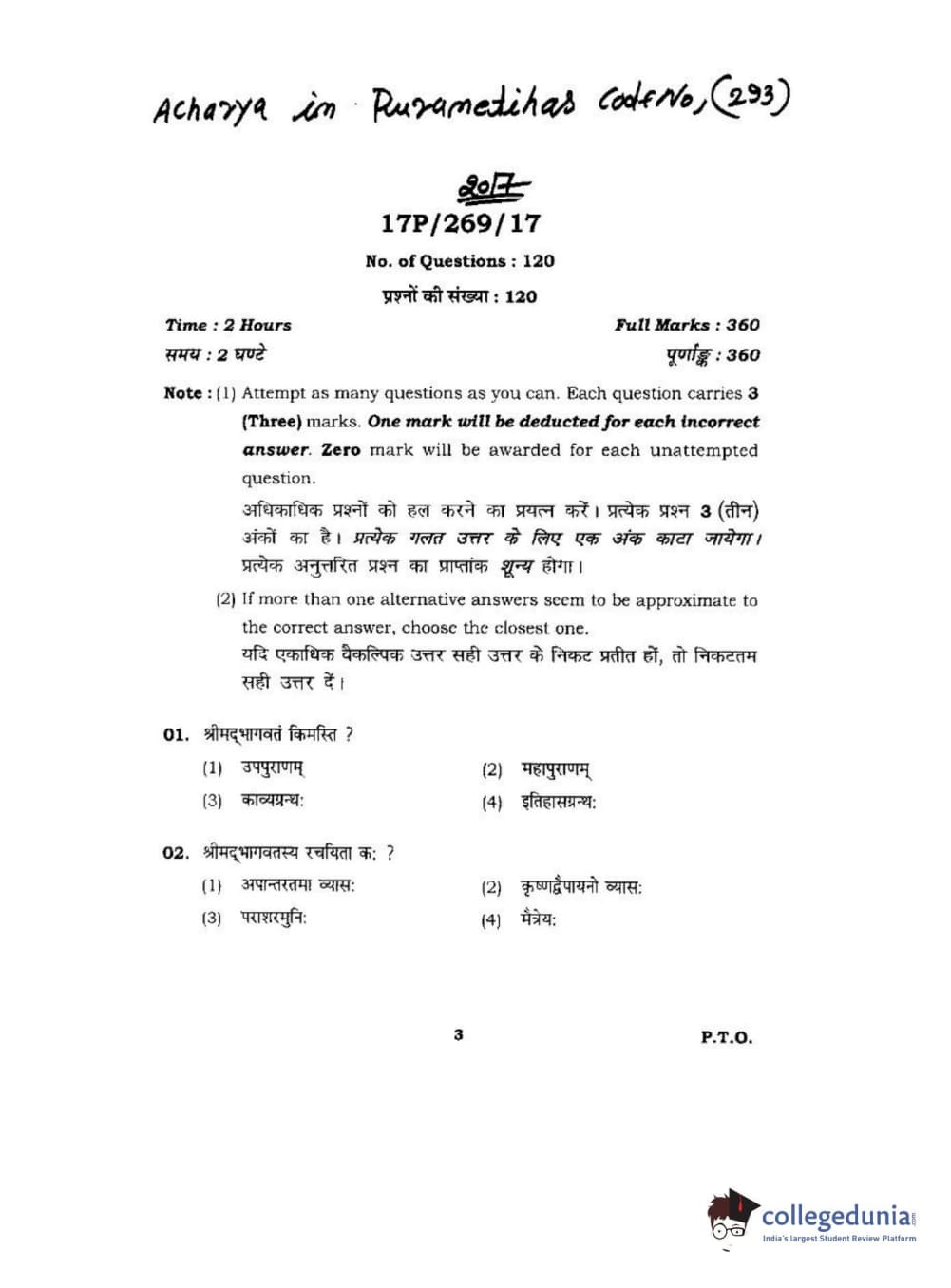 BHU PET 2017 Acharya in Puranetihas Question paper with answer key pdf is available for download. The exam was successfully organized by Banaras Hindu University (BHU). The question paper comprised a total of 120 questions.