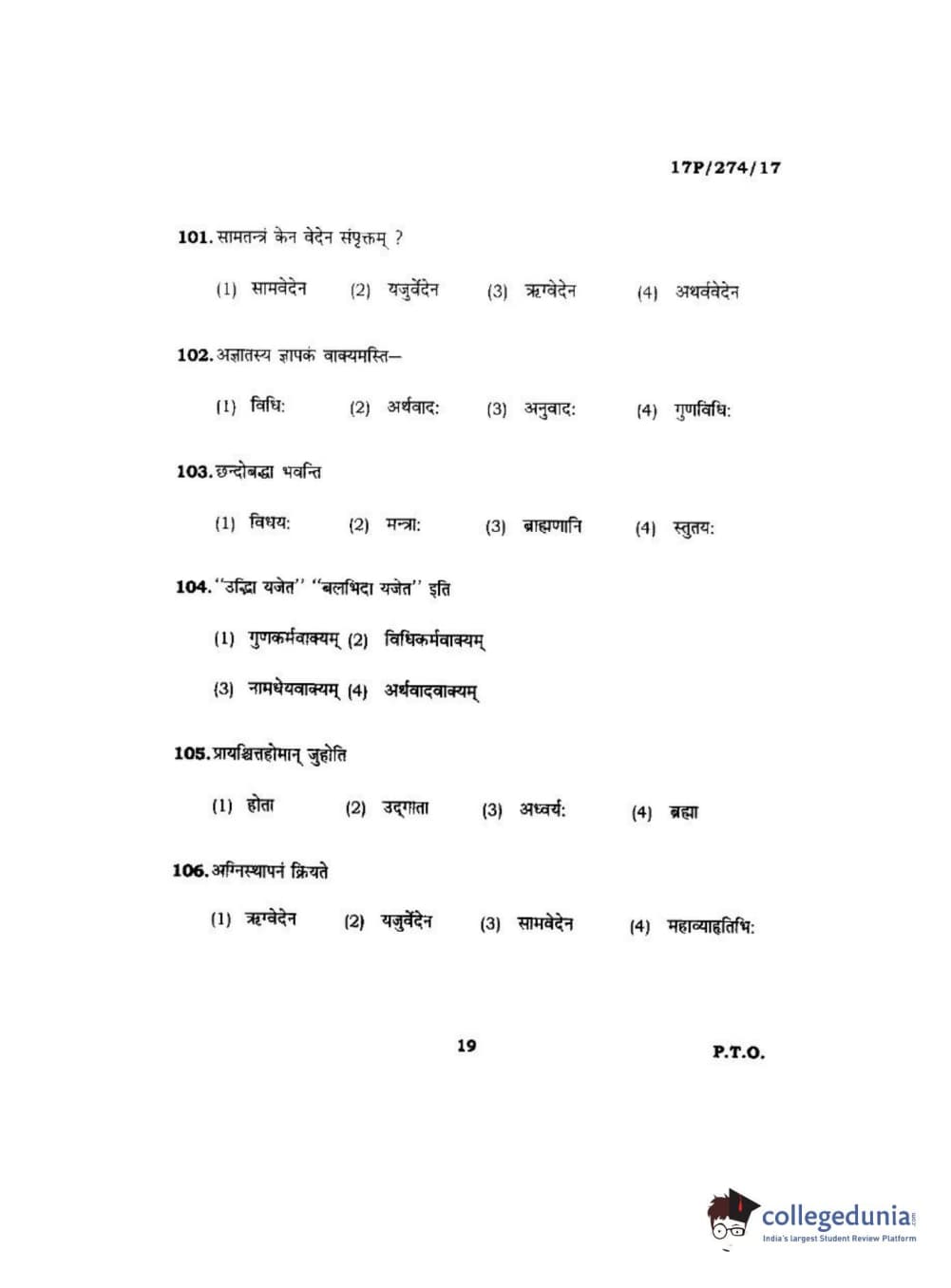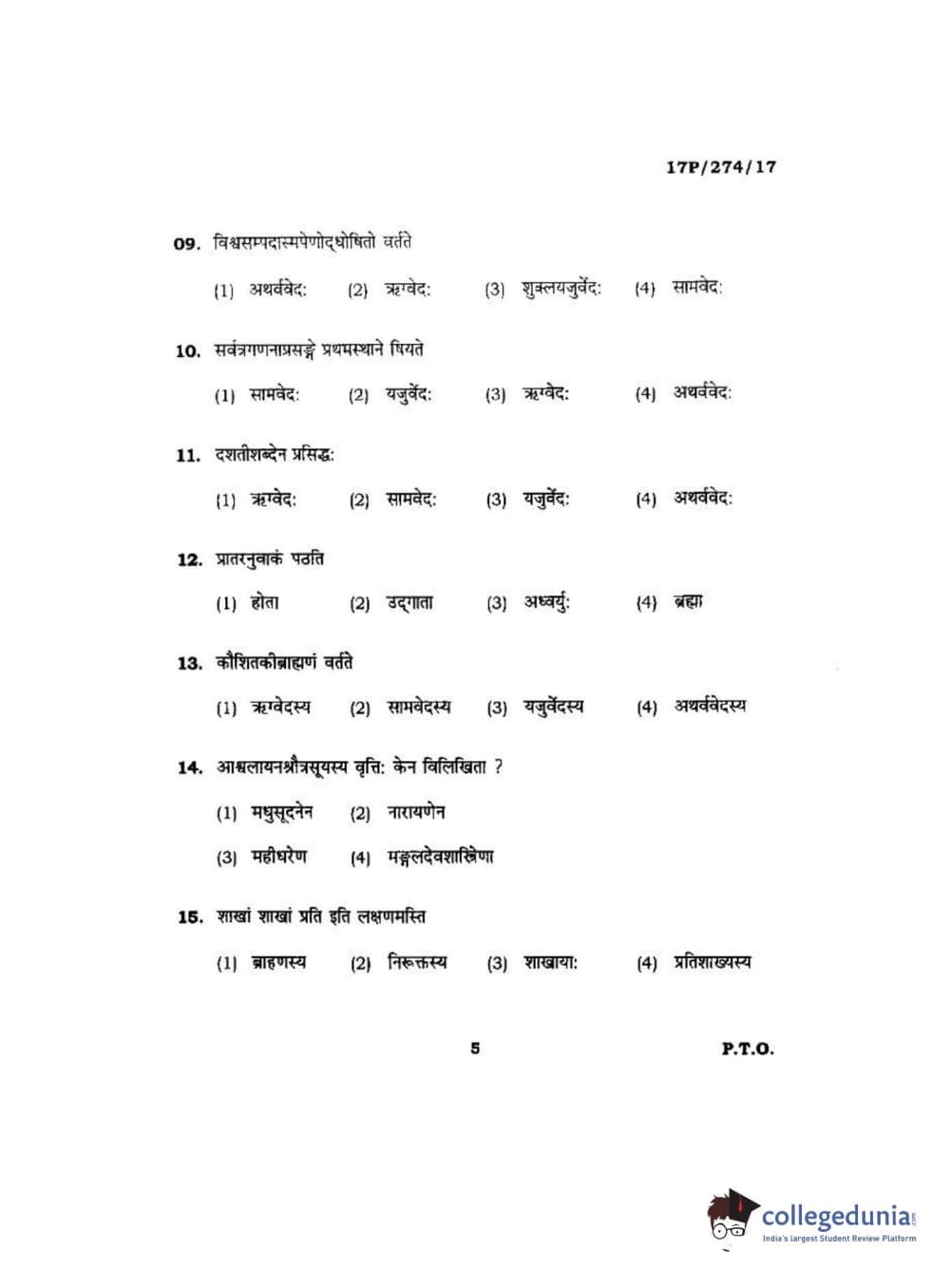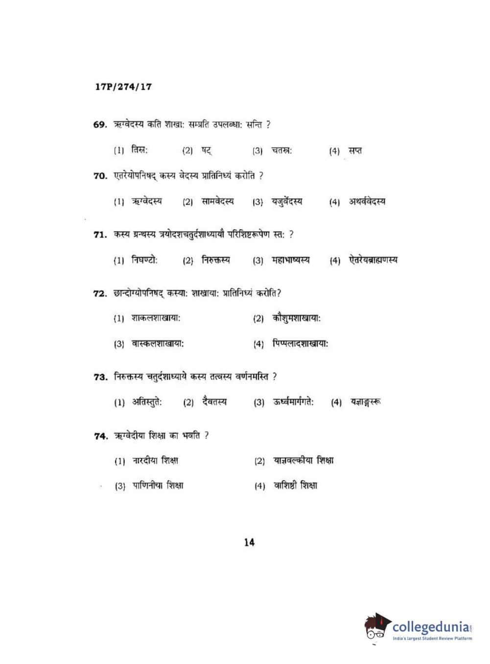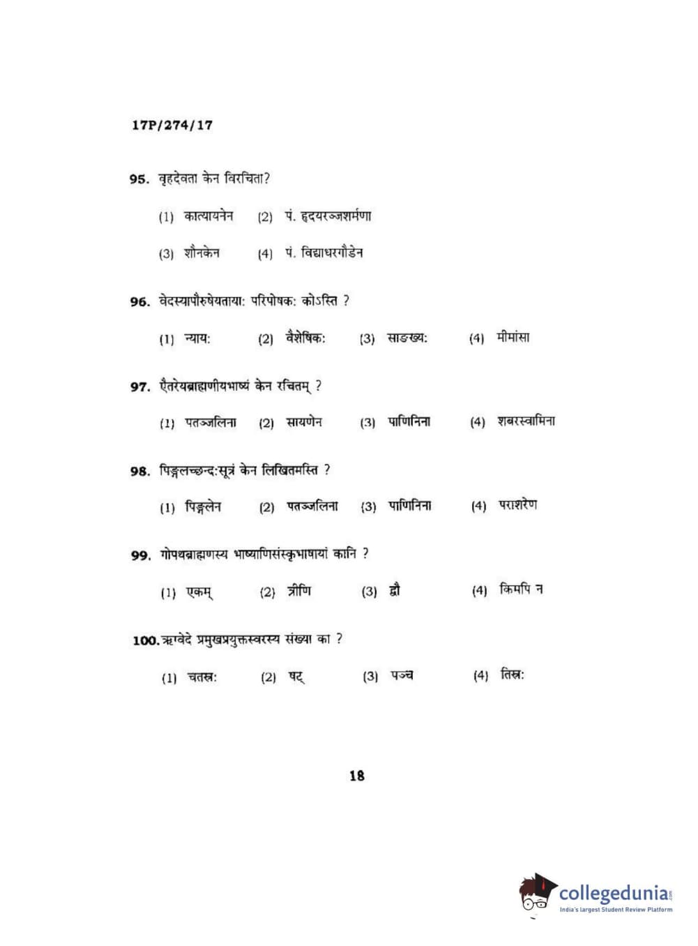 BHU PET 2017 Acharya in Rigveda Question Paper with Answer Key PDFs