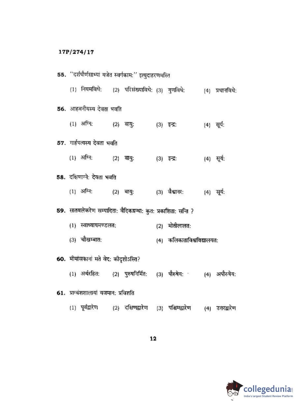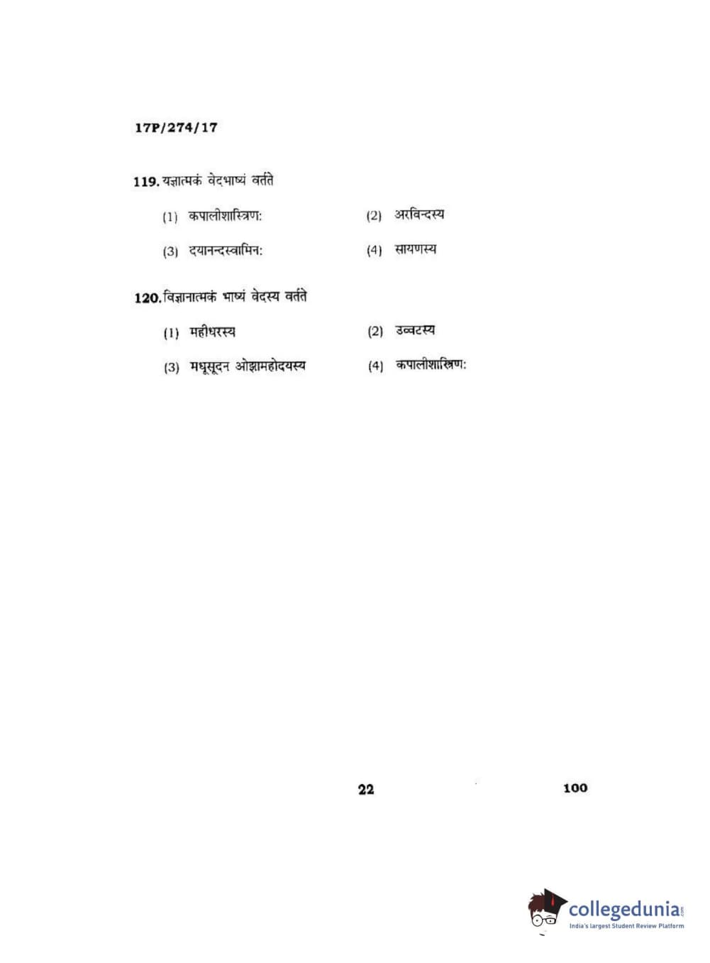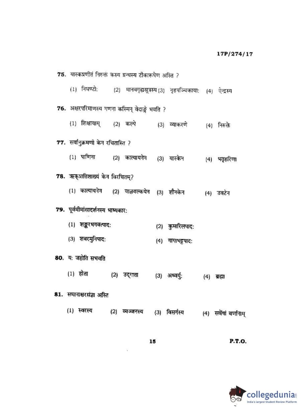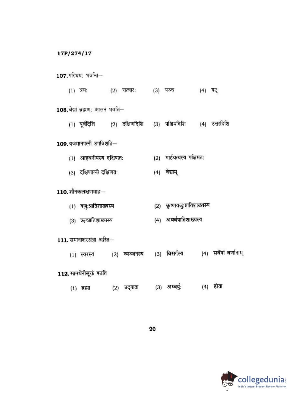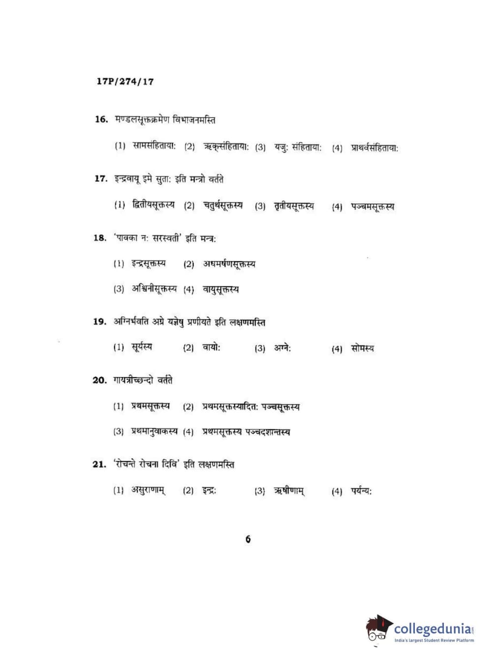 BHU PET 2017 Acharya in Rigveda Question Paper with Answer Key PDFs