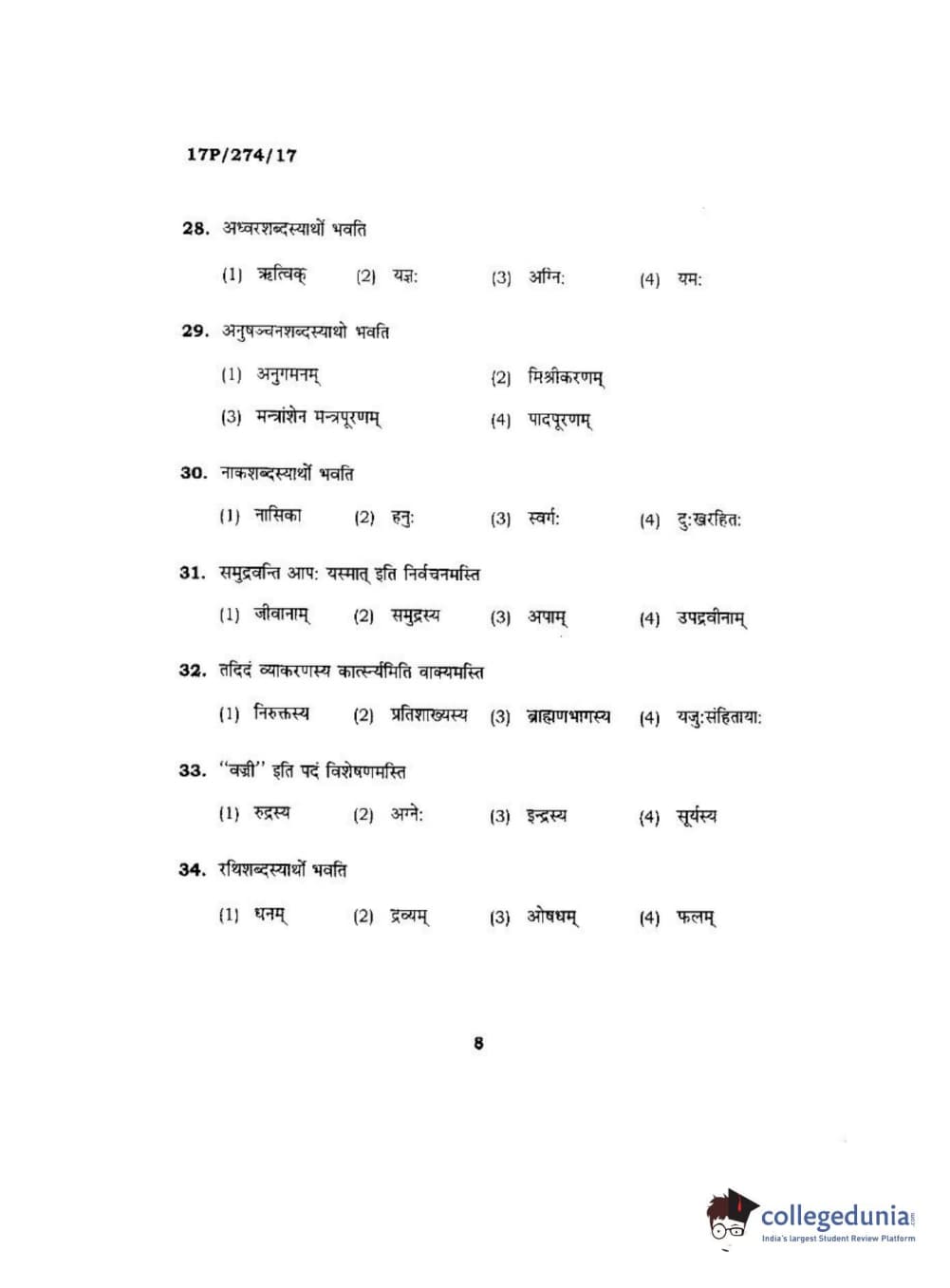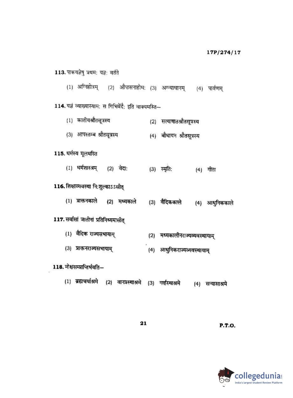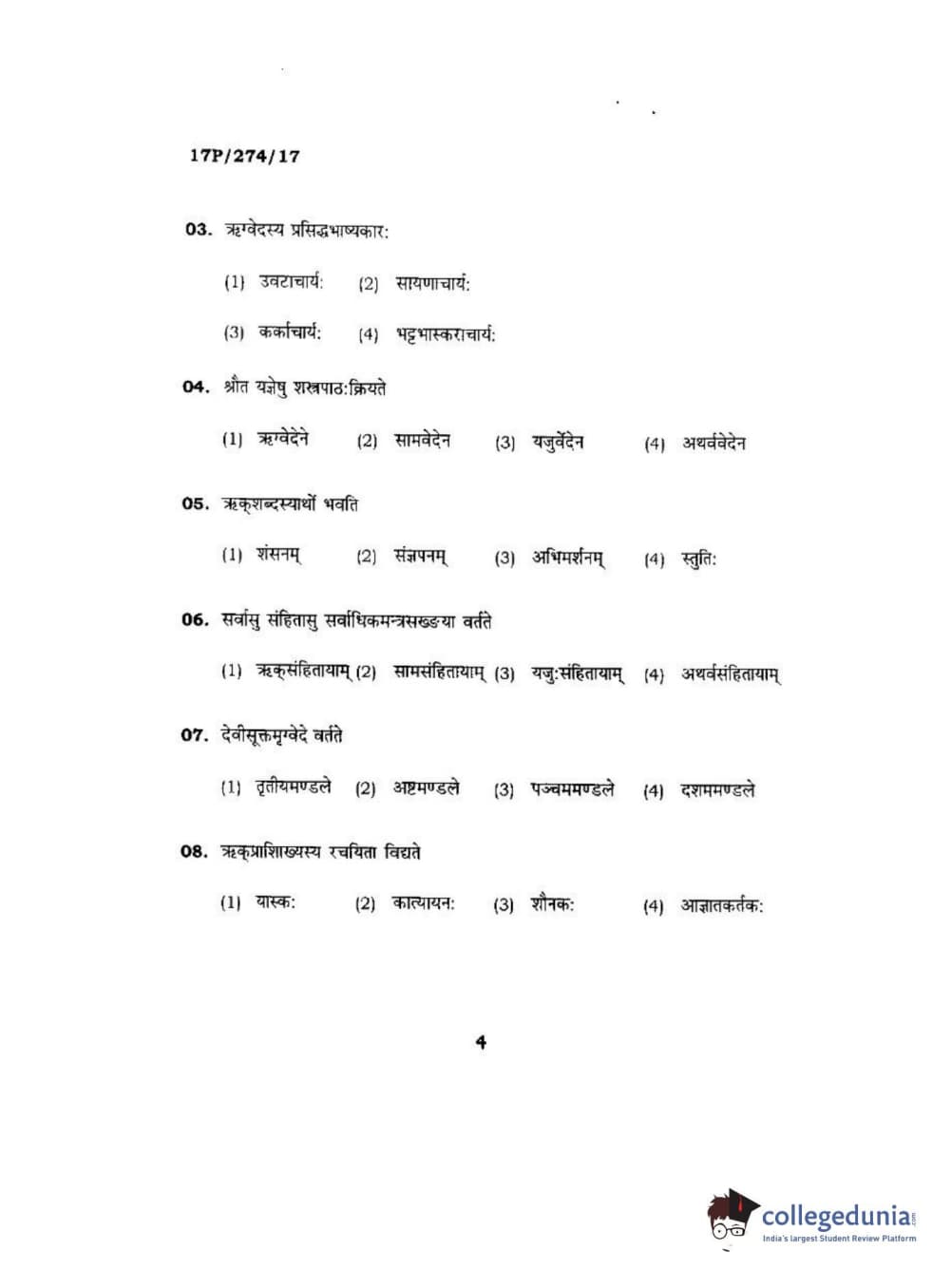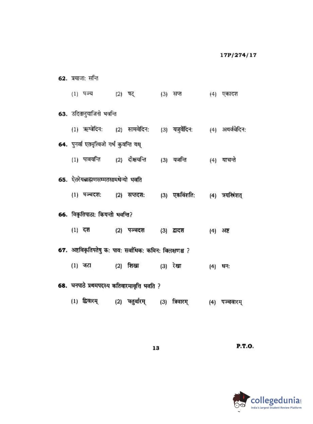 BHU PET 2017 Acharya in Rigveda Question Paper with Answer Key PDFs