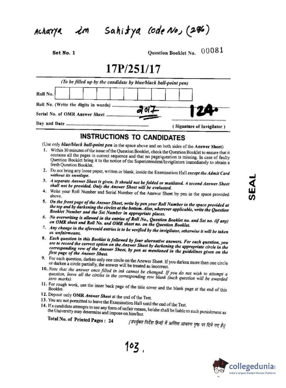 BHU PET 2017 Acharya in Sahitya Question paper with answer key pdf is available for download. The exam was successfully organized by Banaras Hindu University (BHU). The question paper comprised a total of 120 questions.