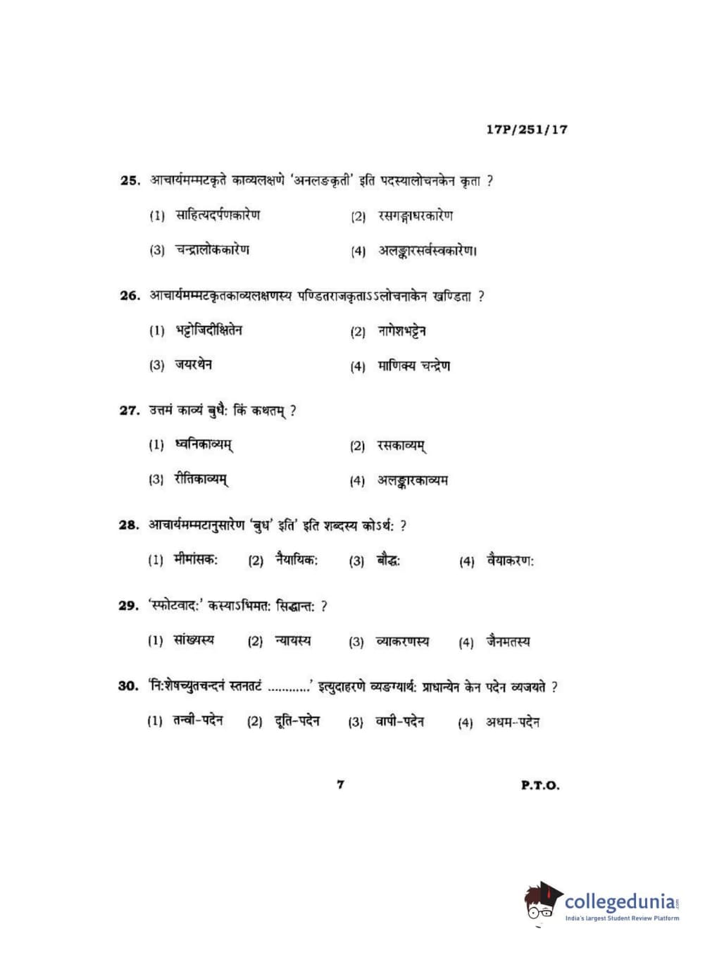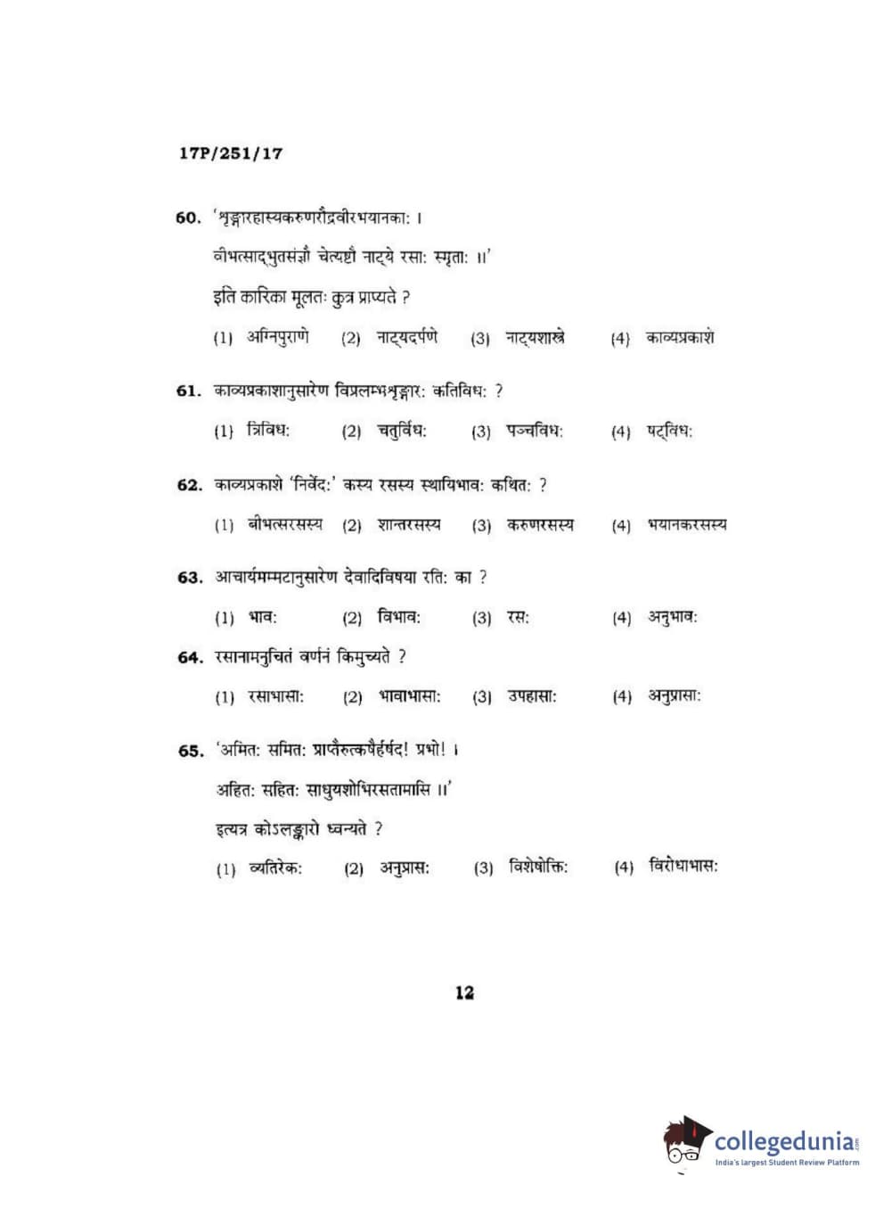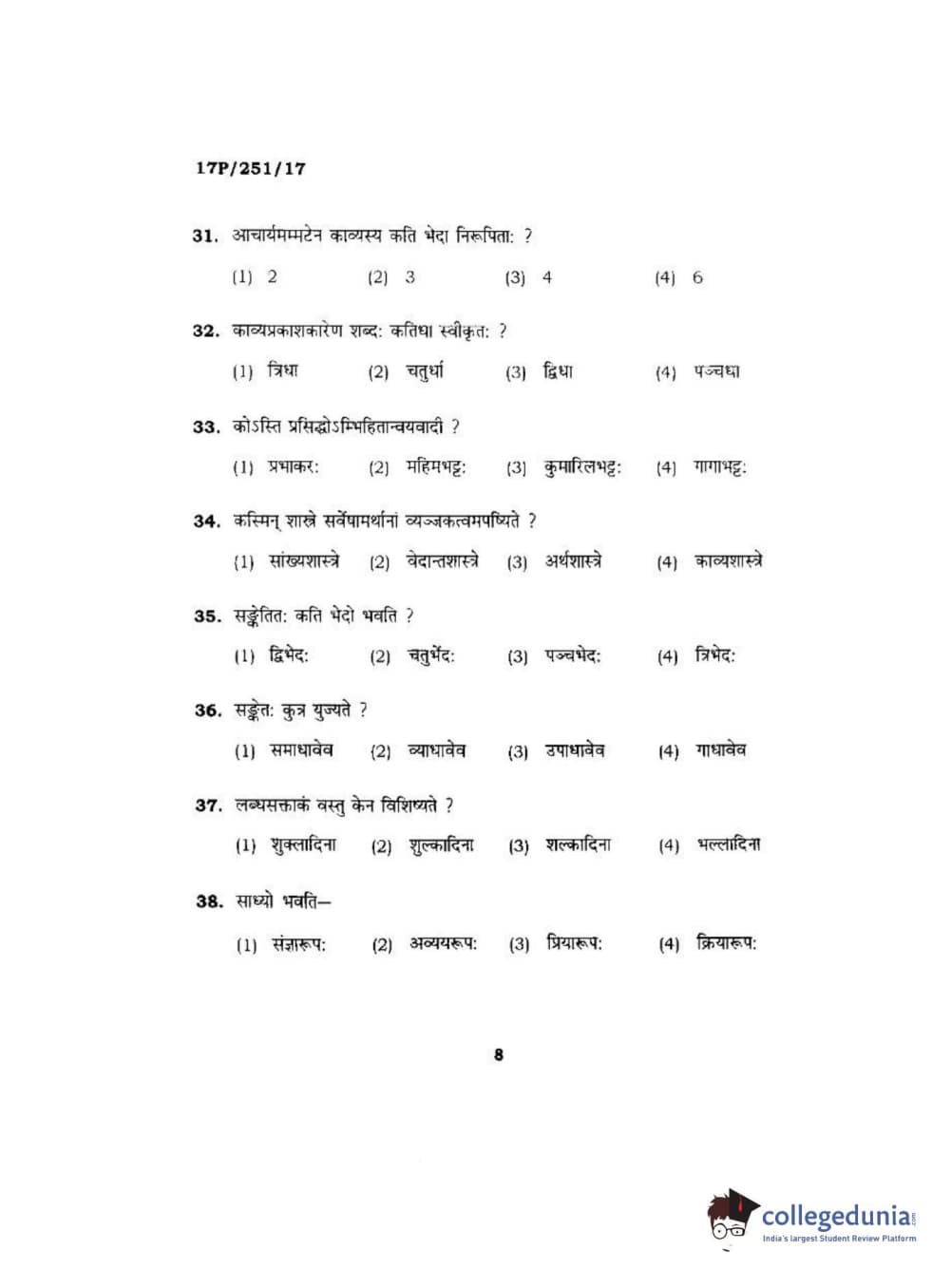 BHU PET 2017 Acharya in Sahitya Question Paper with Answer Key PDFs