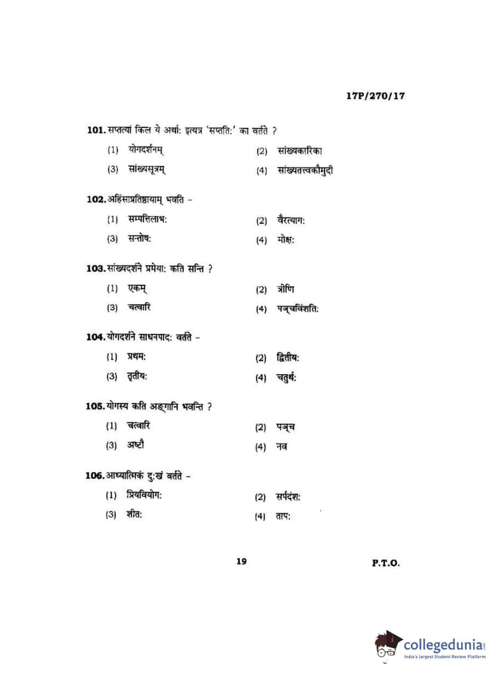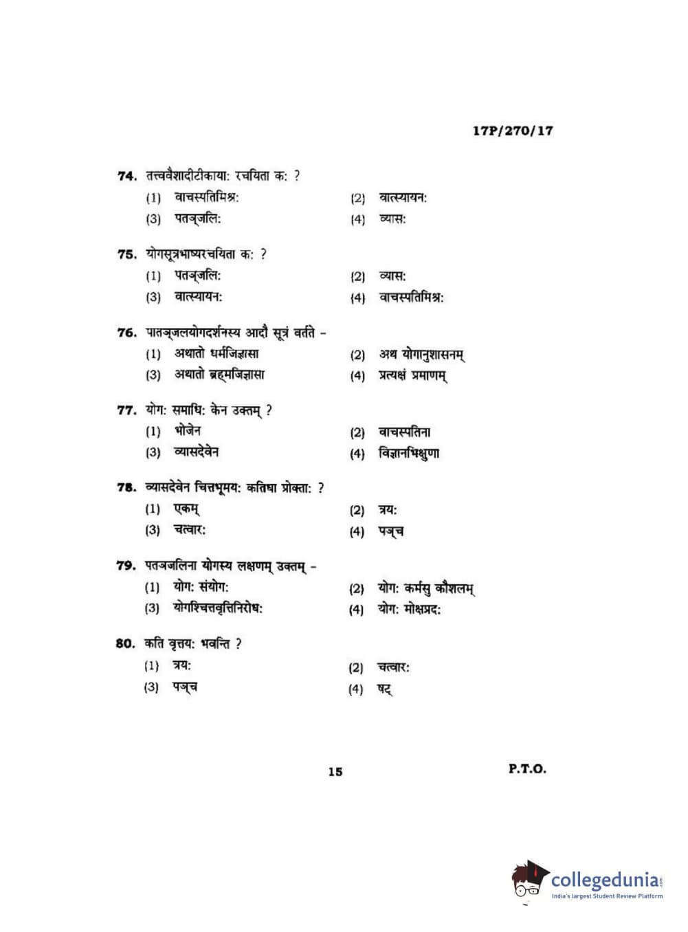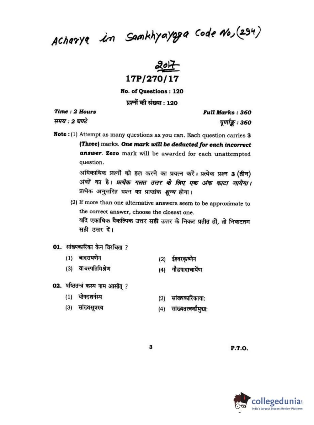 BHU PET 2017 Acharya in Sankhyayoga Question paper with answer key pdf is available for download. The exam was successfully organized by Banaras Hindu University (BHU). The question paper comprised a total of 120 questions.