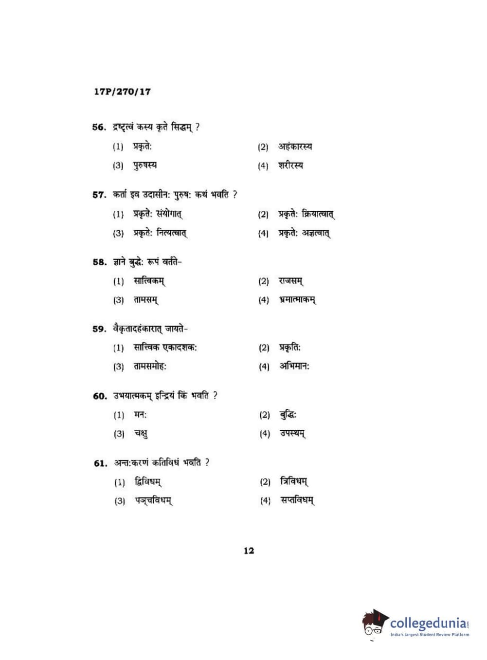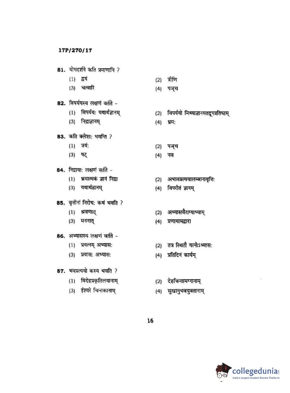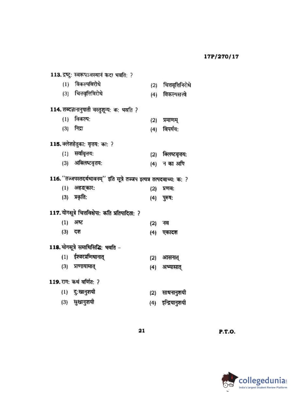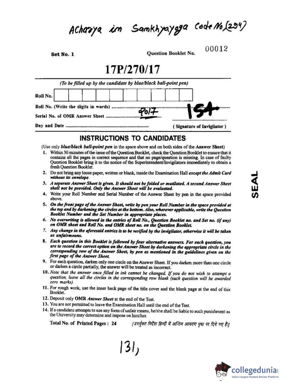 BHU PET 2017 Acharya in Sankhyayoga Question paper with answer key pdf is available for download. The exam was successfully organized by Banaras Hindu University (BHU). The question paper comprised a total of 120 questions.