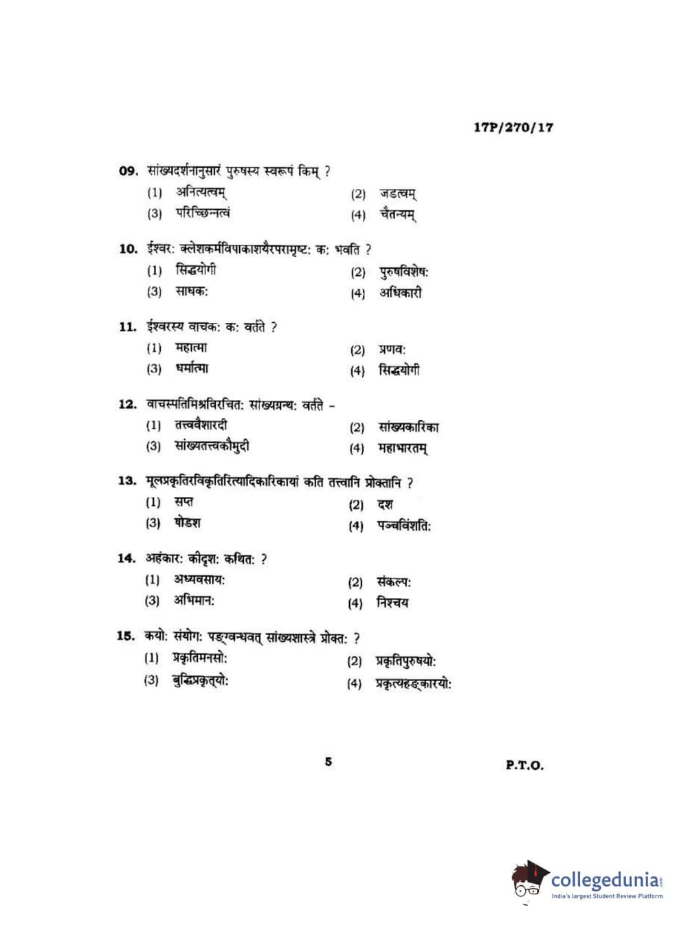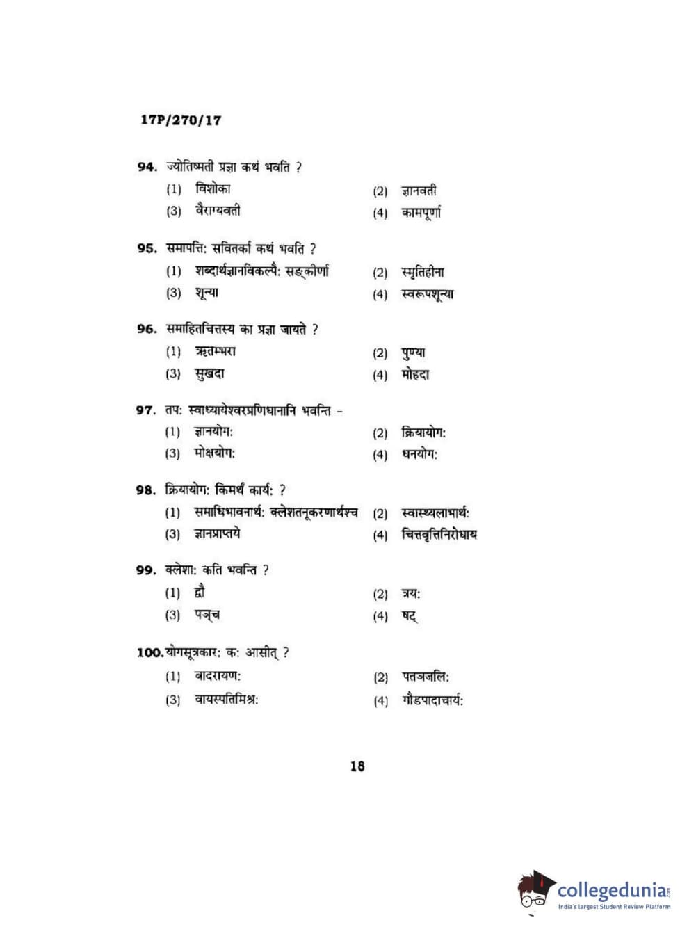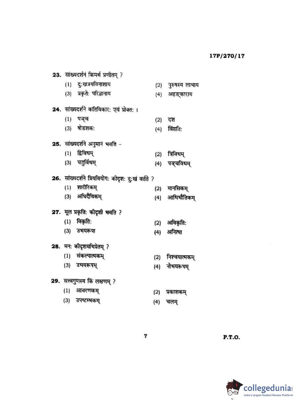 BHU PET 2017 Acharya in Sankhyayoga Question Paper with Answer Key PDFs