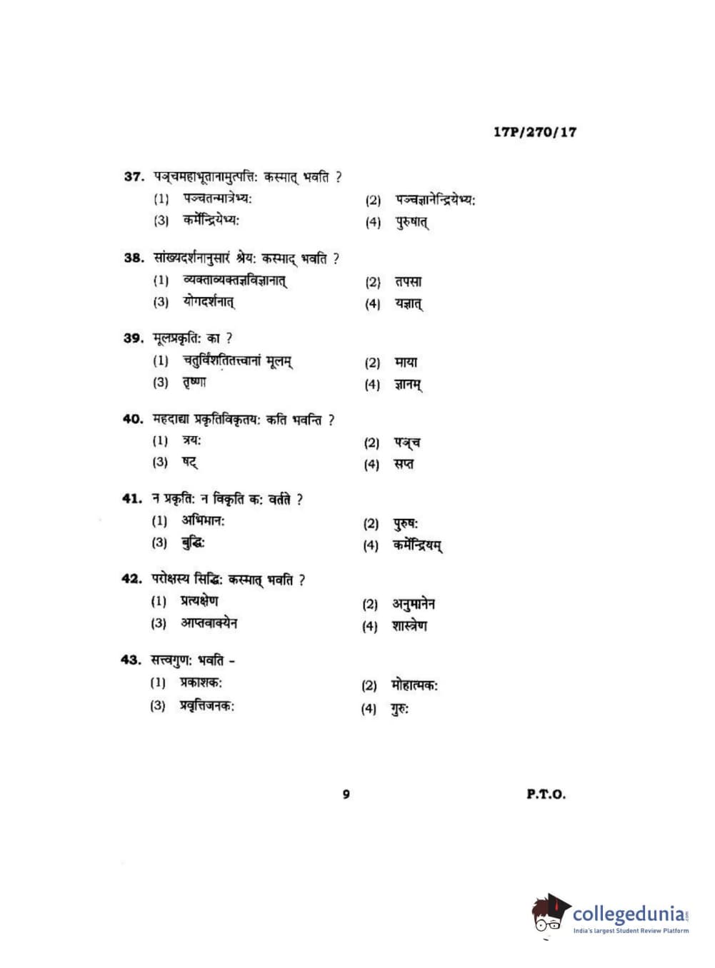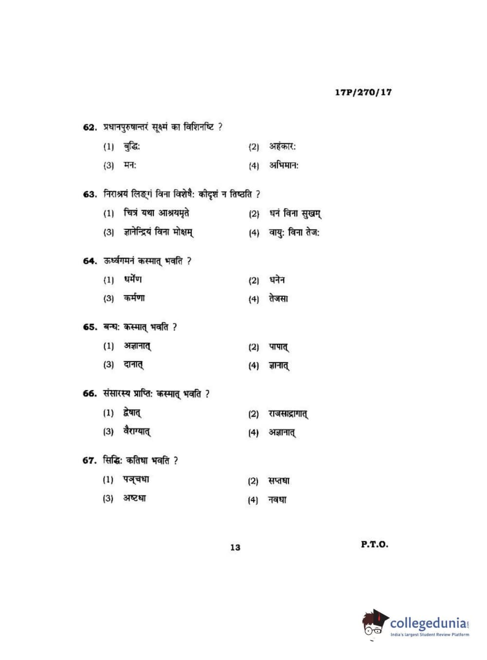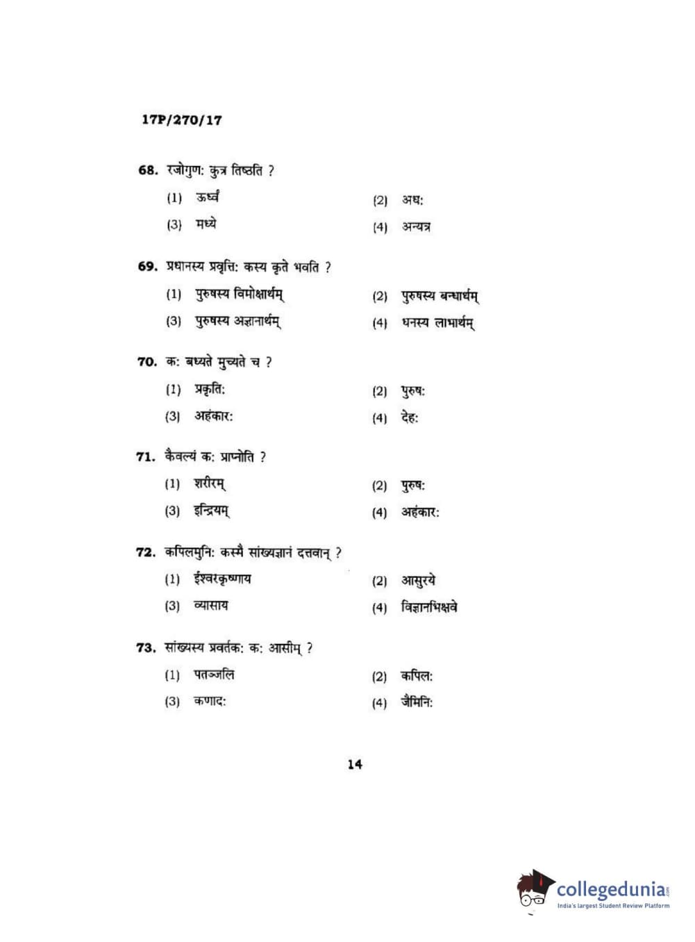 BHU PET 2017 Acharya in Sankhyayoga Question Paper with Answer Key PDFs