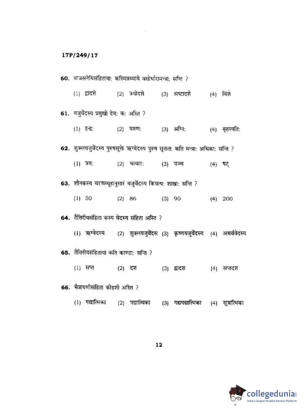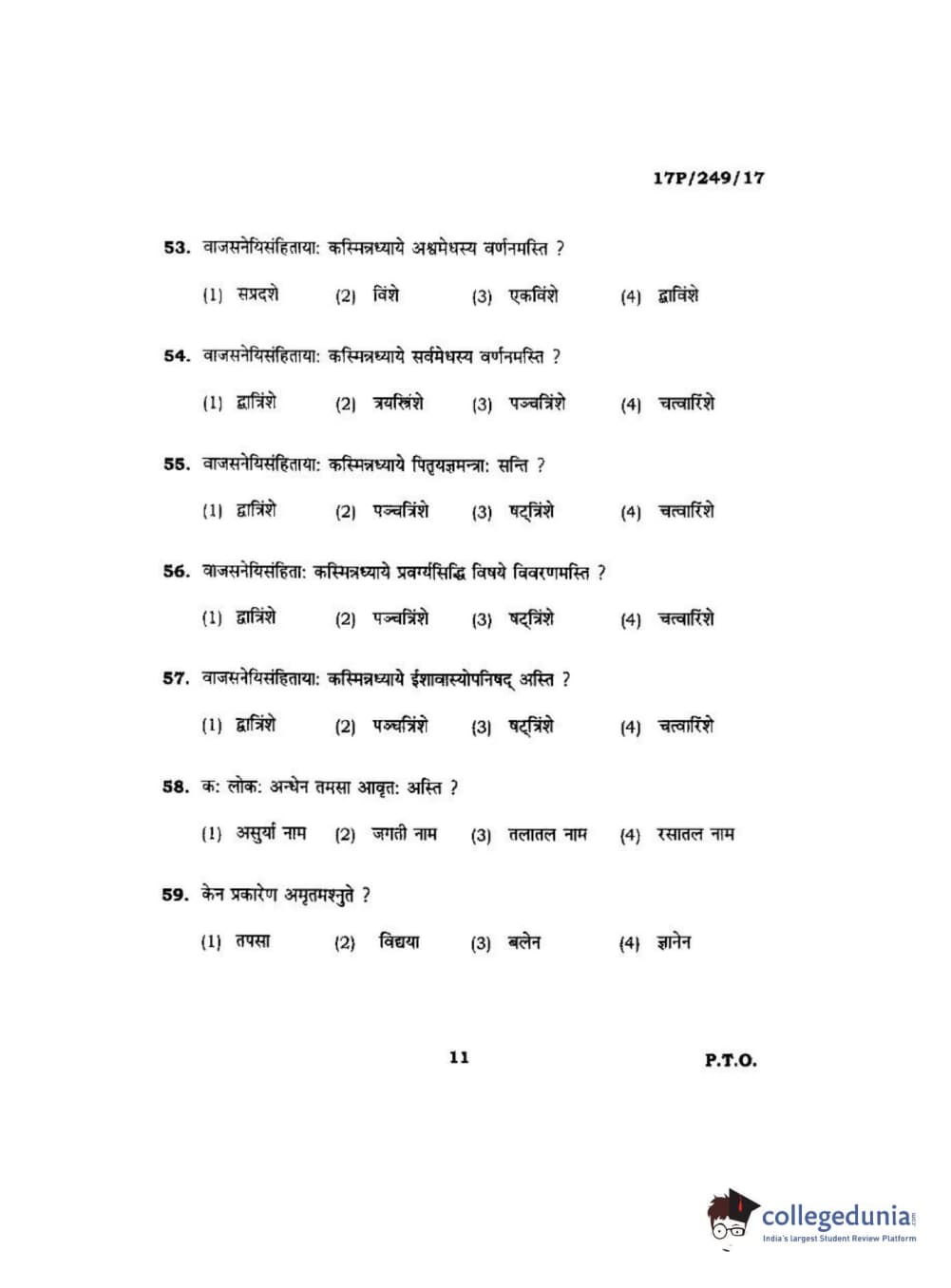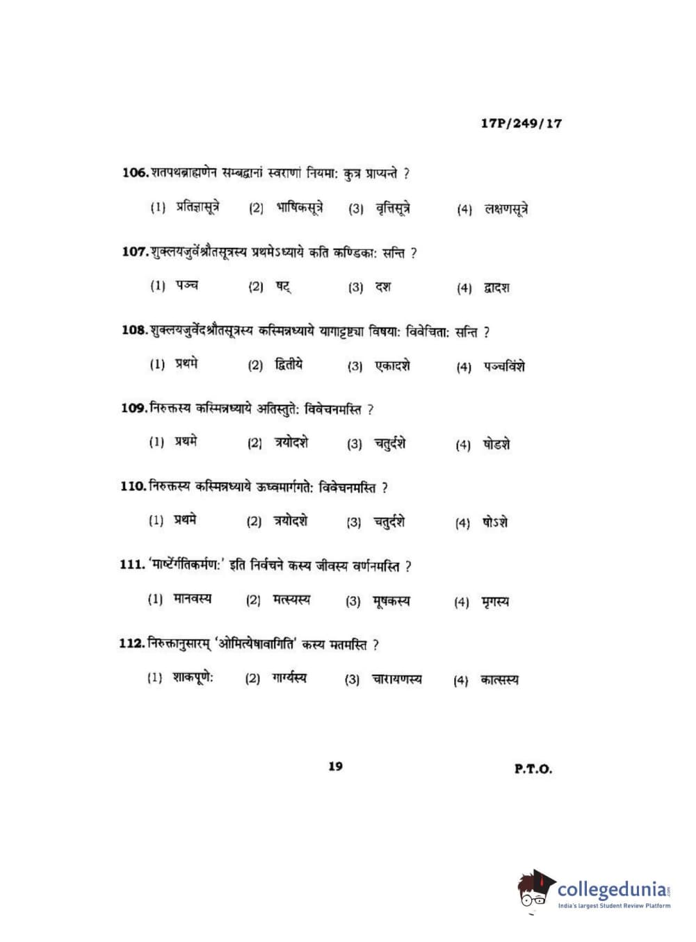 BHU PET 2017 Acharya in Shukla Yajurveda Question paper with answer key pdf is available for download. The exam was successfully organized by Banaras Hindu University (BHU). The question paper comprised a total of 120 questions.