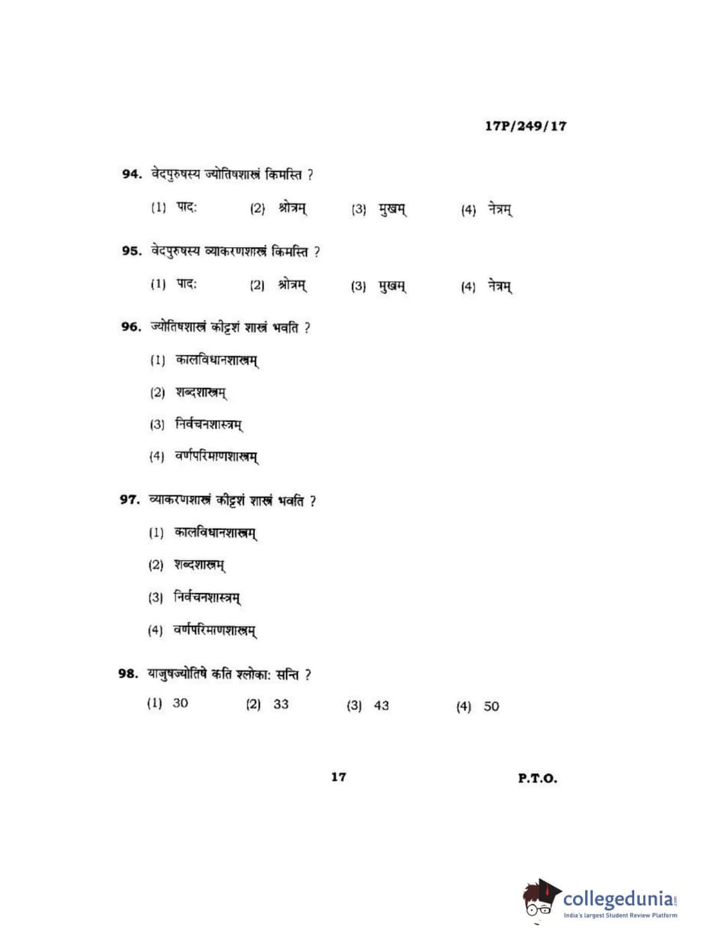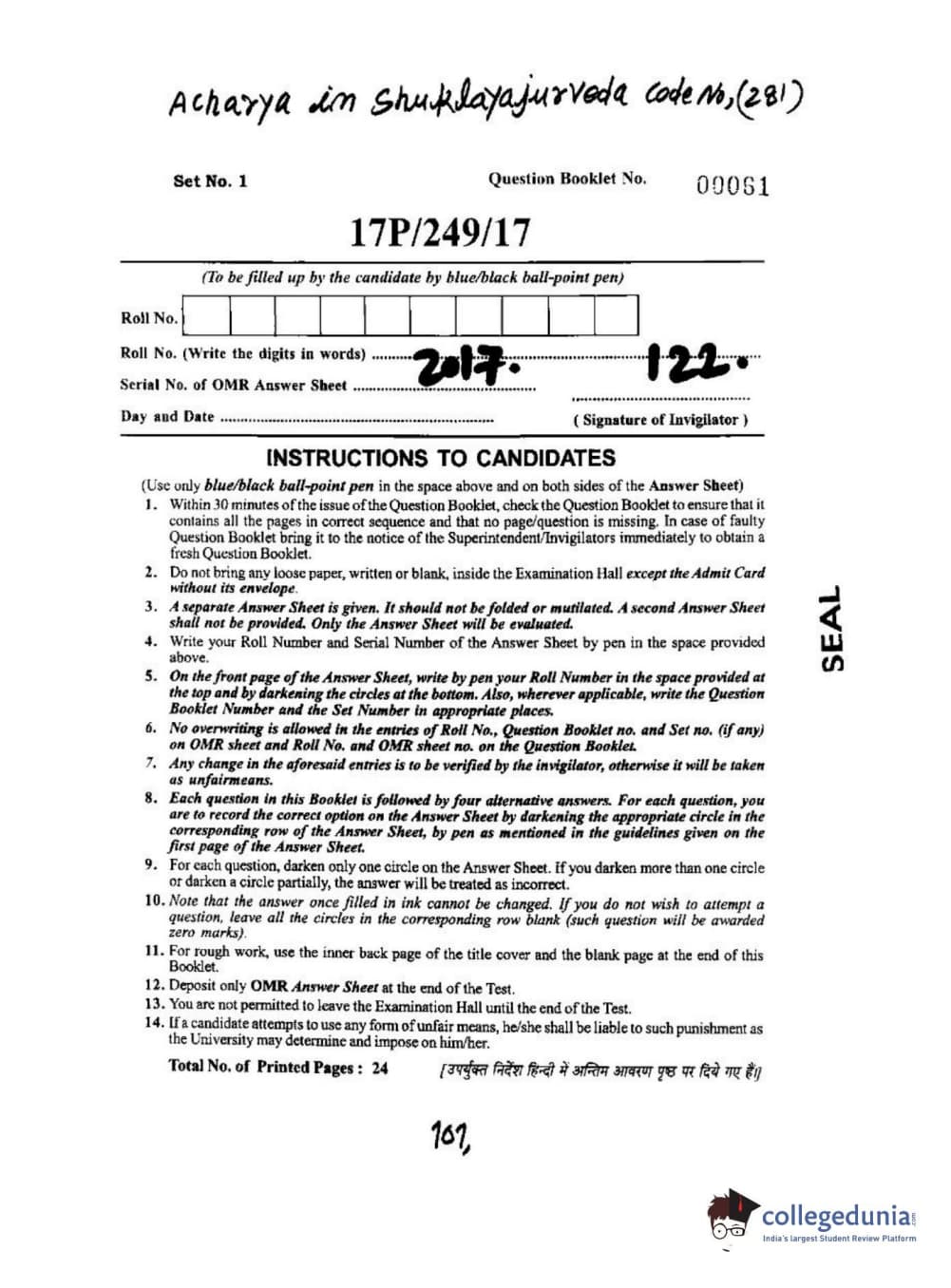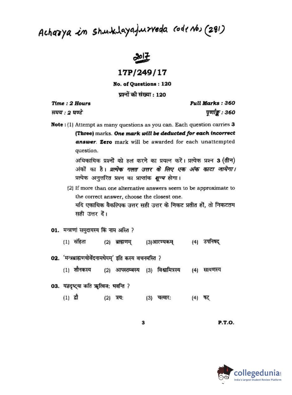BHU PET 2017 Acharya in Shukla Yajurveda Question paper with answer key pdf is available for download. The exam was successfully organized by Banaras Hindu University (BHU). The question paper comprised a total of 120 questions.