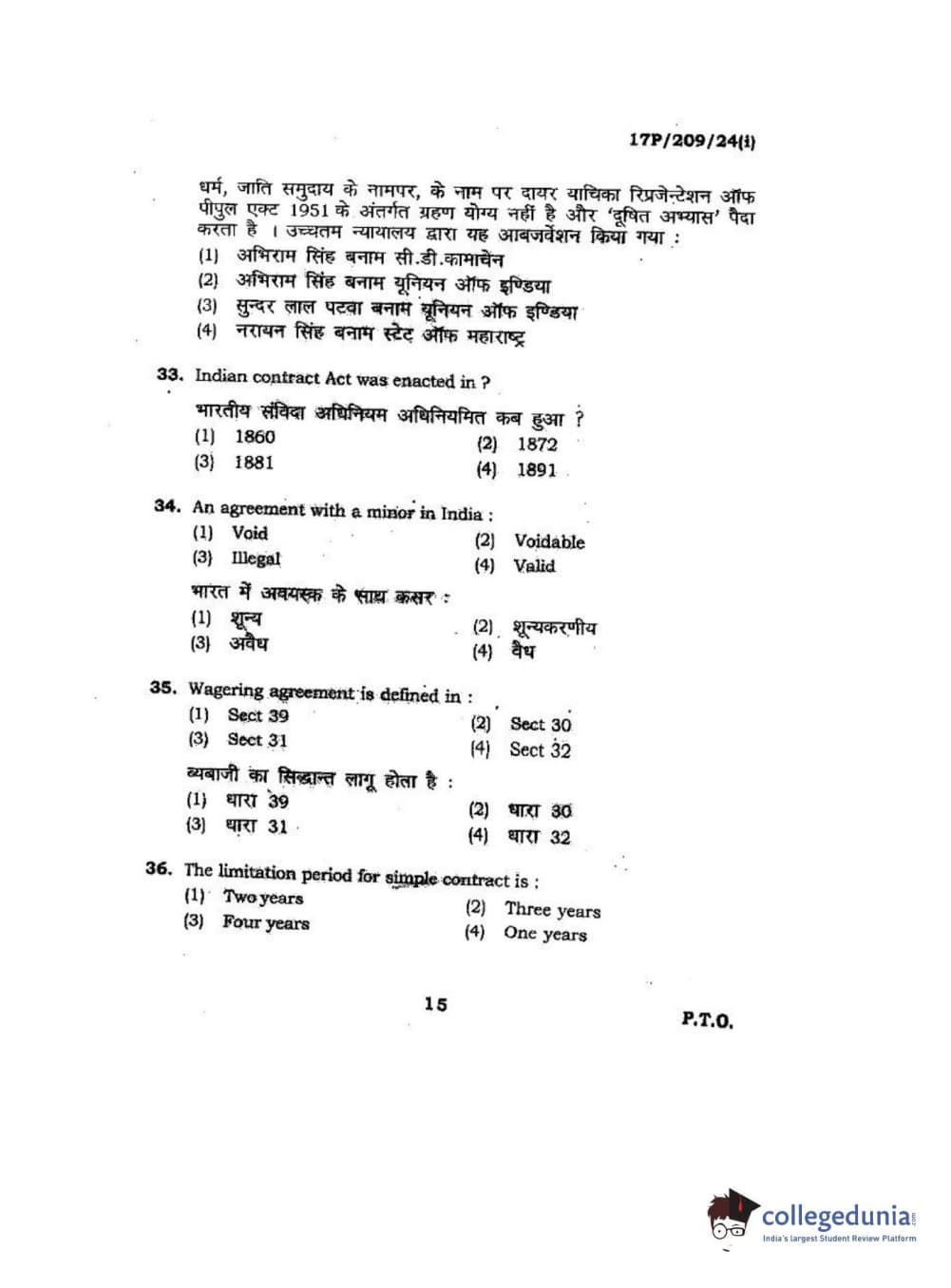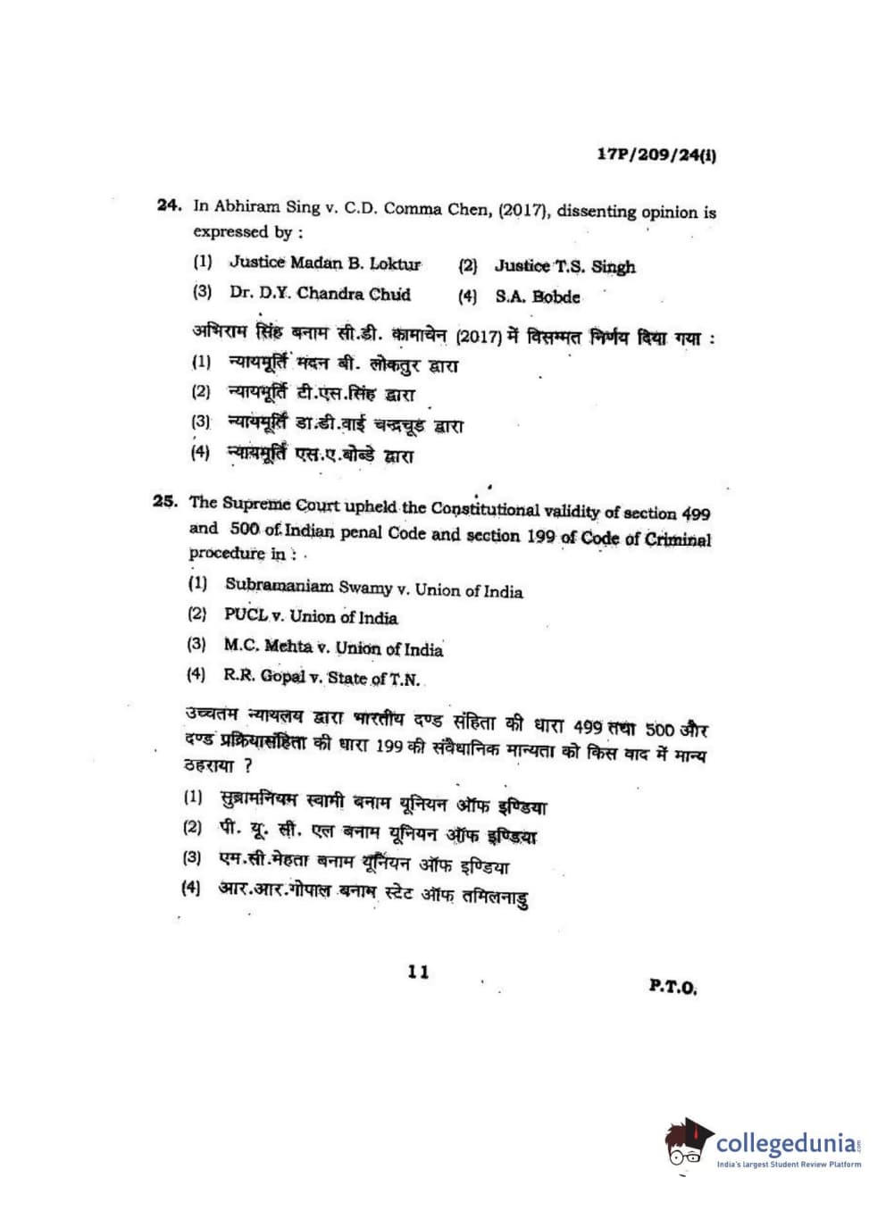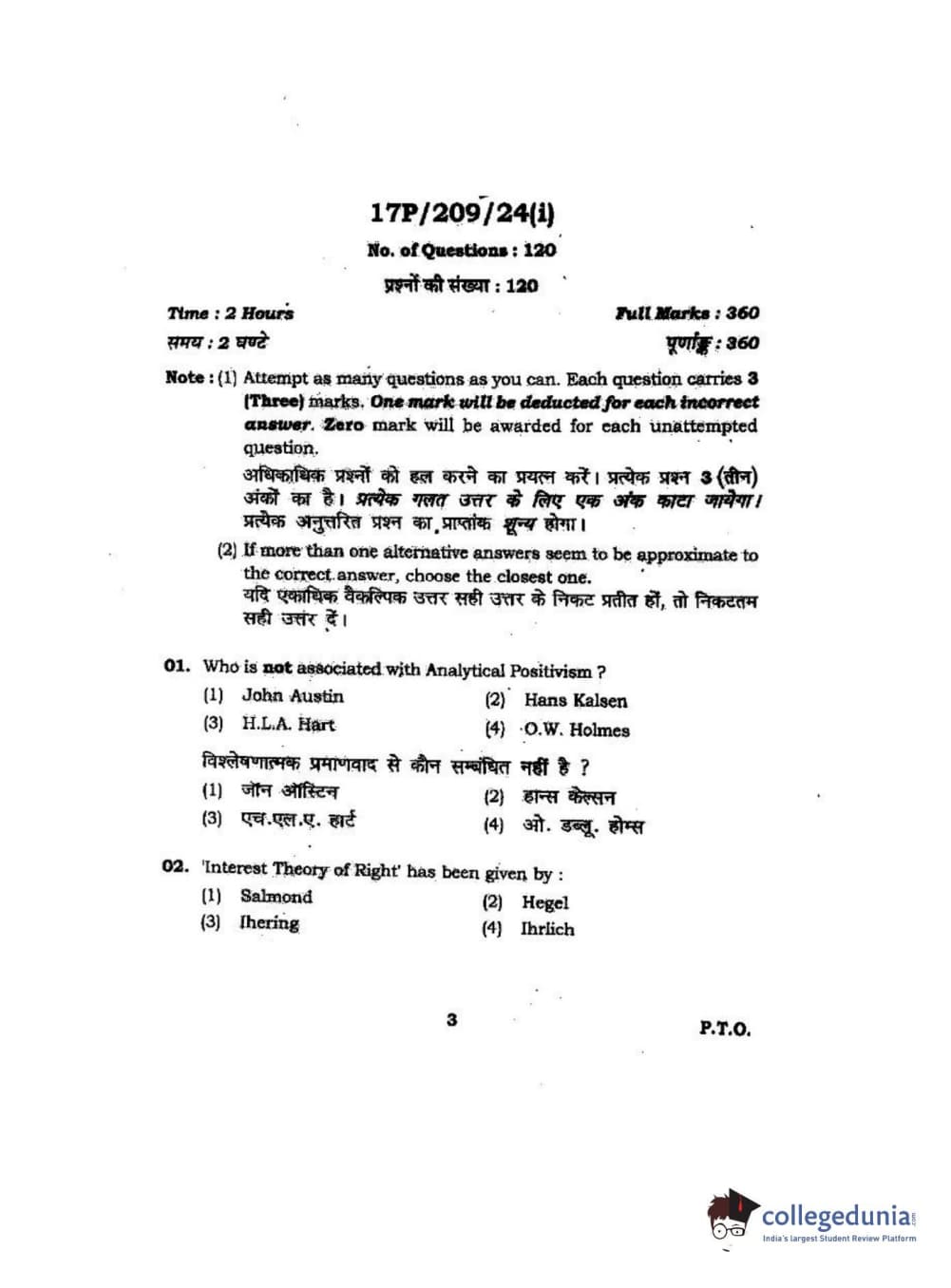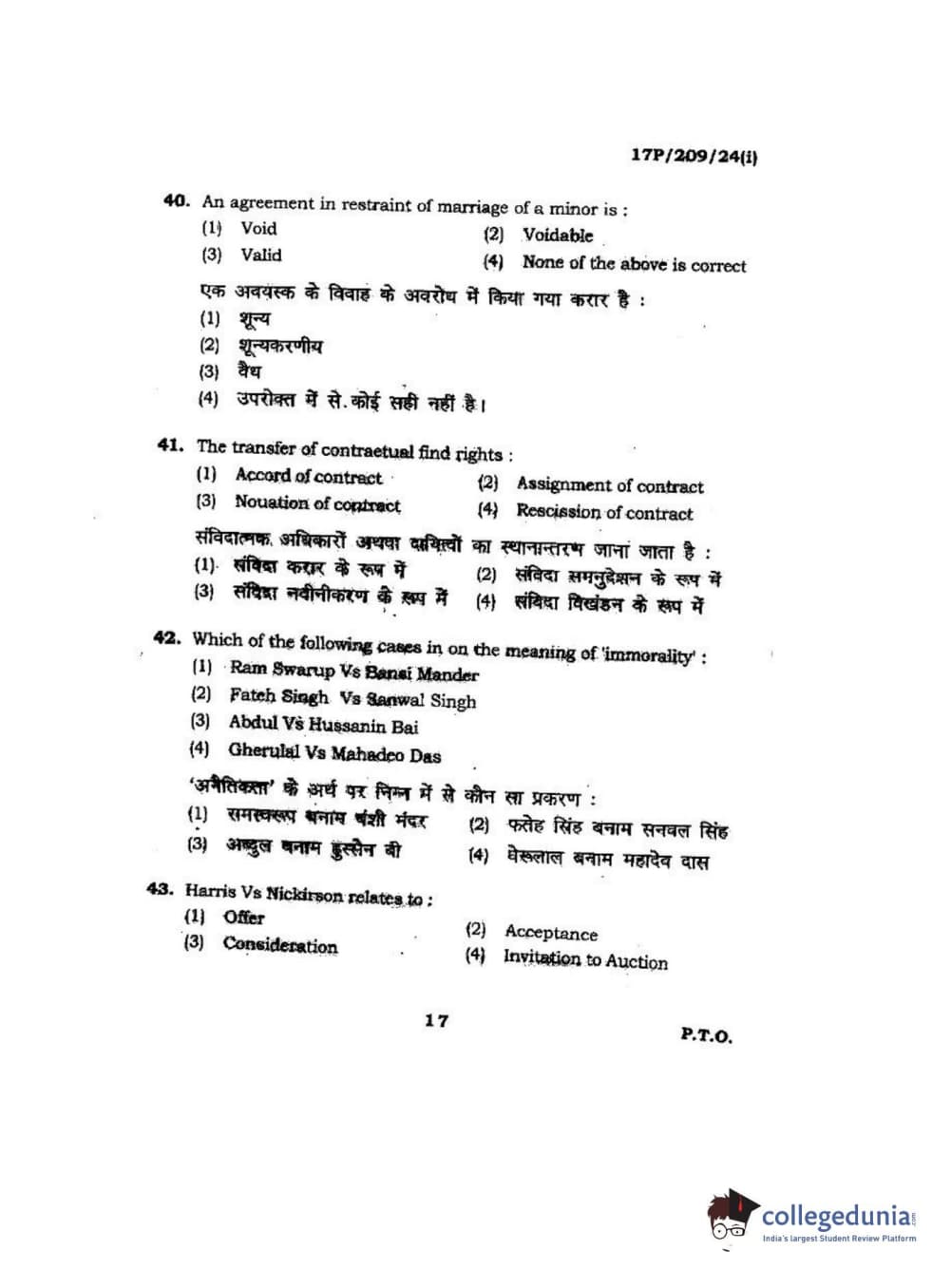 BHU PET 2017 LLM Question Paper with Answer Key PDFs