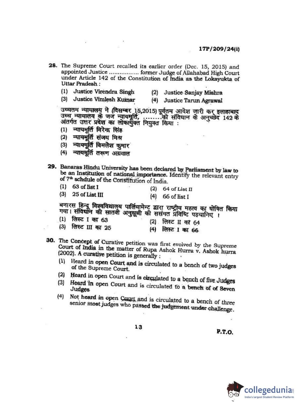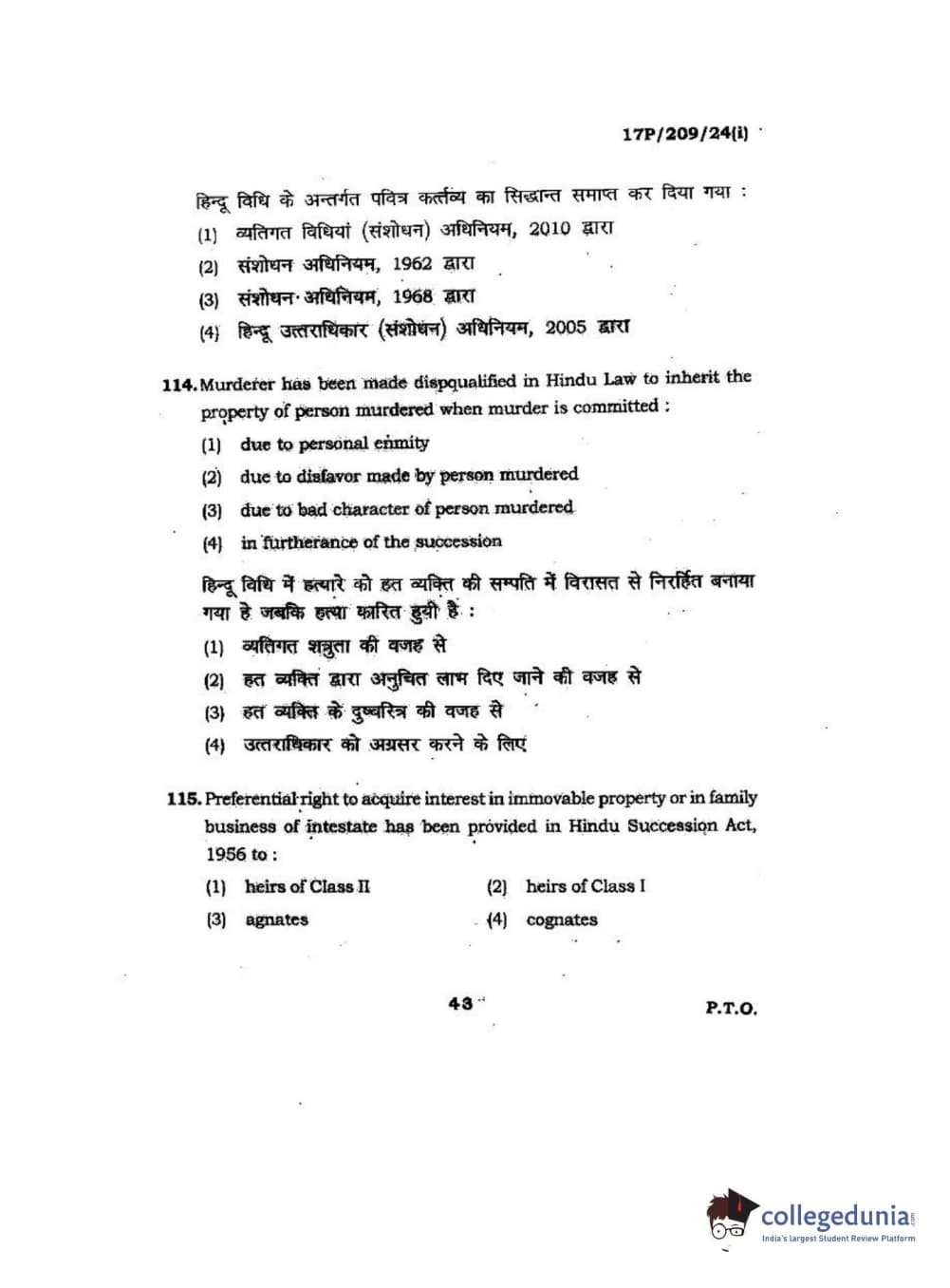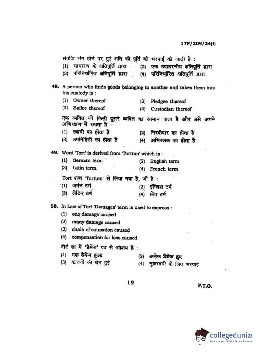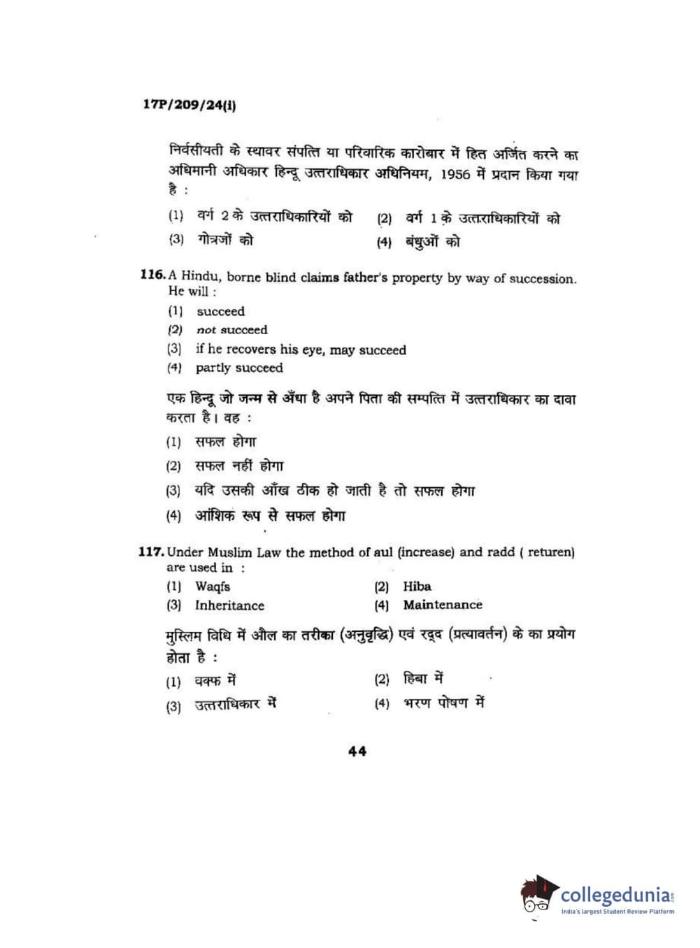 BHU PET 2017 LLM Question Paper with Answer Key PDFs