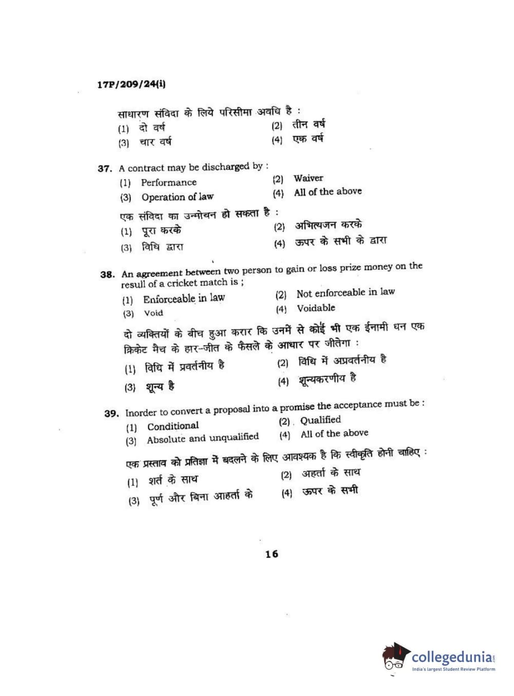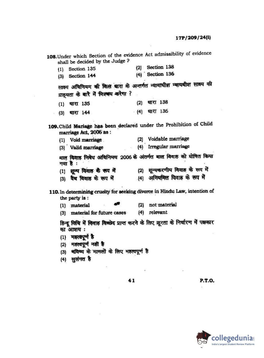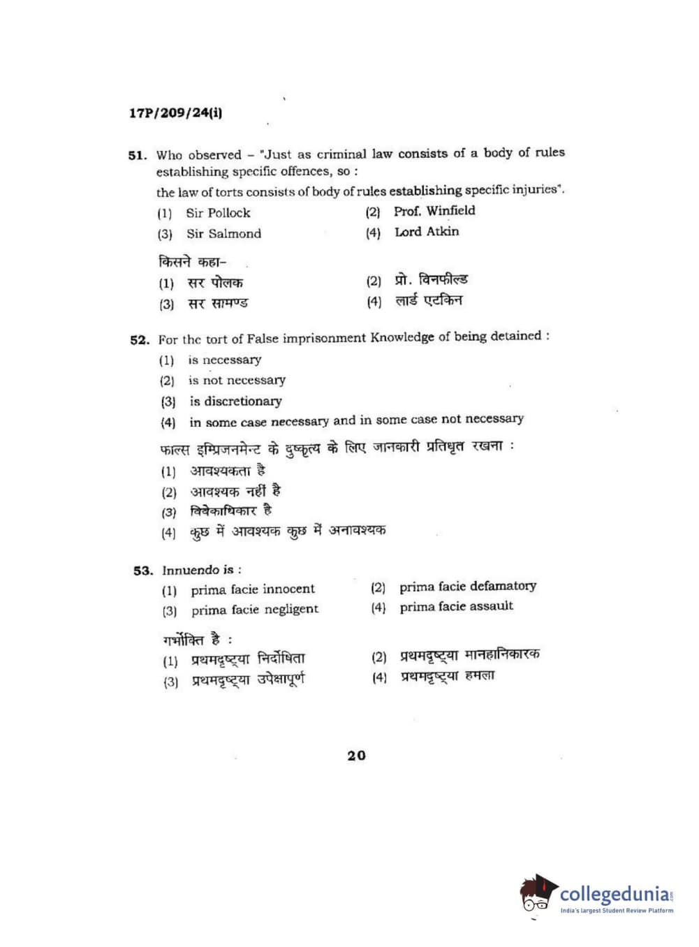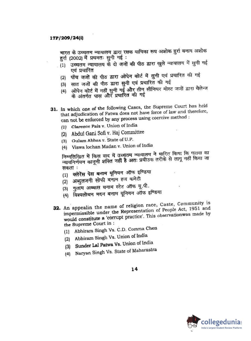 BHU PET 2017 LLM Question Paper with Answer Key PDFs