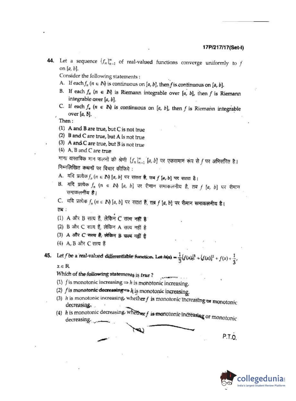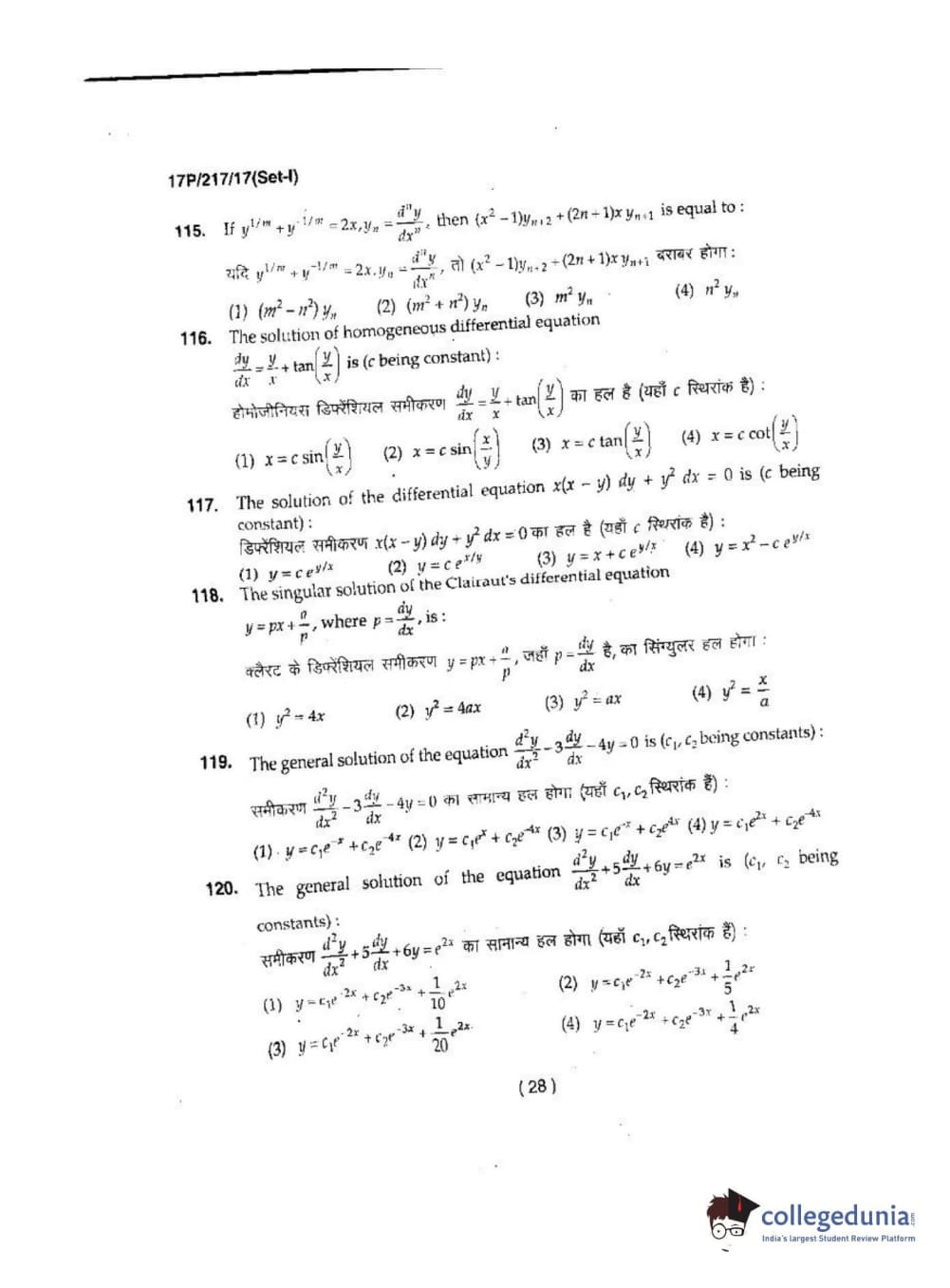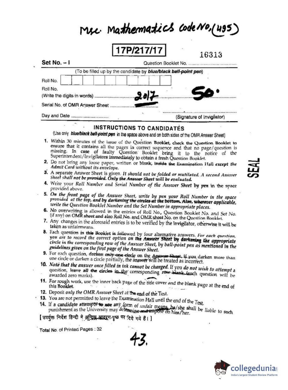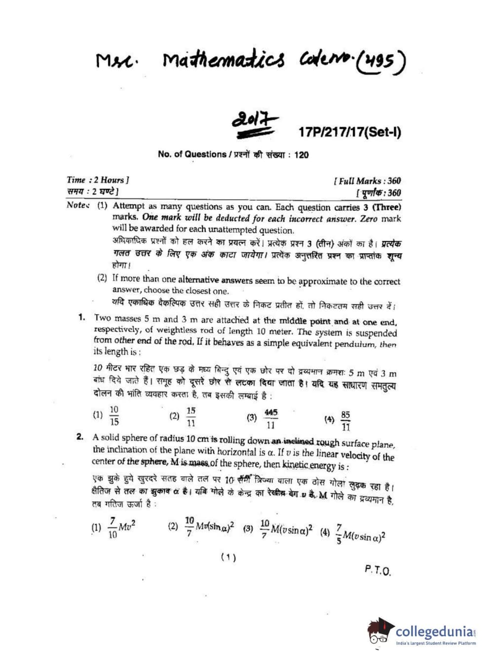 BHU PET 2017 M.A & M.SC Mathematics Question paper with answer key pdf is available for download. The exam was successfully organized by Banaras Hindu University (BHU). The question paper comprised a total of 120 questions.