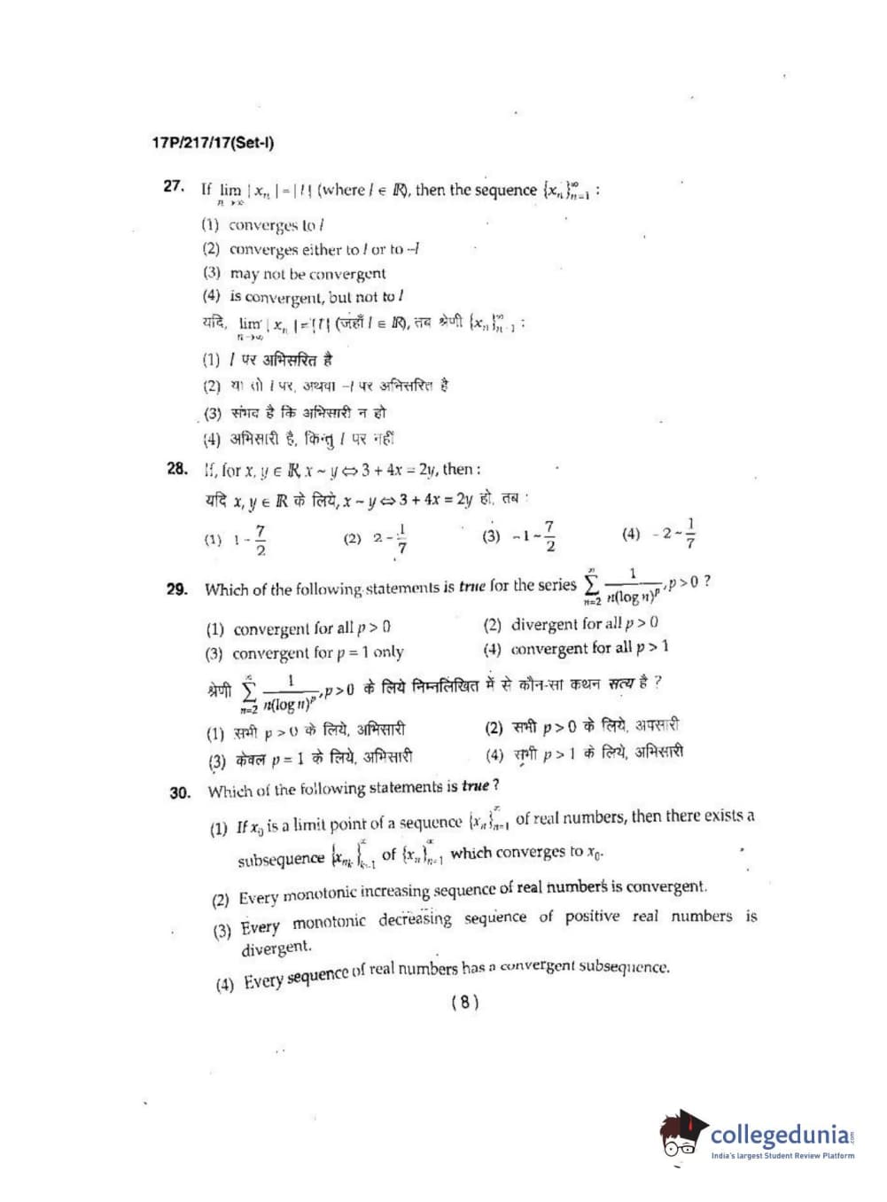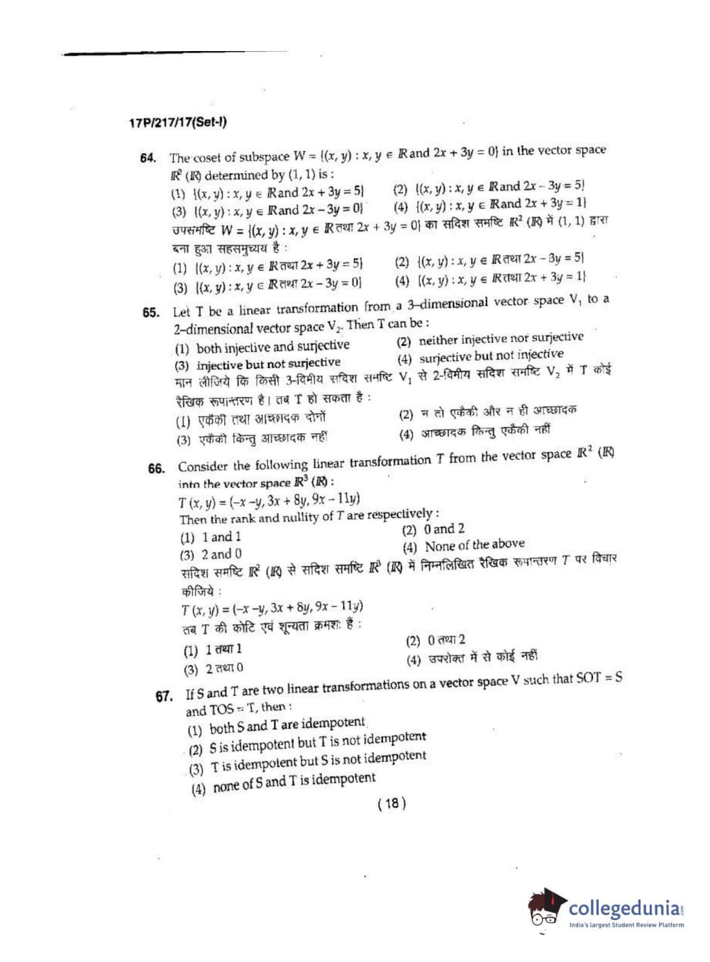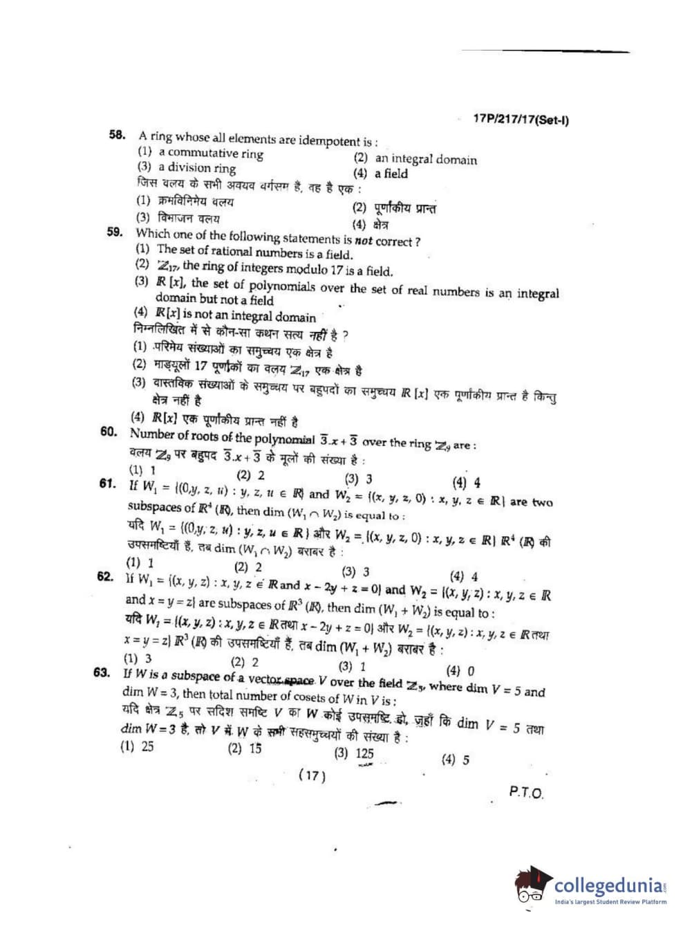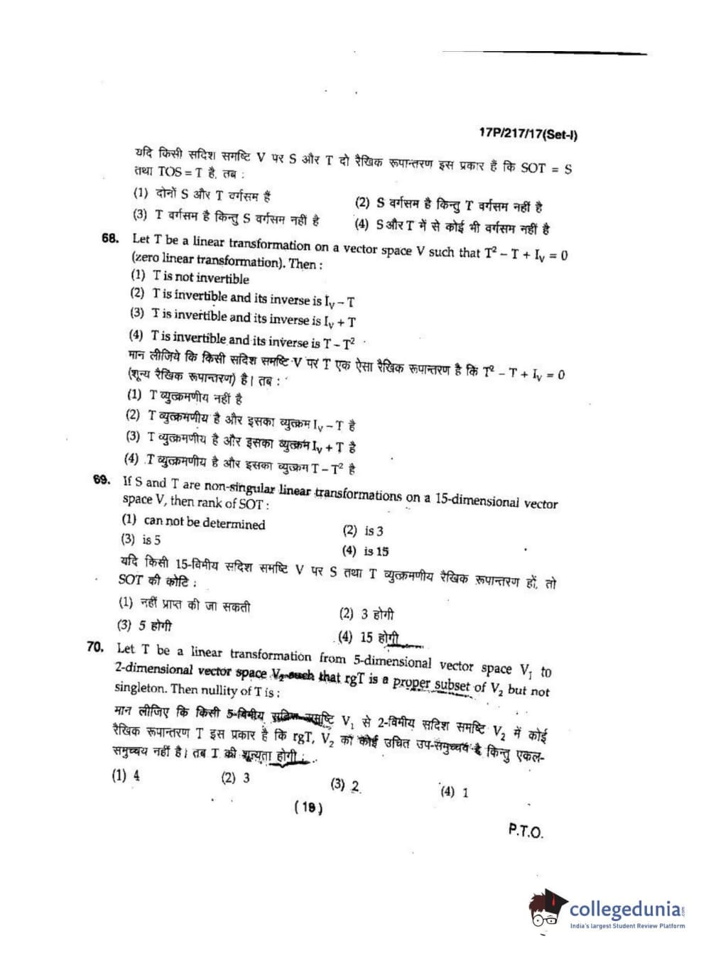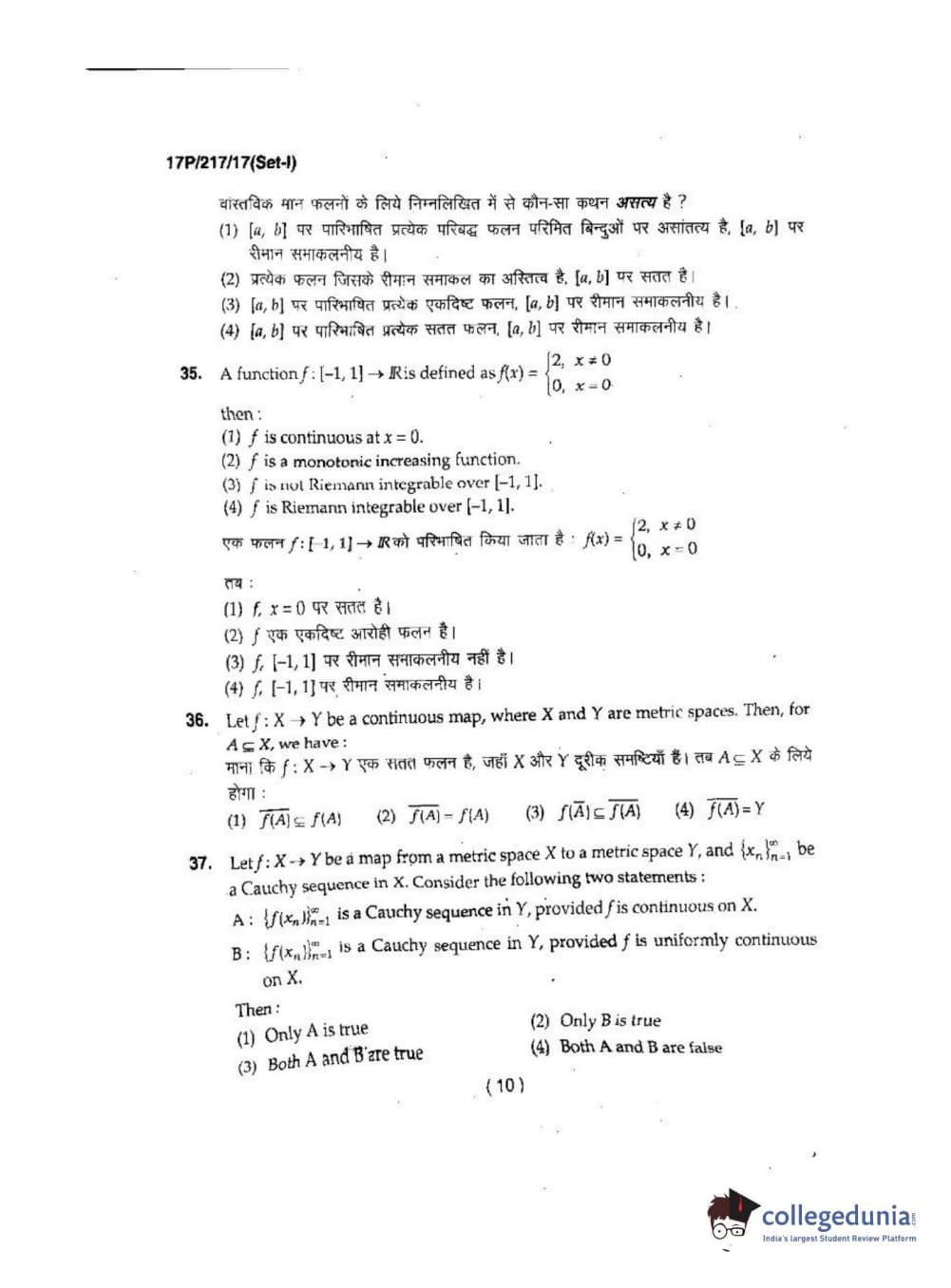 BHU PET 2017 M.A & M.SC Mathematics Question Paper with Answer Key PDFs