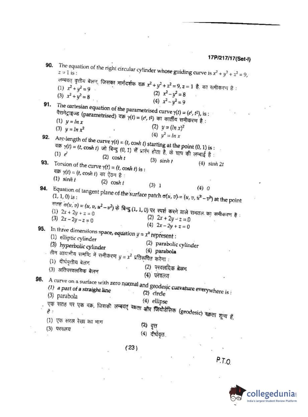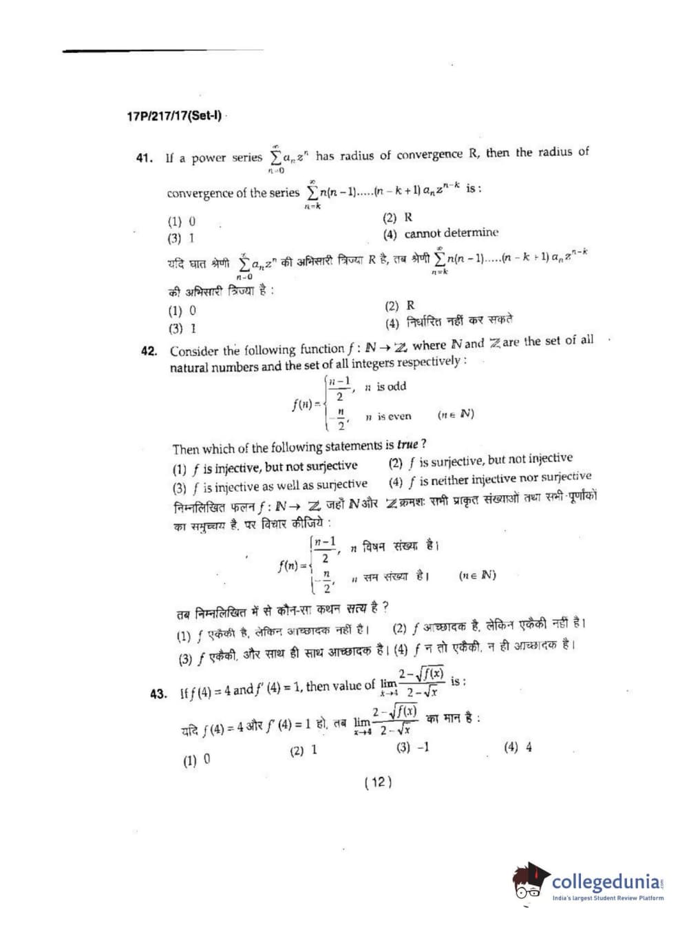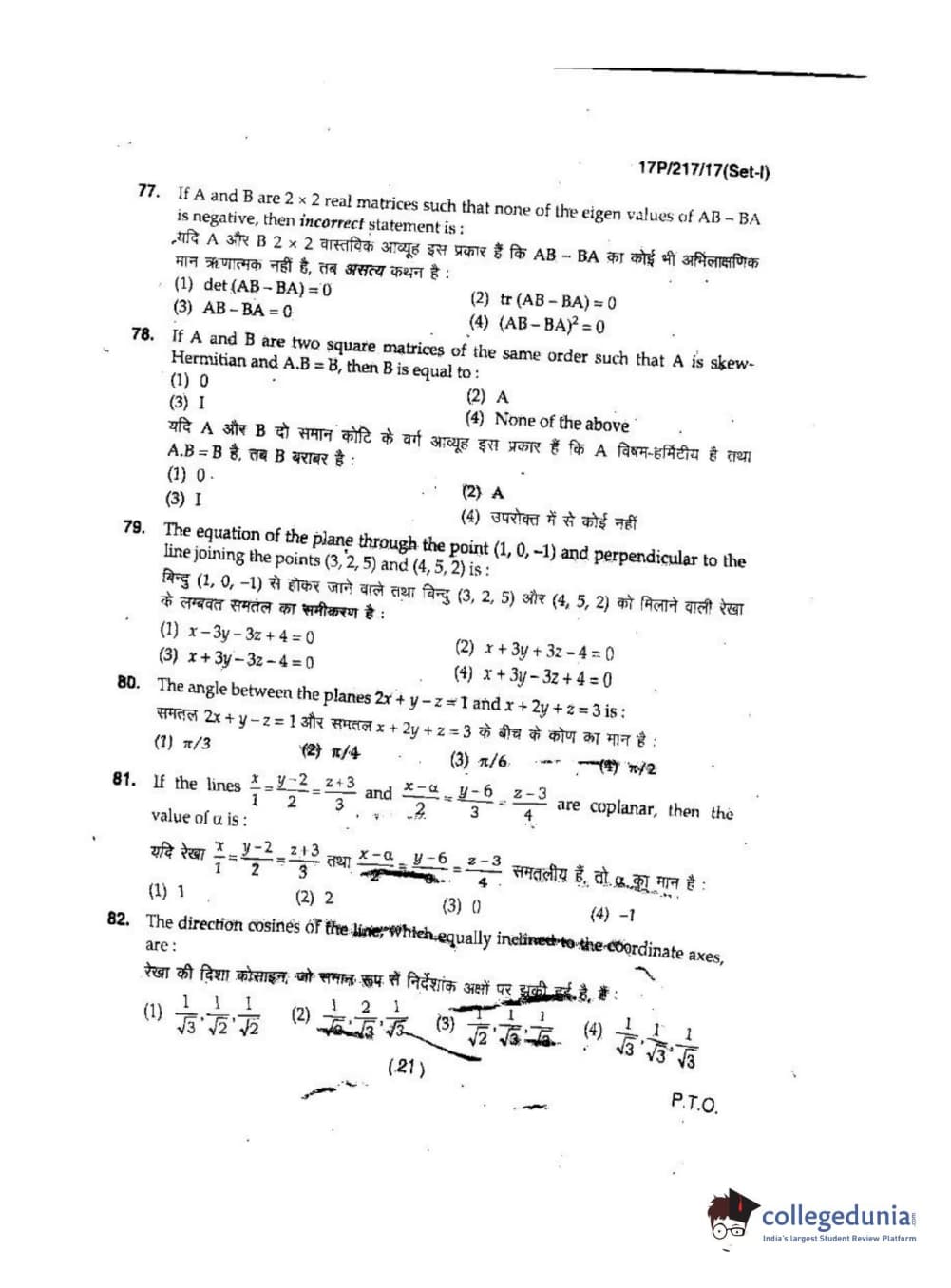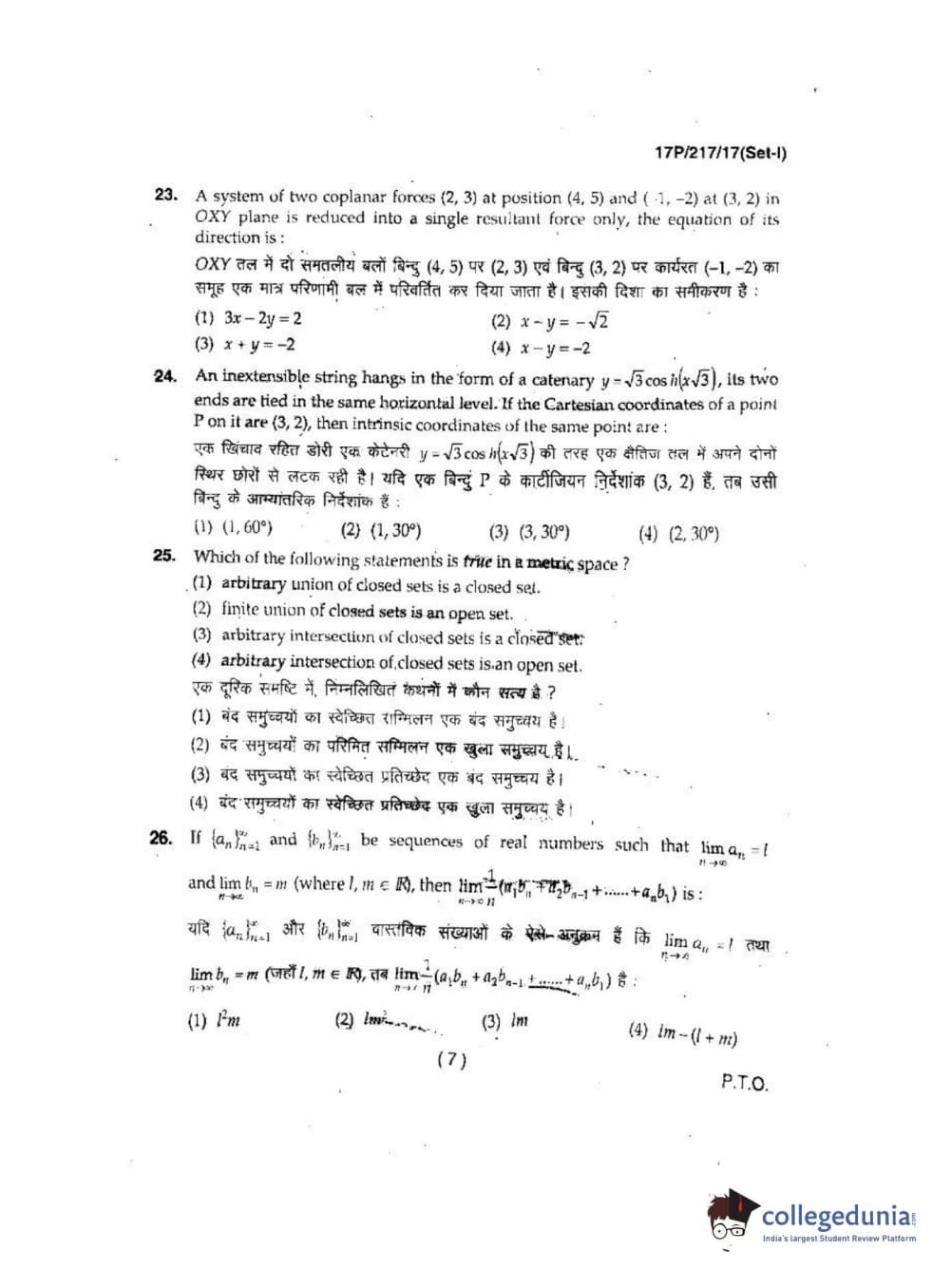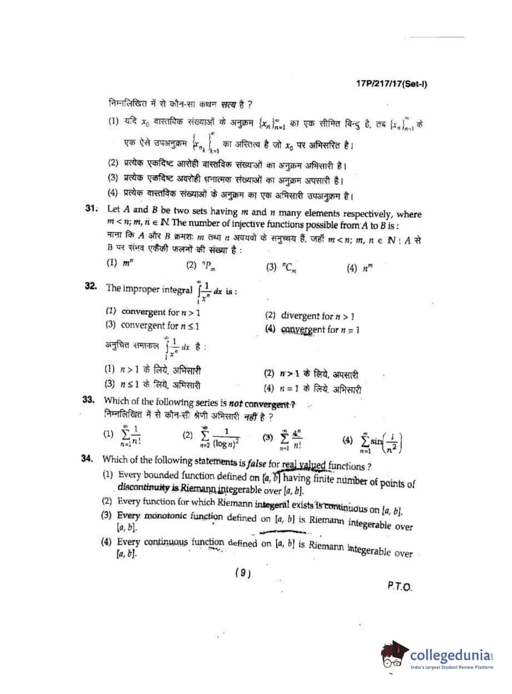 BHU PET 2017 M.A & M.SC Mathematics Question Paper with Answer Key PDFs