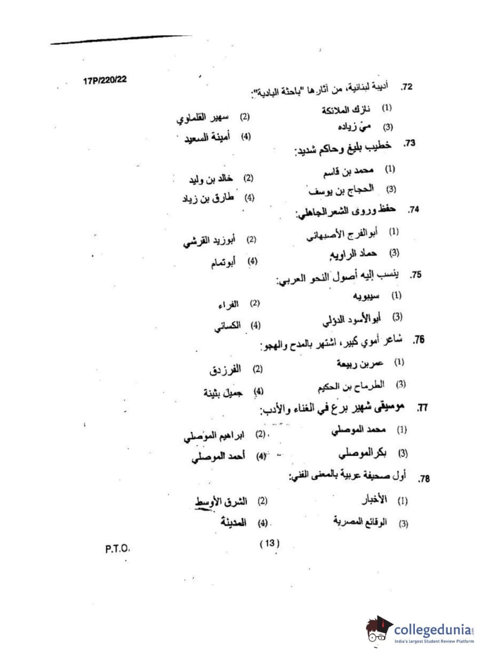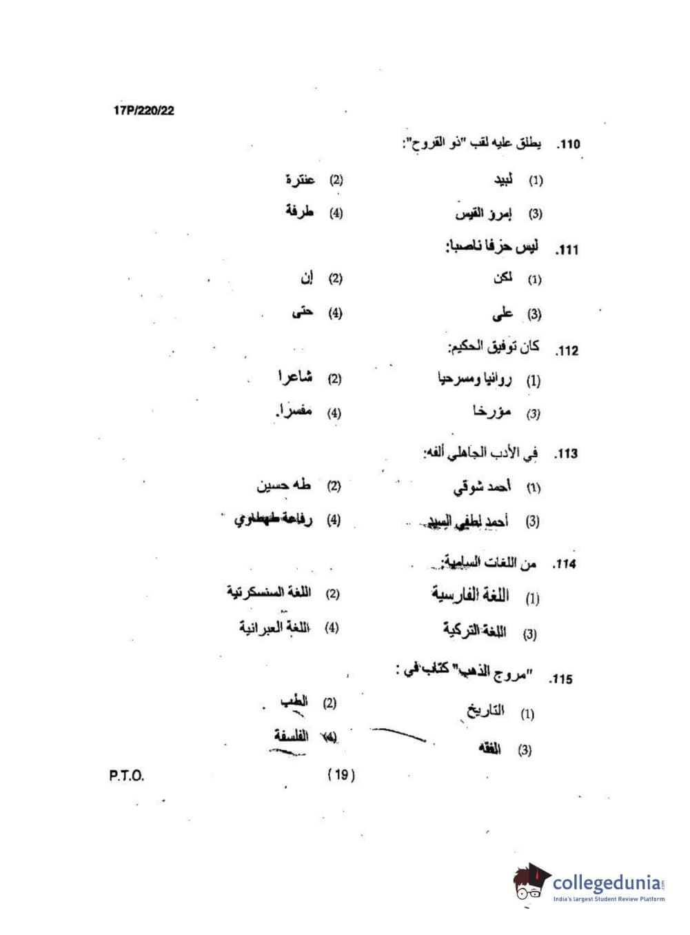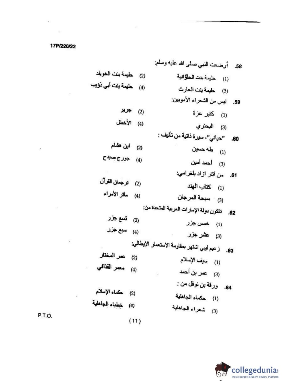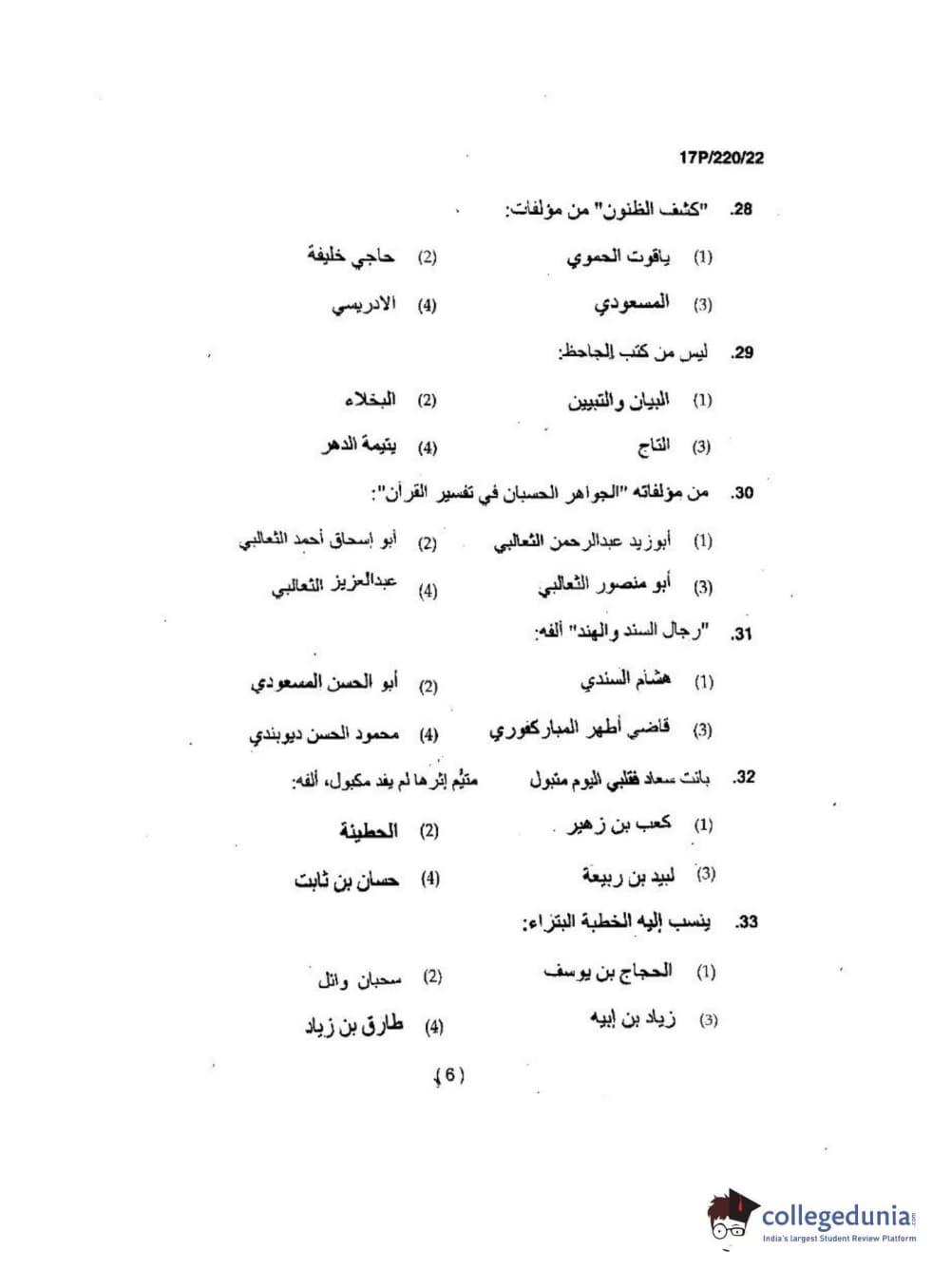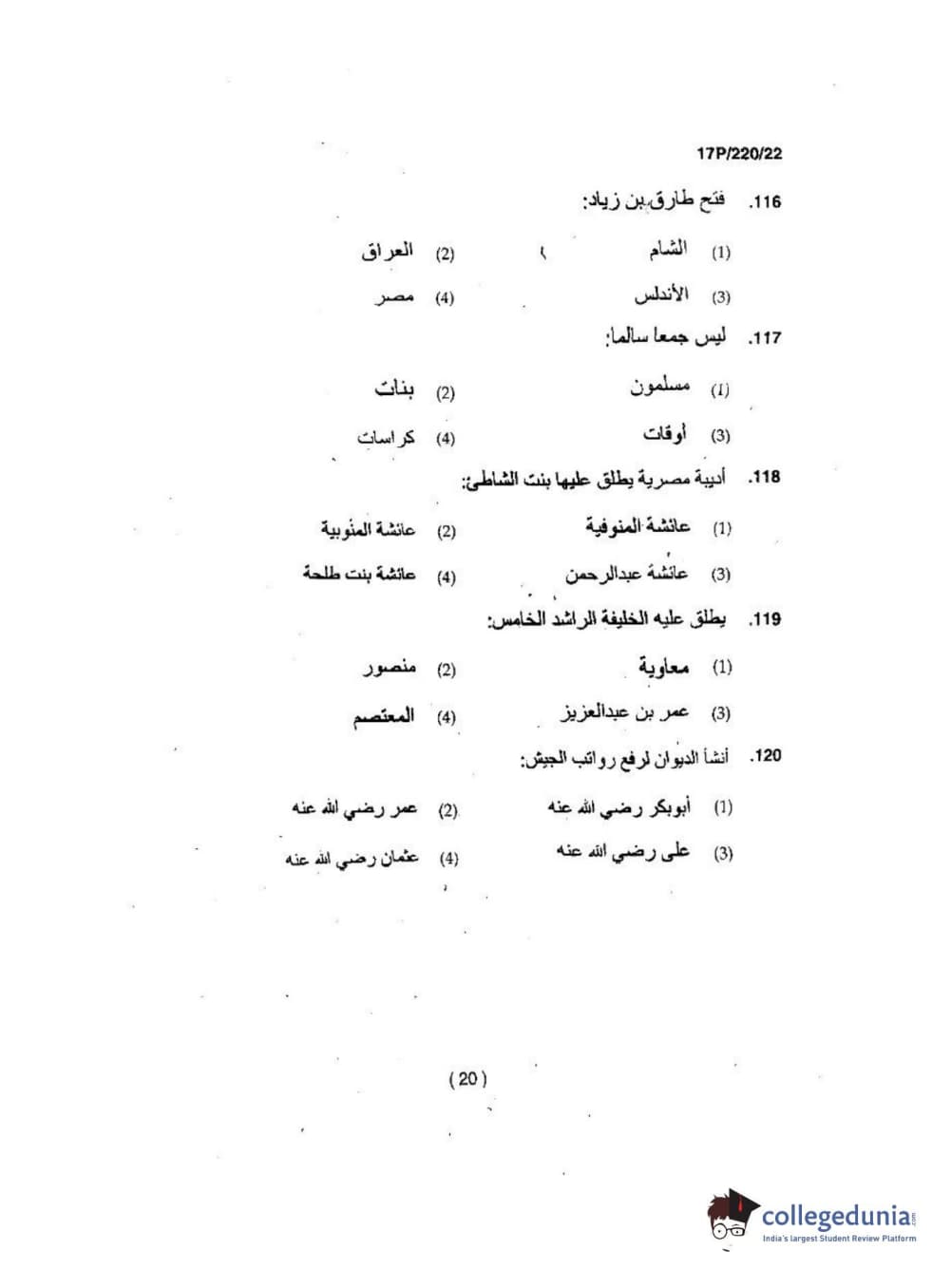 BHU PET 2017 M.A Arabic Question Paper with Answer Key PDFs