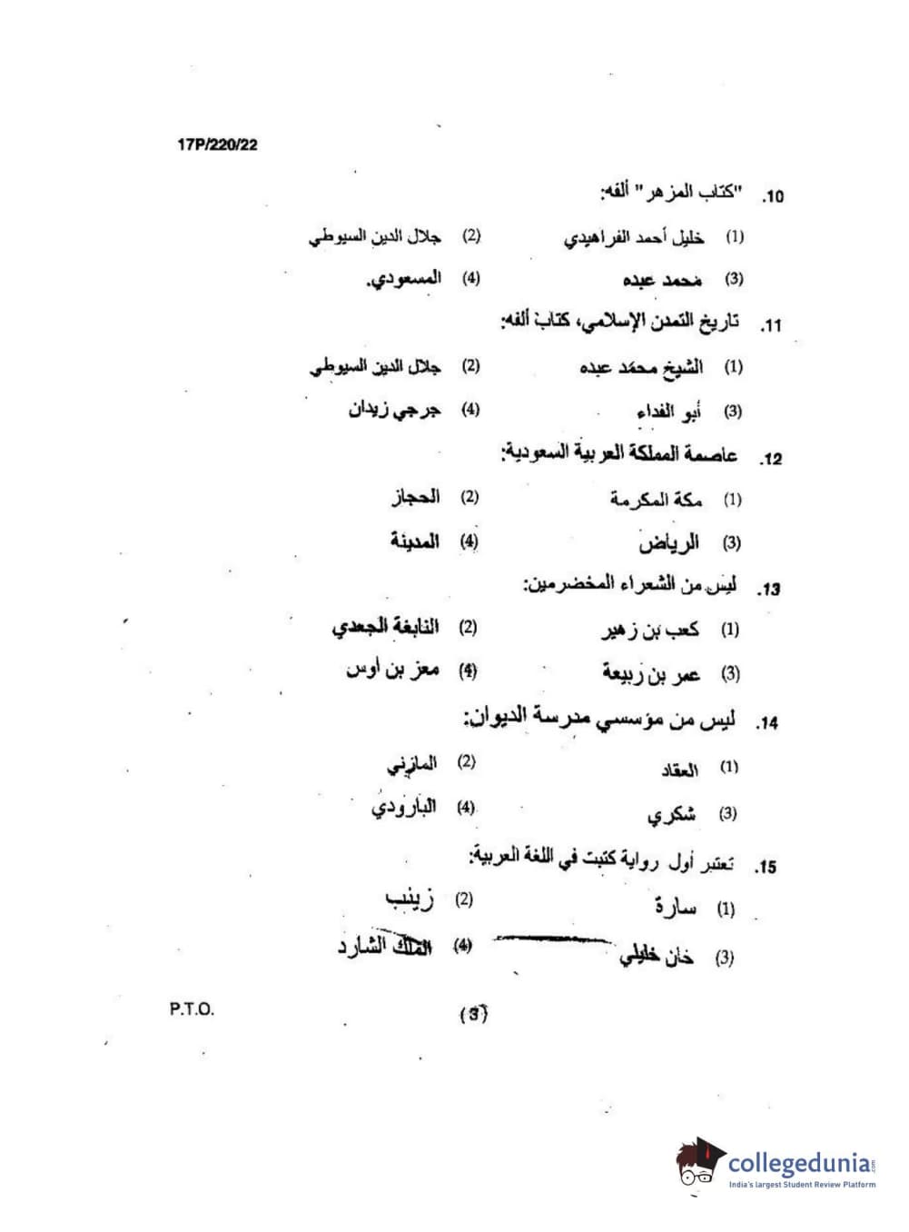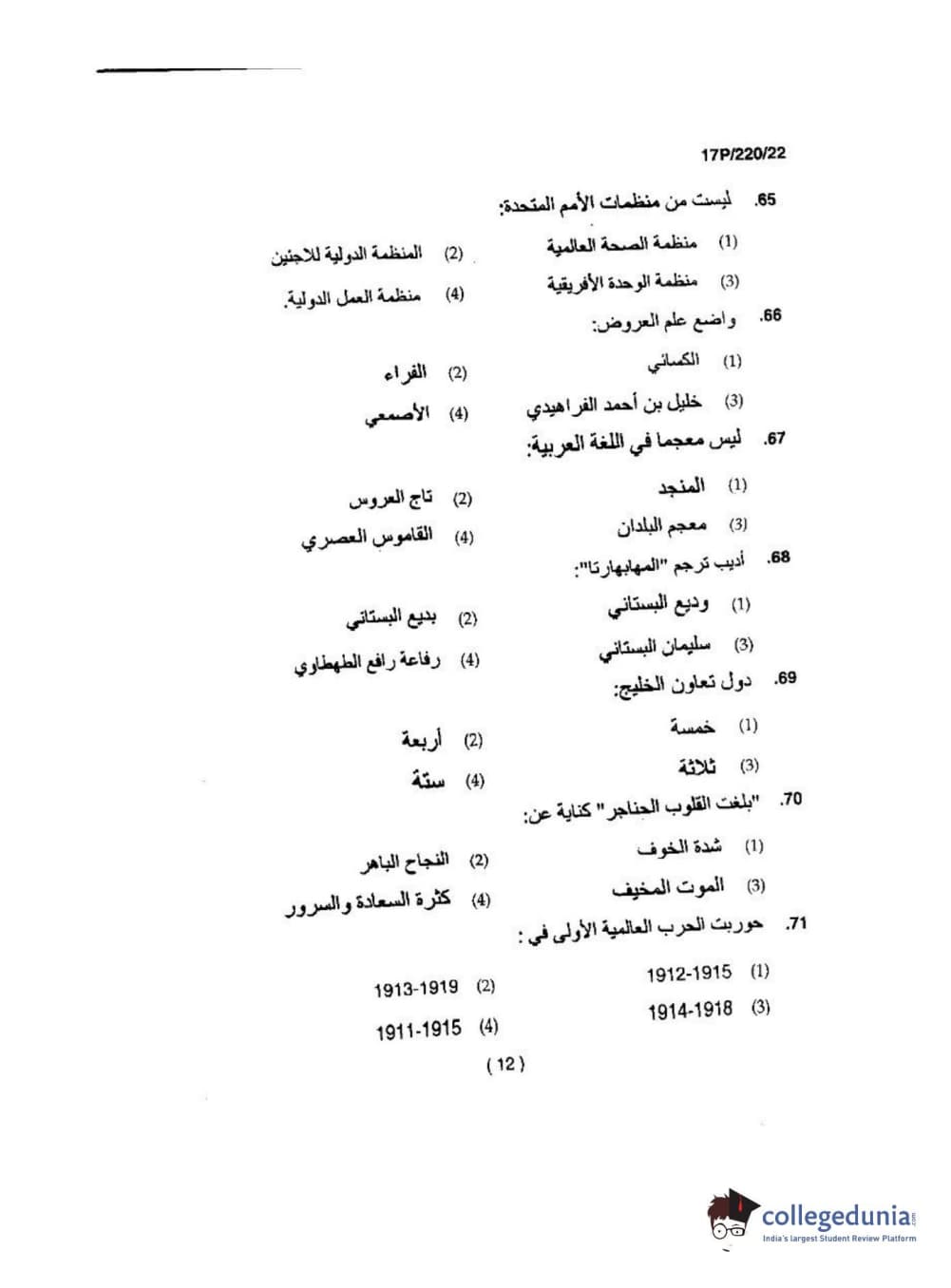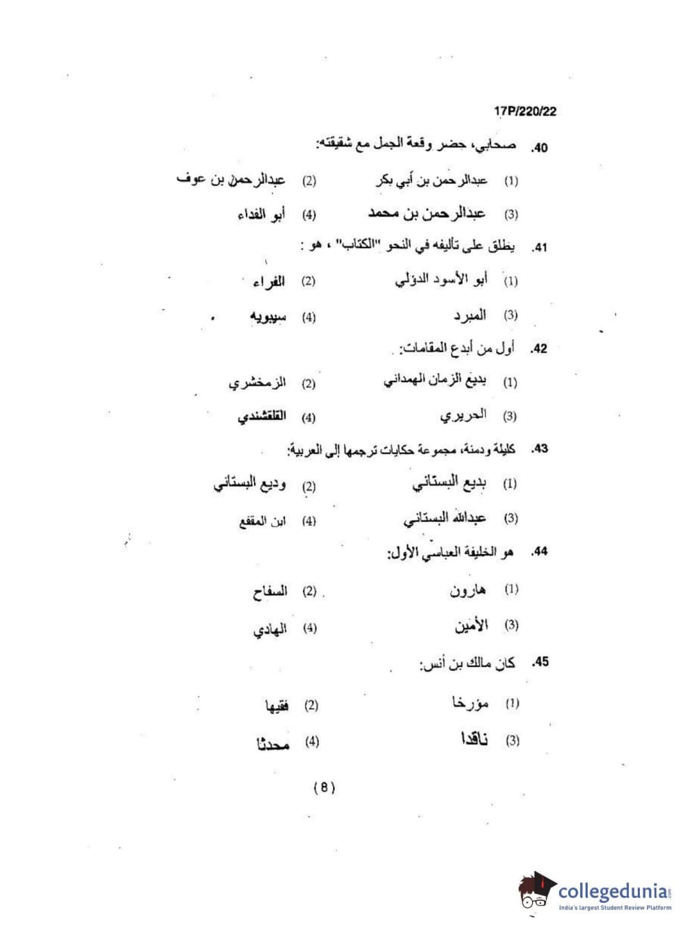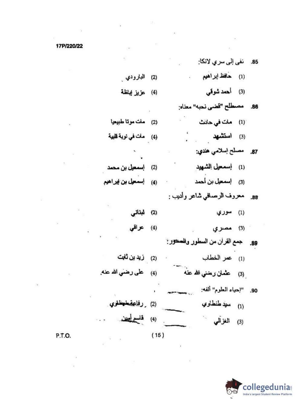 BHU PET 2017 M.A Arabic Question Paper with Answer Key PDFs