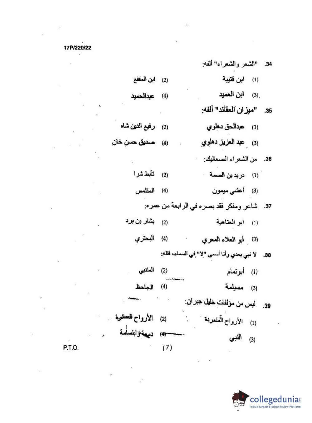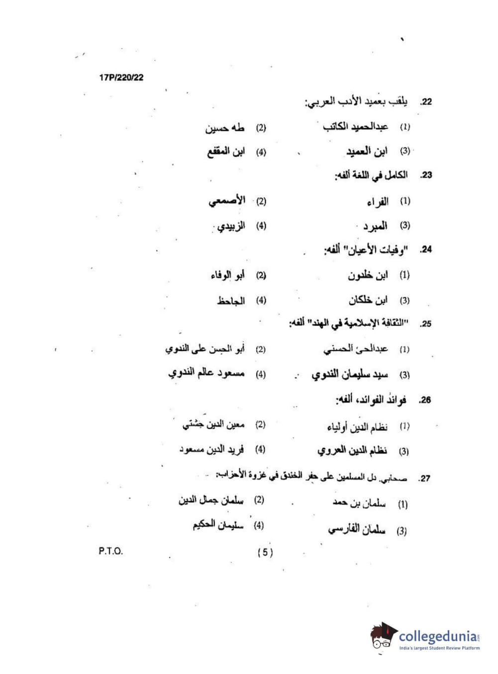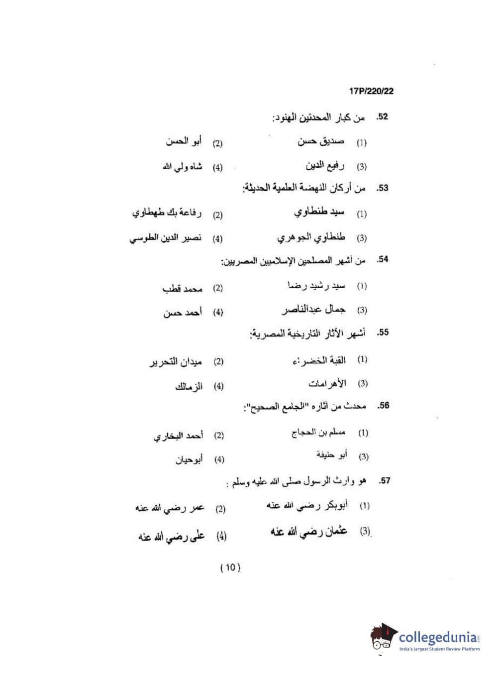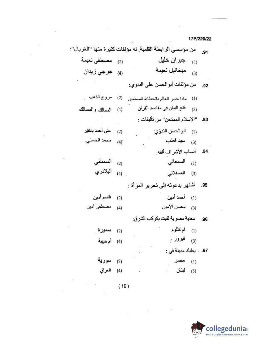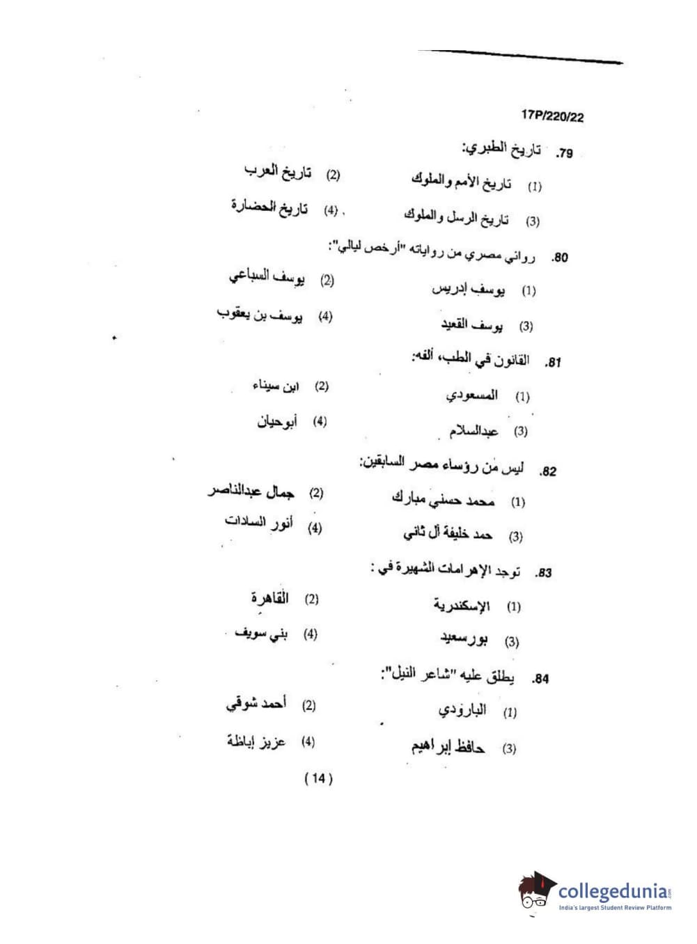 BHU PET 2017 M.A Arabic Question Paper with Answer Key PDFs